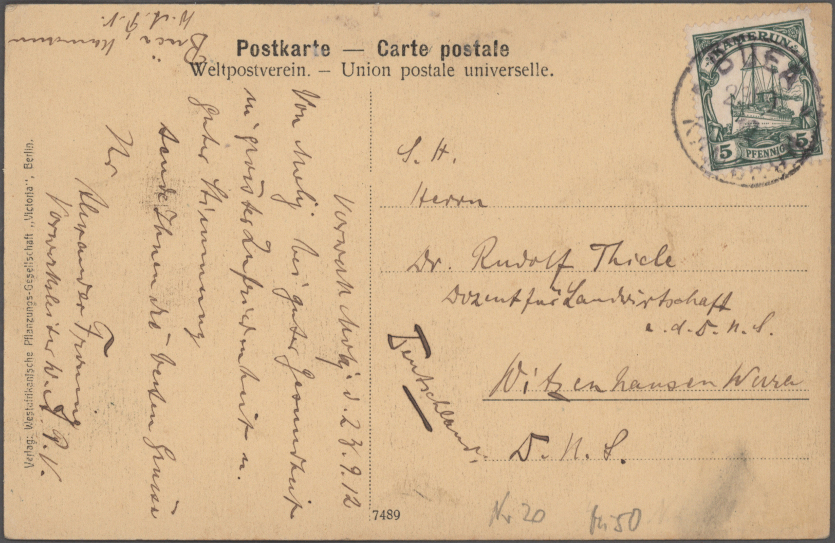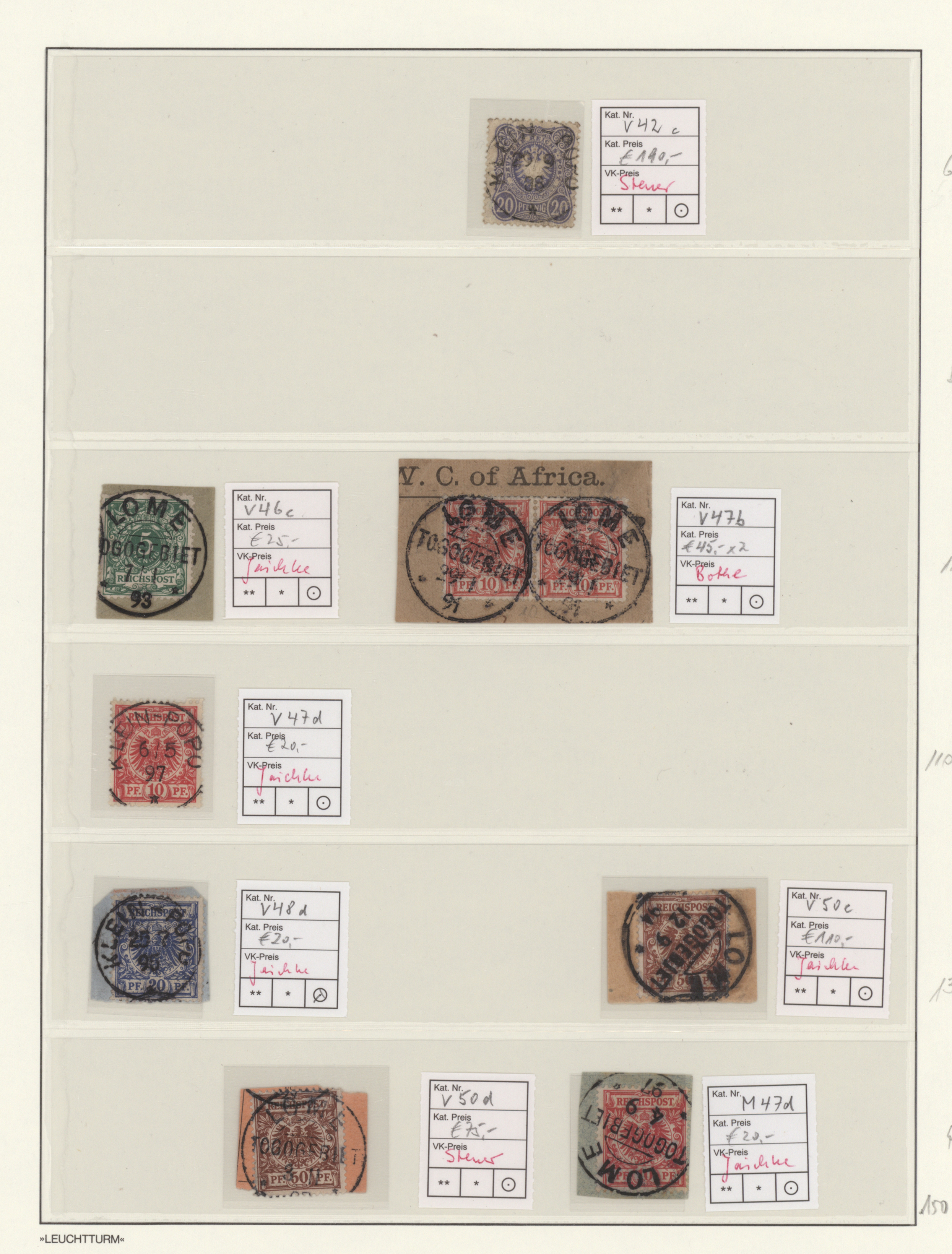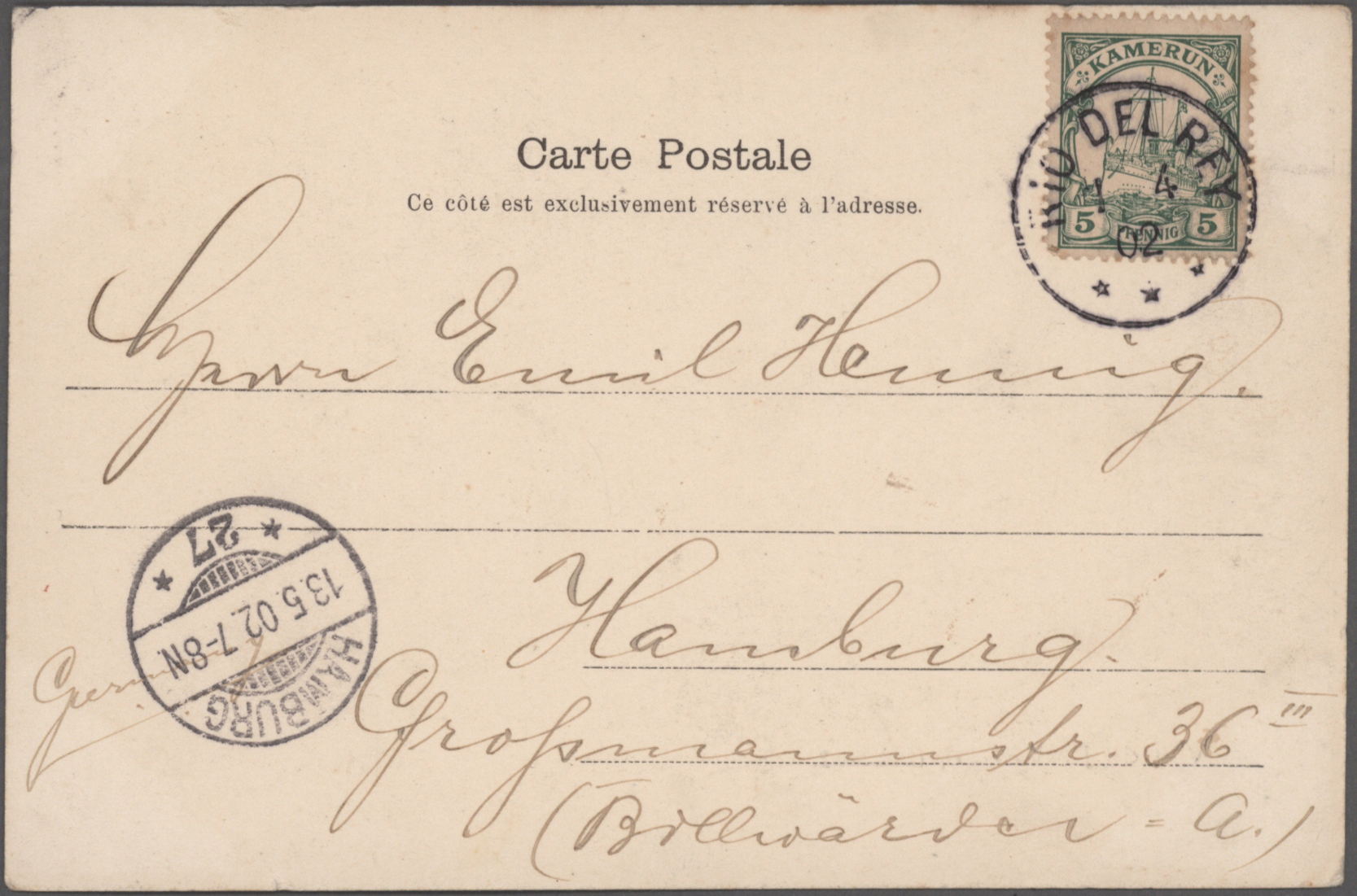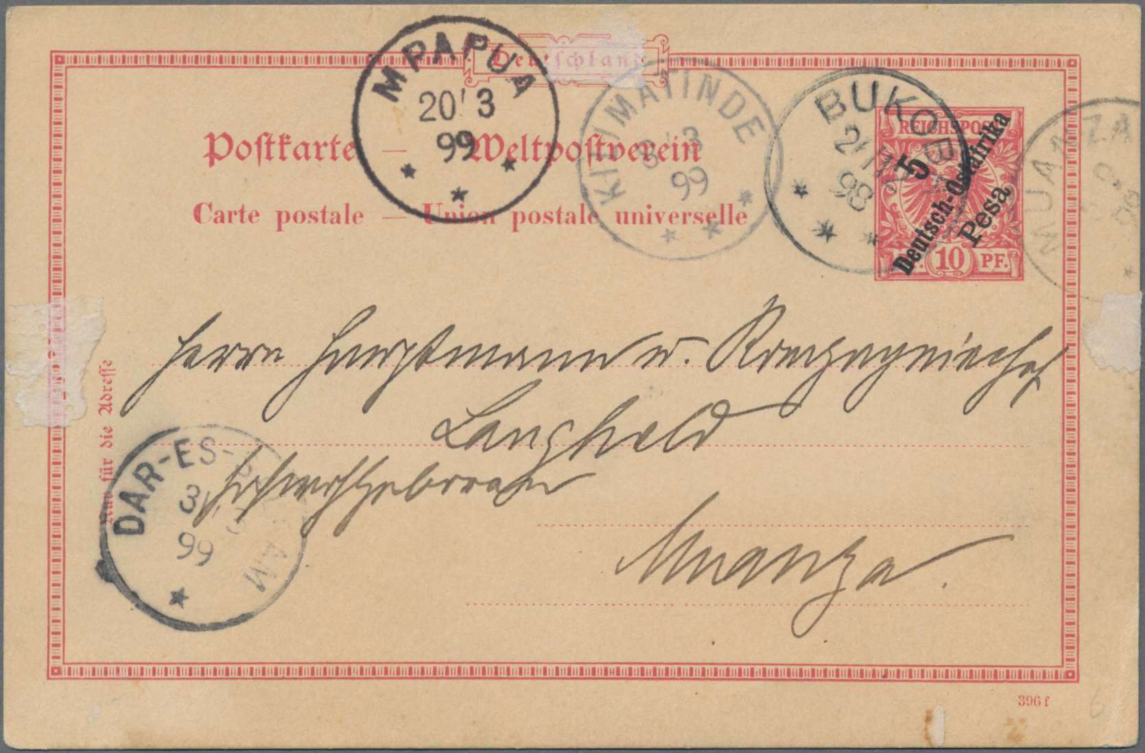 1899/1912, Post innerhalb der Kolonie: 11 Belege mit etwas Eingangspost, die Routen innerhalb der Kolonie aufzeigen. Eine Eingangskarte (AK) aus Blomberg i. L. ist gerichtet an Jean Dejan (Schreiber in Mohorro). Teils etwas unterschiedlich erhalten, jedoch interessant.