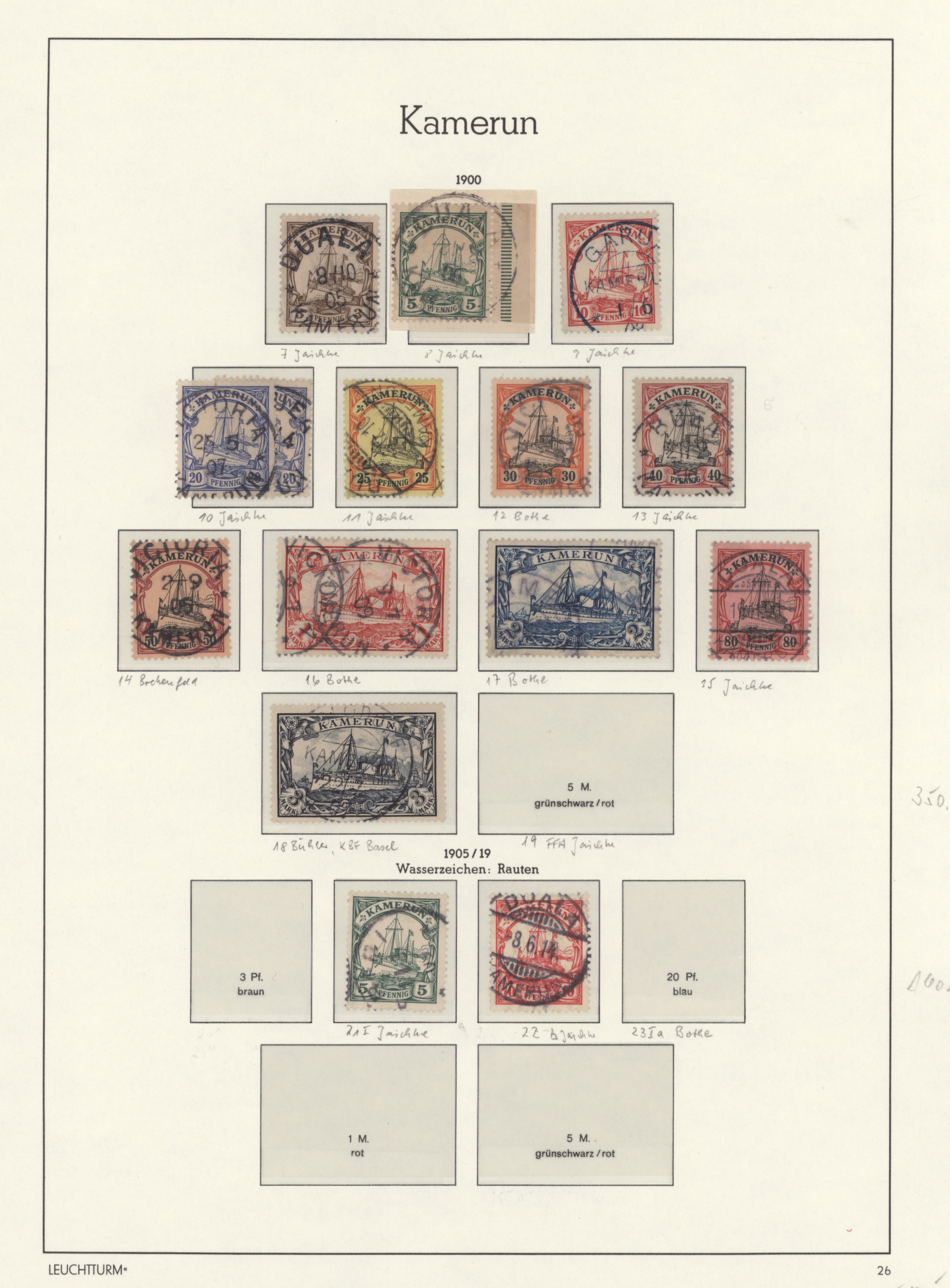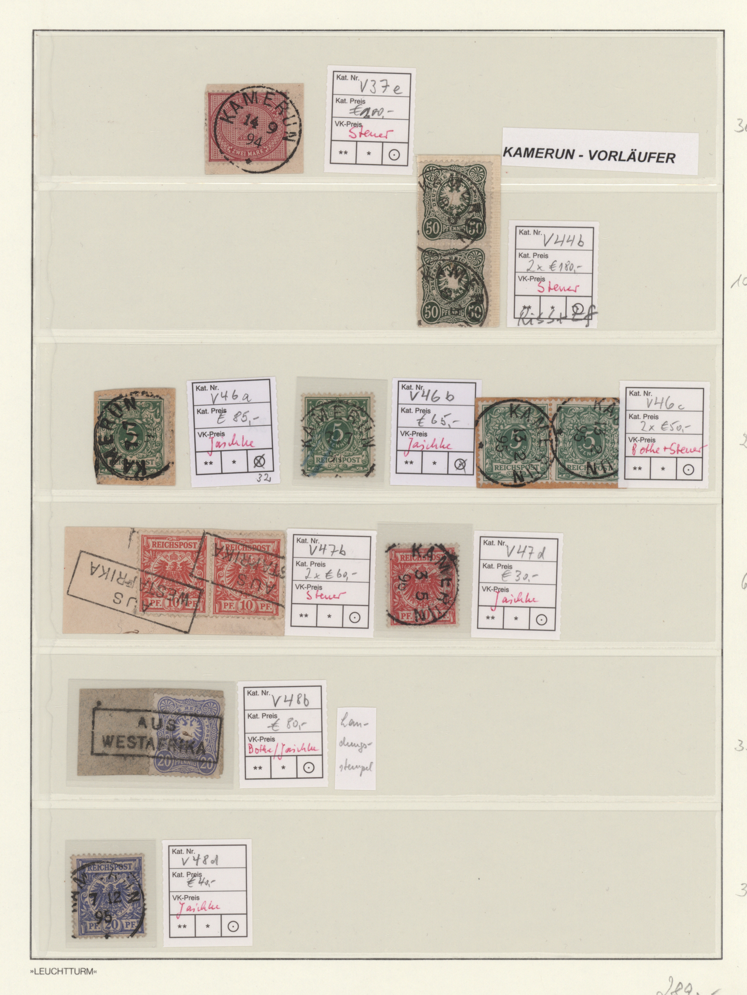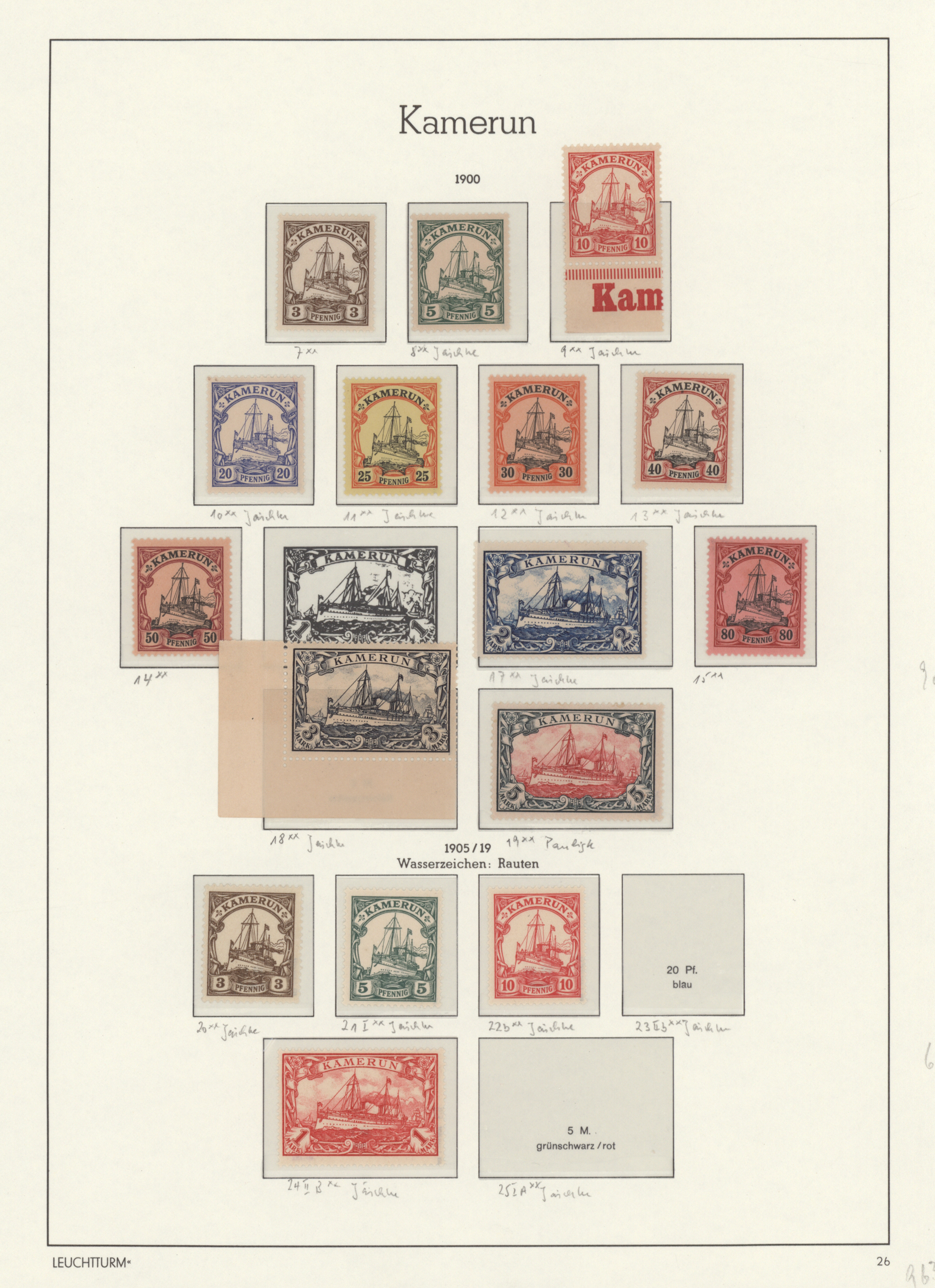 1892/1914, spezialisierte Sammlungspartie auf Albumblättern ab einem gutem Teil Vor-/Mitläufer (oft geprüft), Aufdrucke und Schiffszeichnung, neun Briefen und Karten sowie sehr interessantem Stempel-Teil incl. besseren Abschlägen.