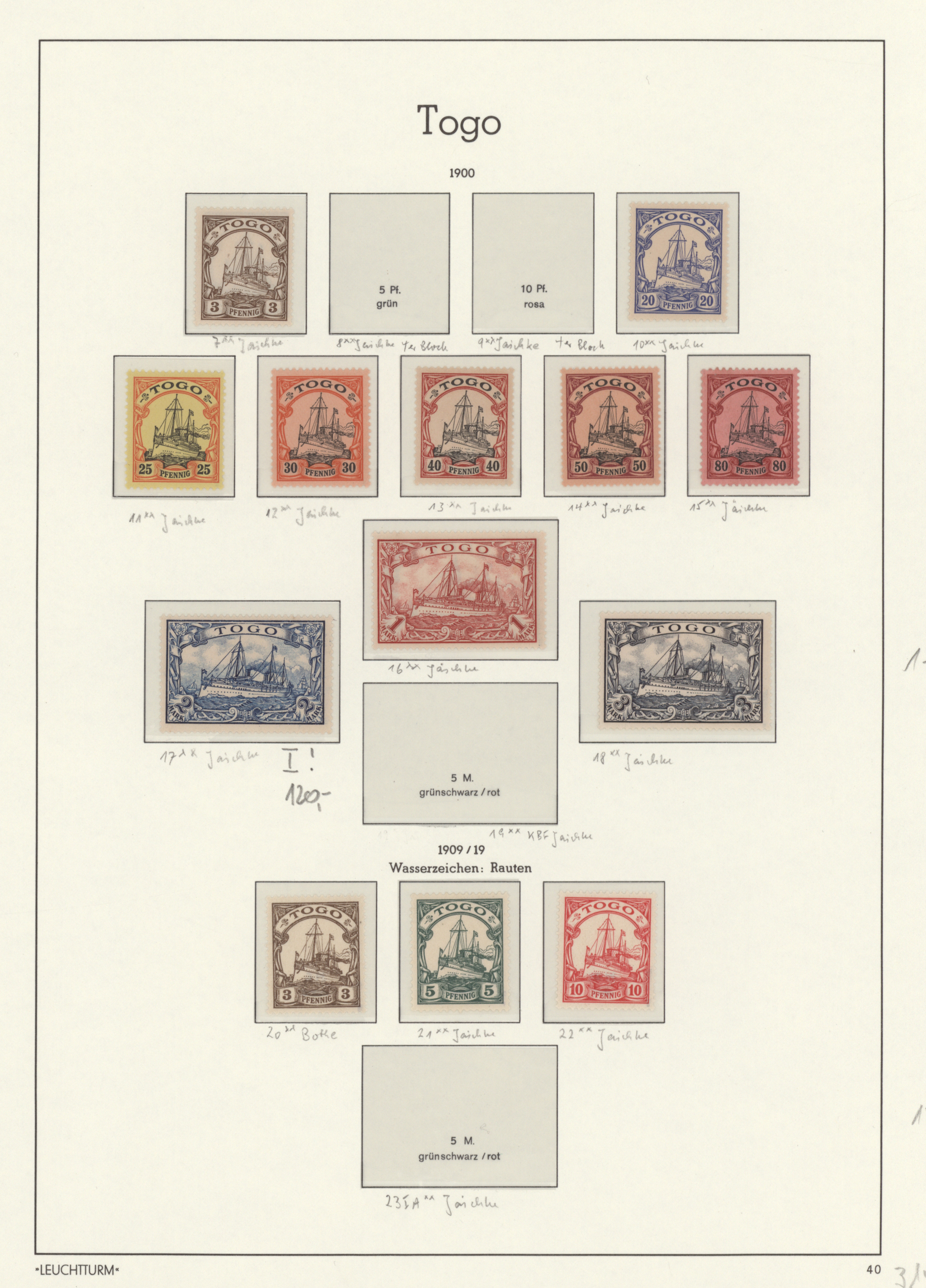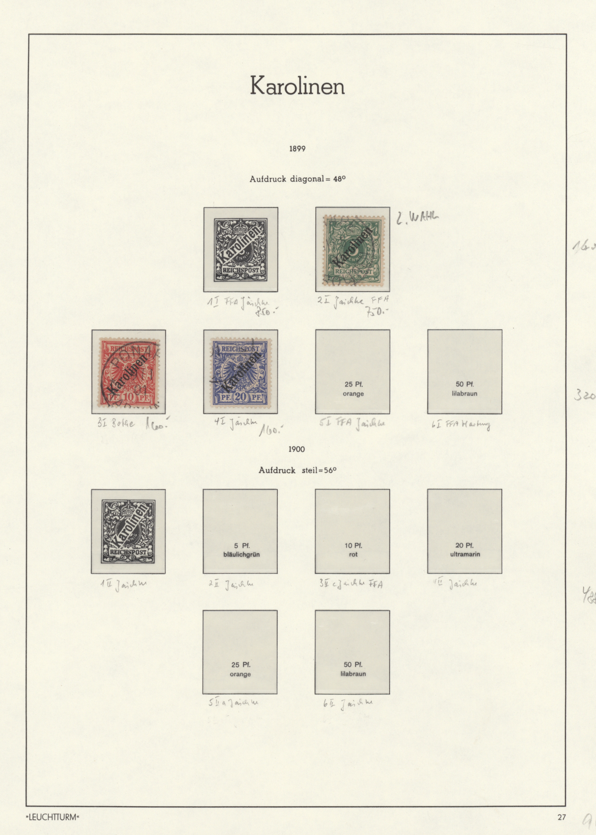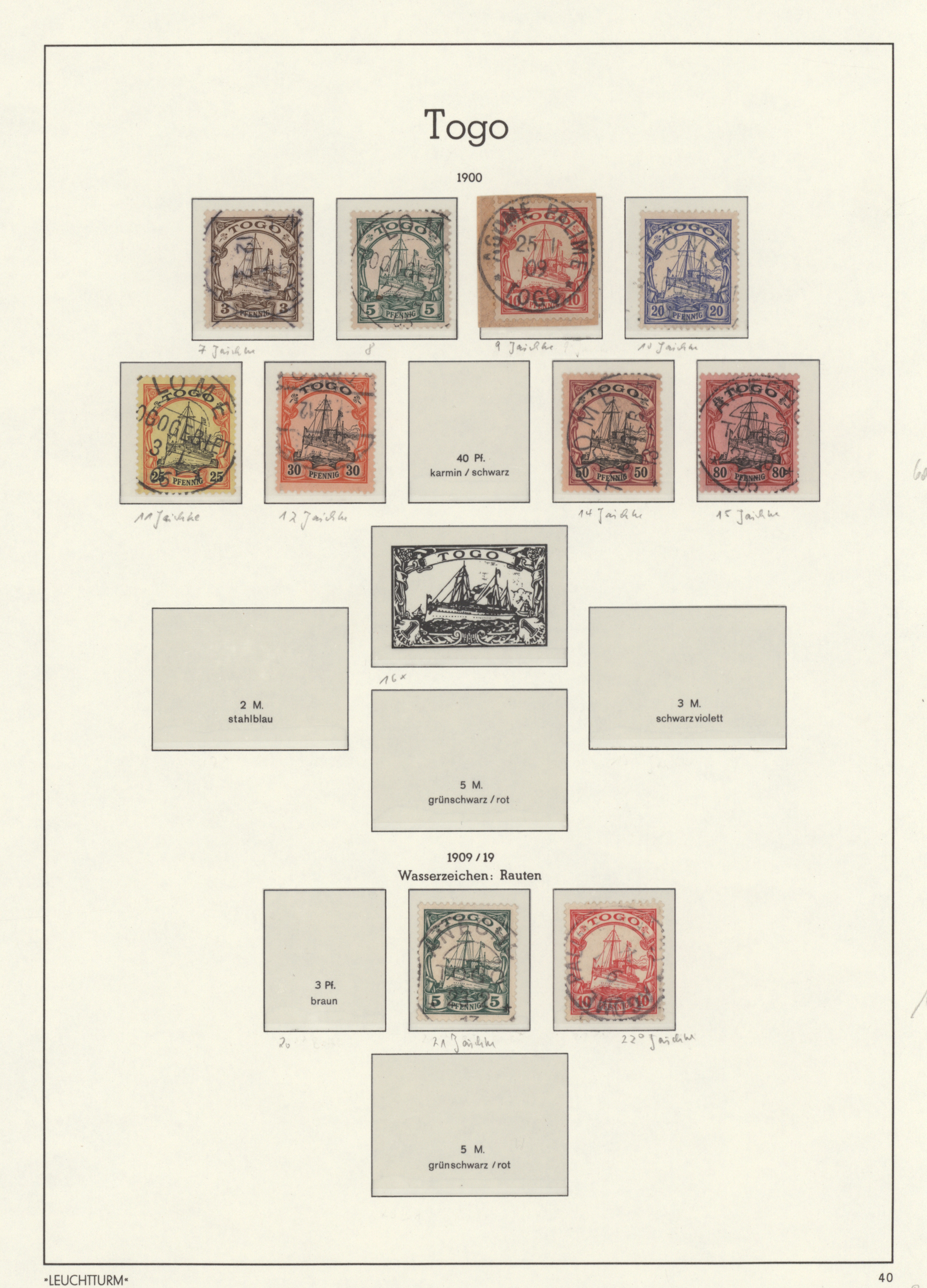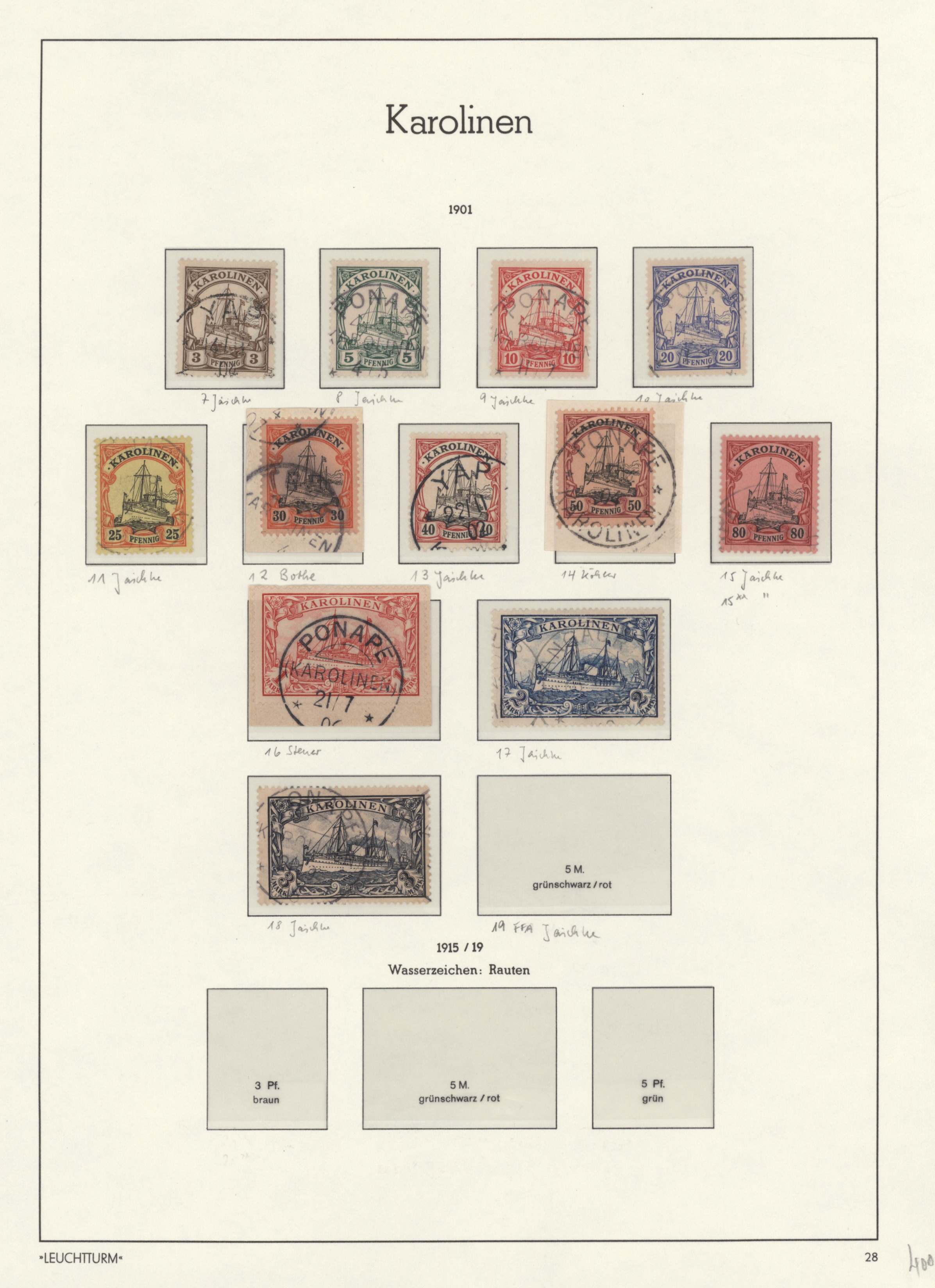 1892/1914, spezialisierte Sammlungspartie auf Albumblättern ab einem gutem Teil Vor-/Mitläufer (oft geprüft), Aufdrucke und Schiffszeichnung, neun Briefen und Karten sowie sehr interessantem Stempel-Teil incl. besseren Abschlägen.