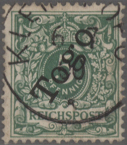1897/1910, gestempelte Sammlung von 32 Marken Aufdrucke und Schiffszeichnung sowie einer gebrauchten Ganzsachenkarte, dabei bessere Varianten, oft geprüft.