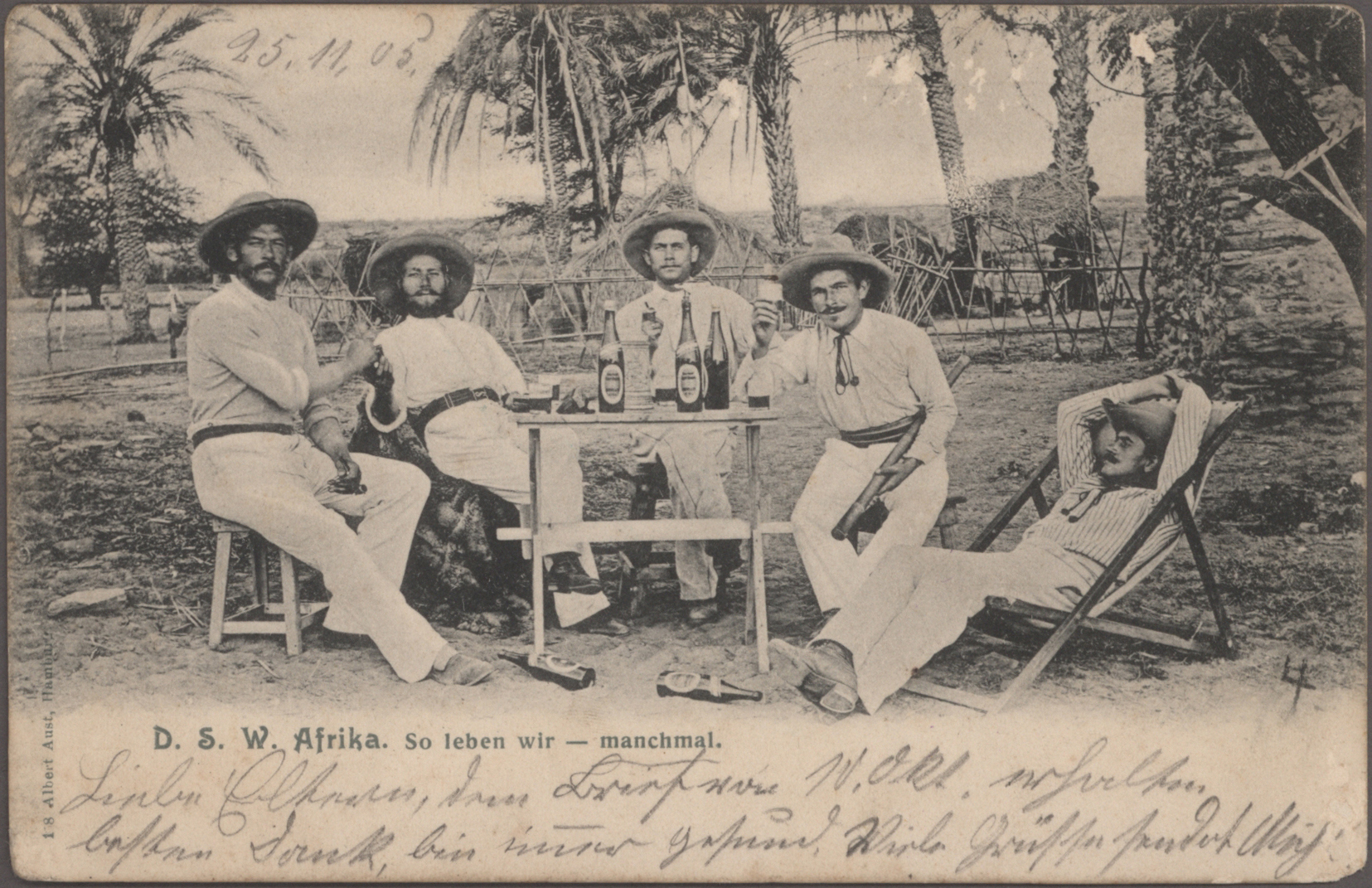 1905/1907, Sammlung von 52 Ansichtskarten (fast alle aus DSWA), meist gelaufen, vorwiegend per Feldpost bzw. per Schiffspost vom Truppentransport.