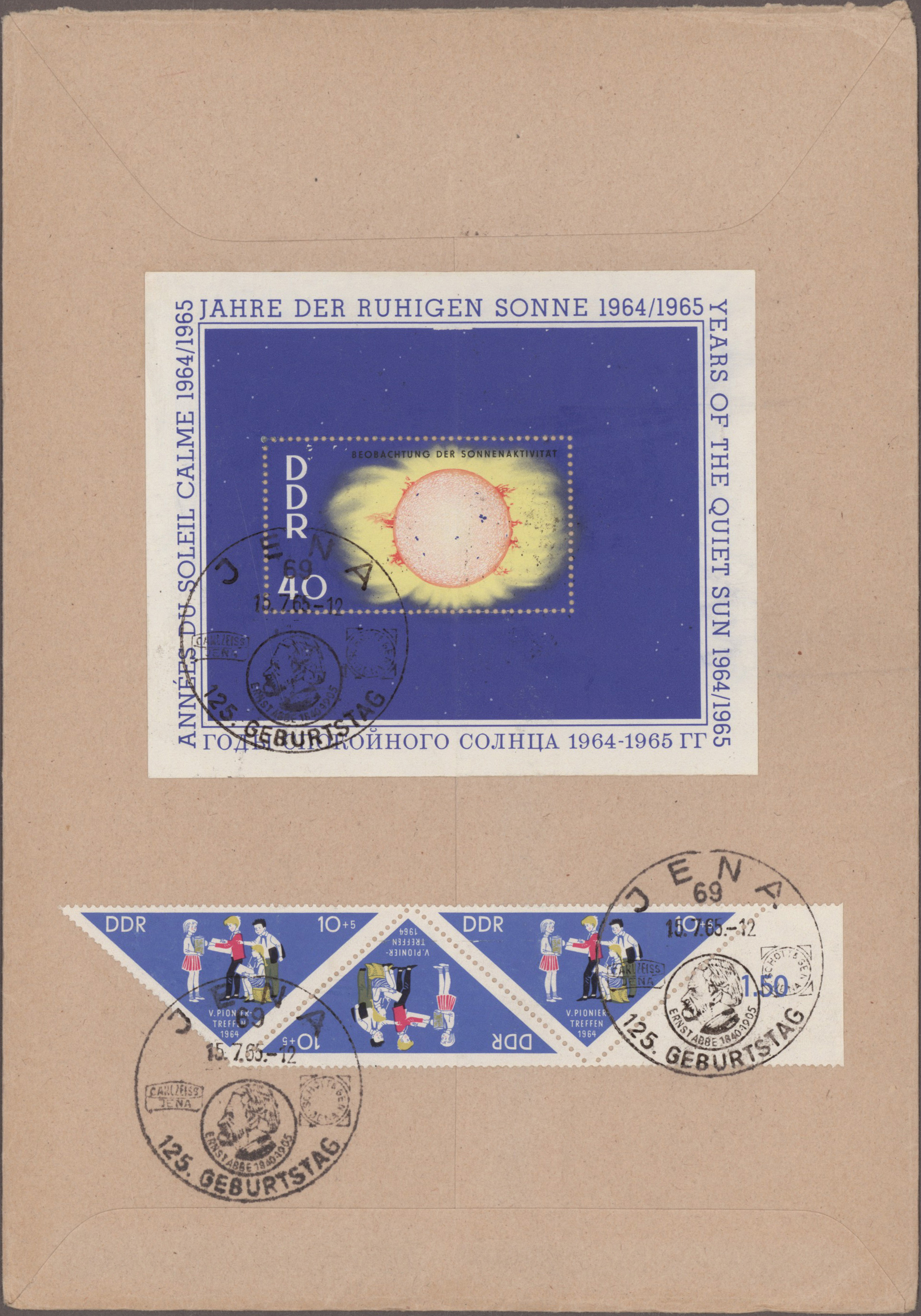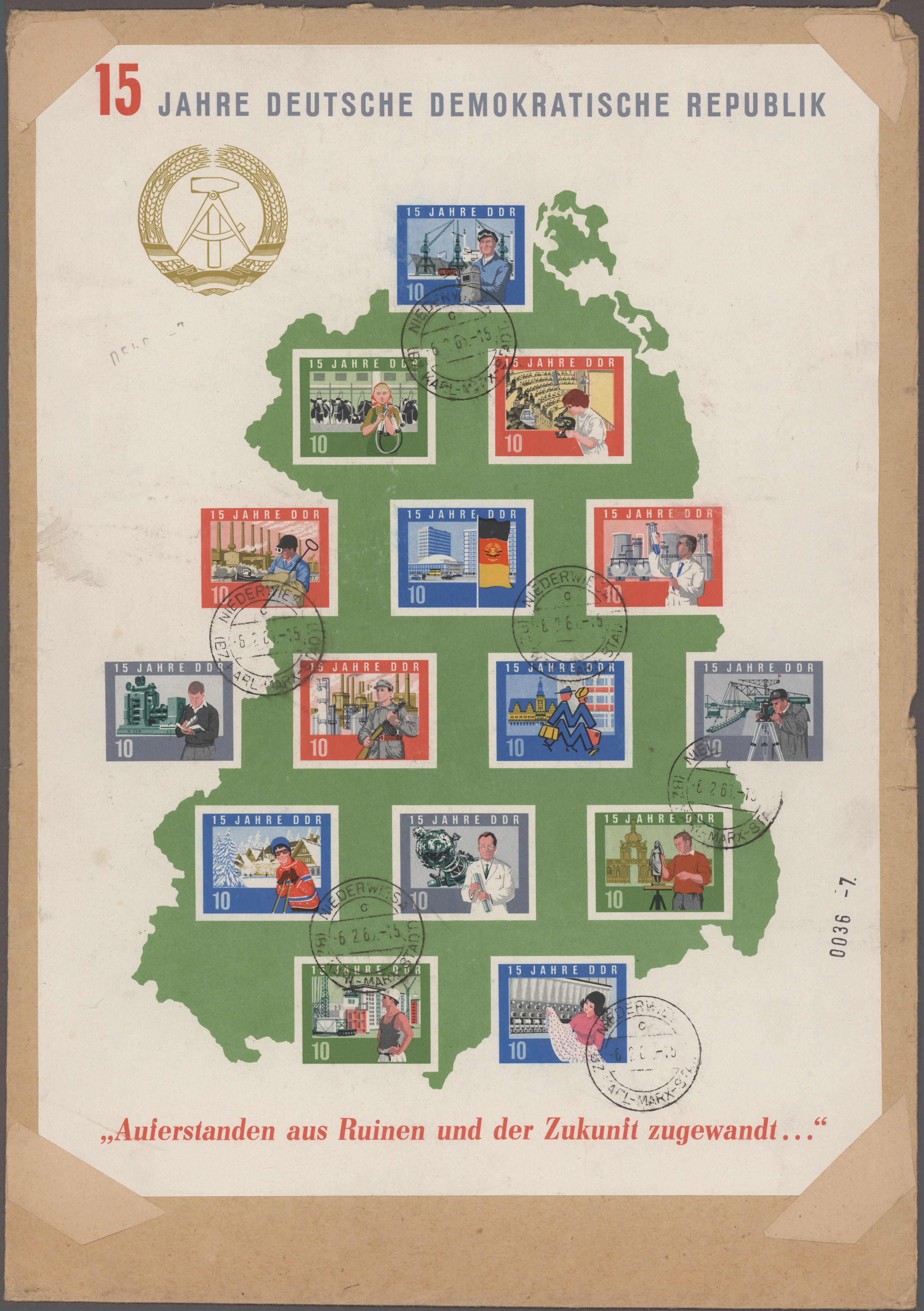1964, 15 Jahre DDR-Block, Partie von 23 Stück, davon 18 ungebraucht, vier gestempelt (je zweimal Tagesstempel und SST) sowie einmal auf Brief.
