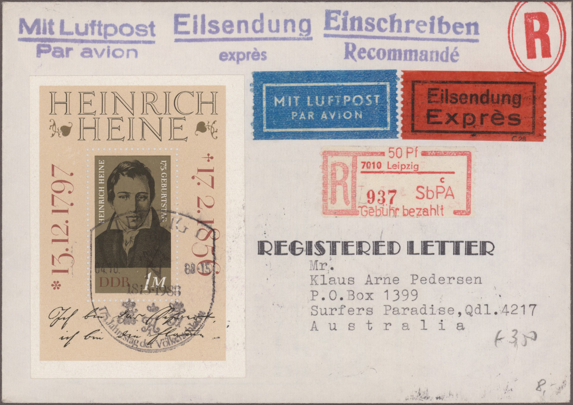 1971-89 Hunderte von Briefen und Karten aus der DDR, augenscheinlich alle nach Dänemark, zusammen mit Marken und Blocks der jeweiligen Ausgabe auf Blätter aufgezogen, in 5