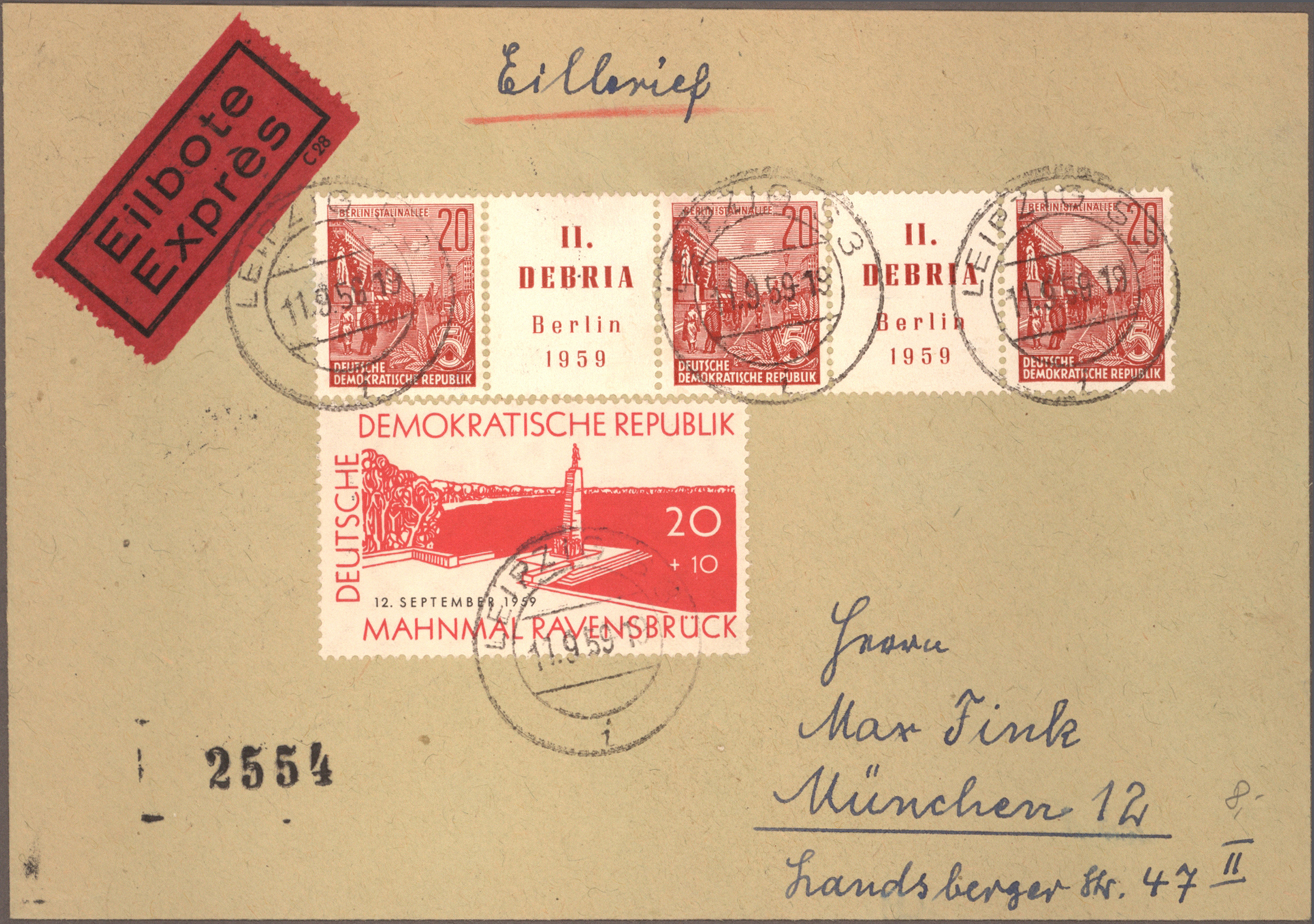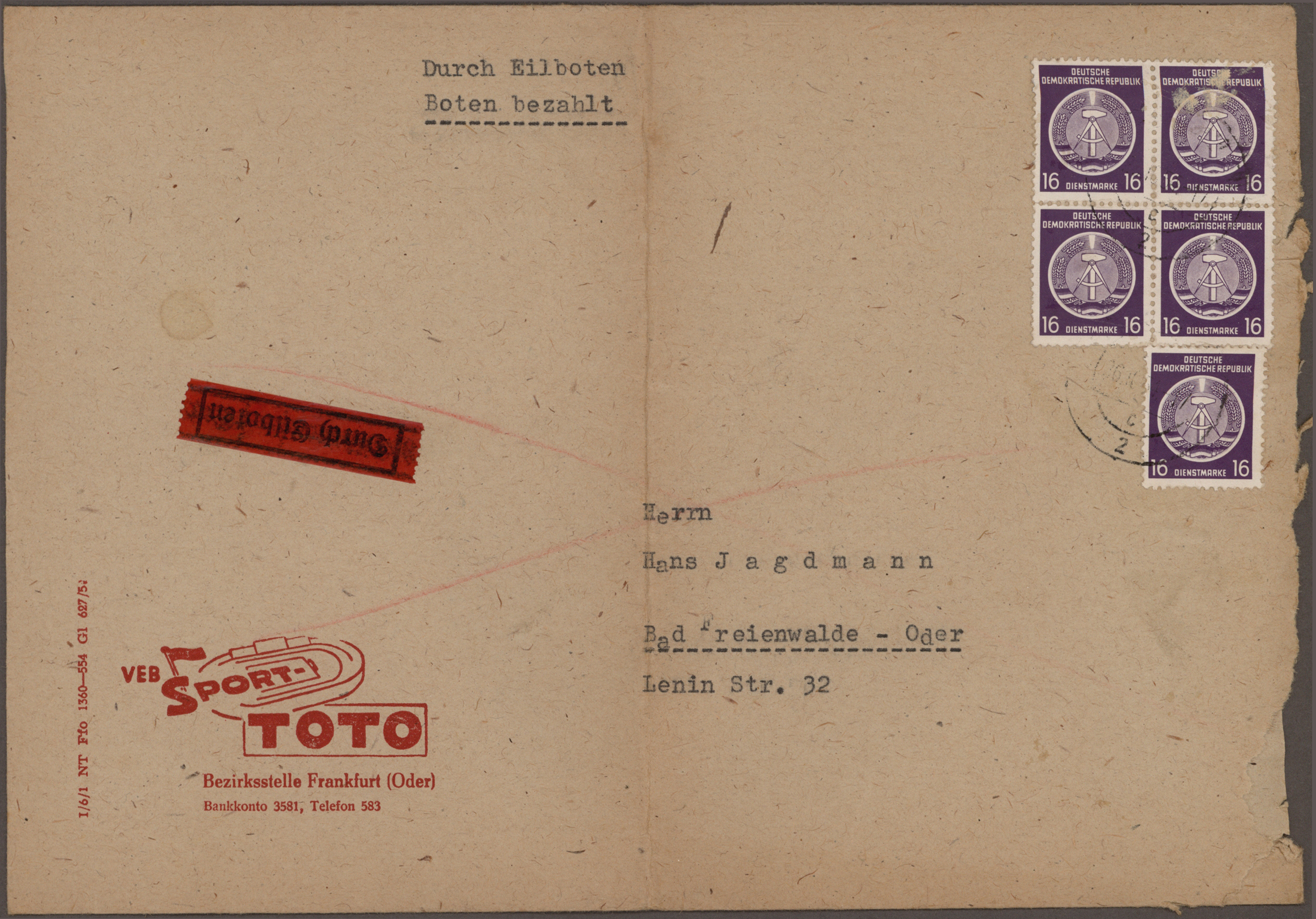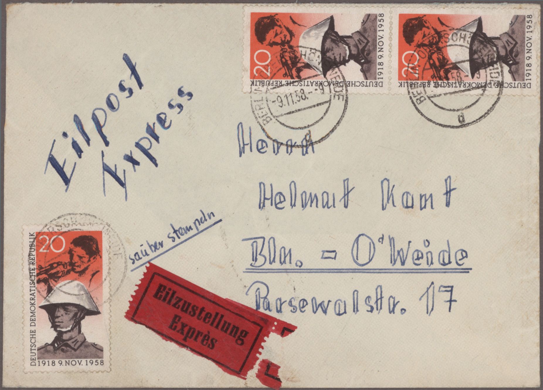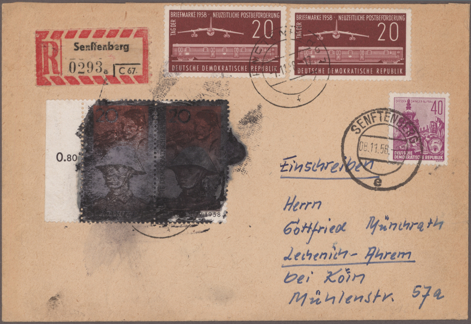 interessanten Stücken, Eilboten, Einschreiben, größeren Einheiten, Druckvermerken, Leerfeldern, Farbrandstreifen, guter Anteil Tagesstempel, kompletten Garnituren, besseren und gesuchten Ausgaben wie Fünfjahrplan (68 Belege), Dimitrov (12), Leipziger