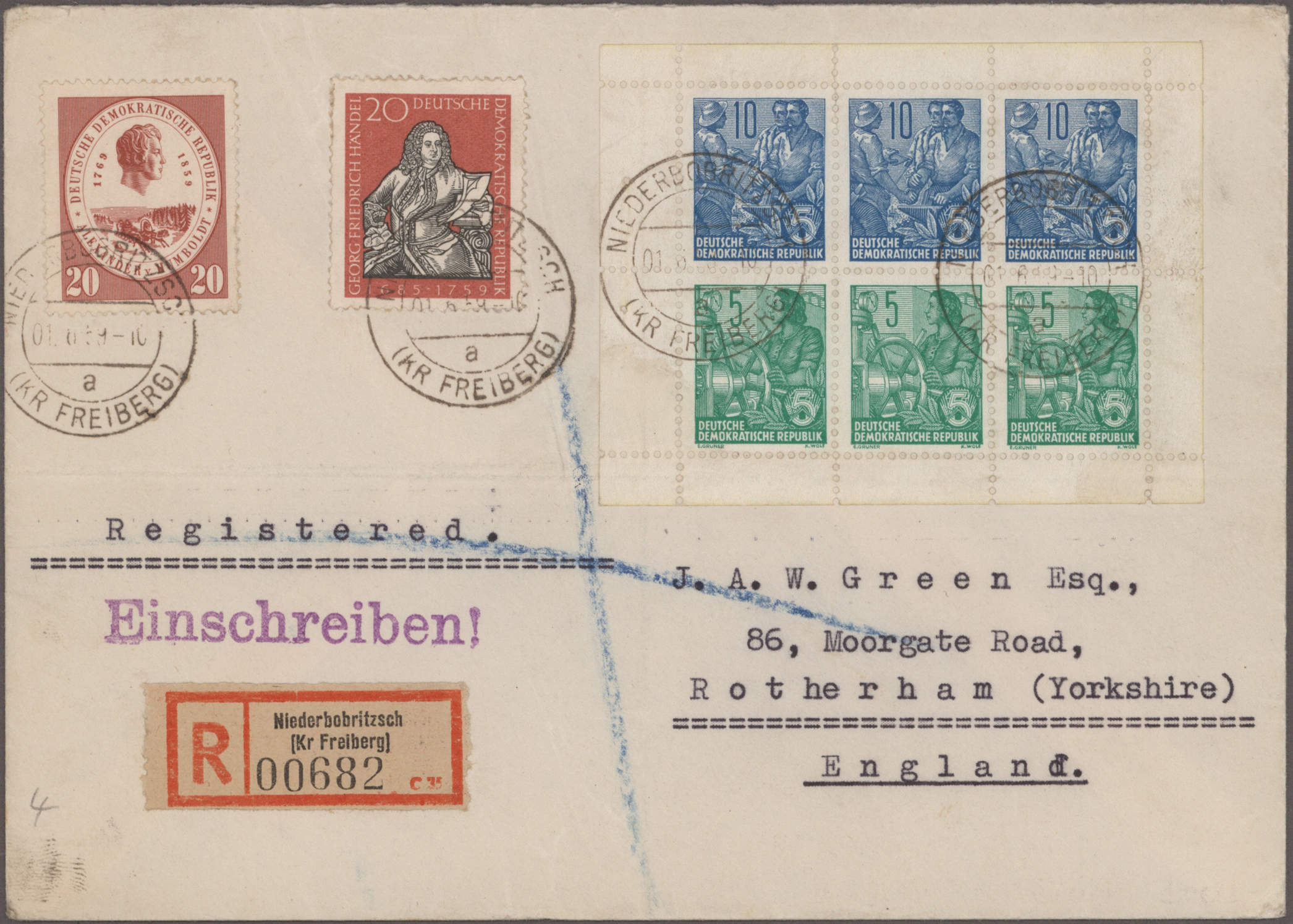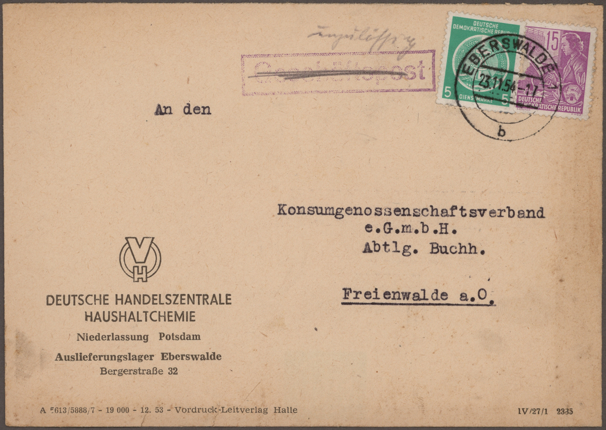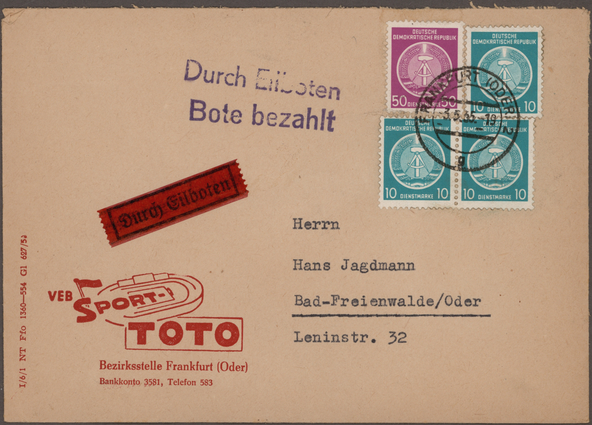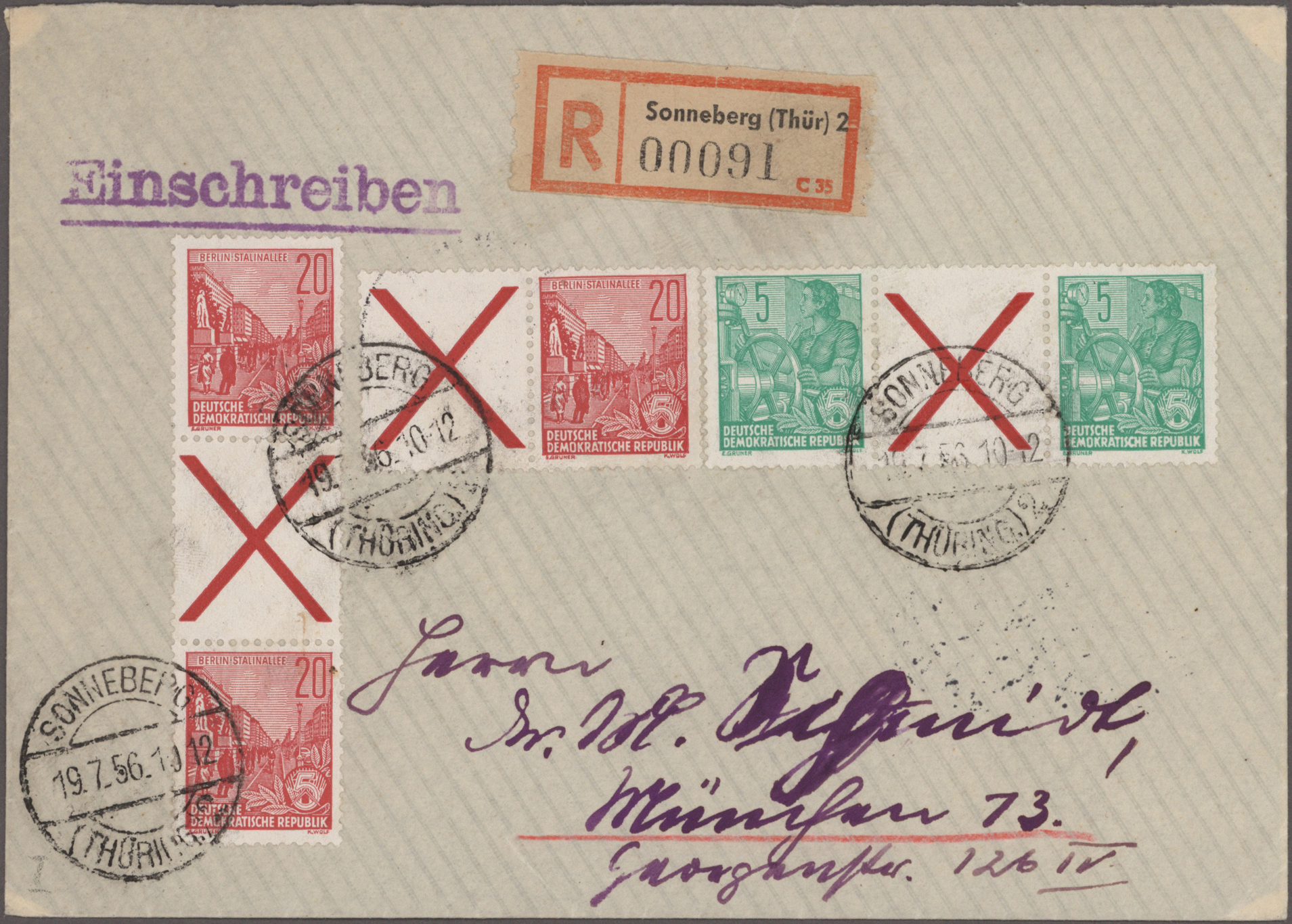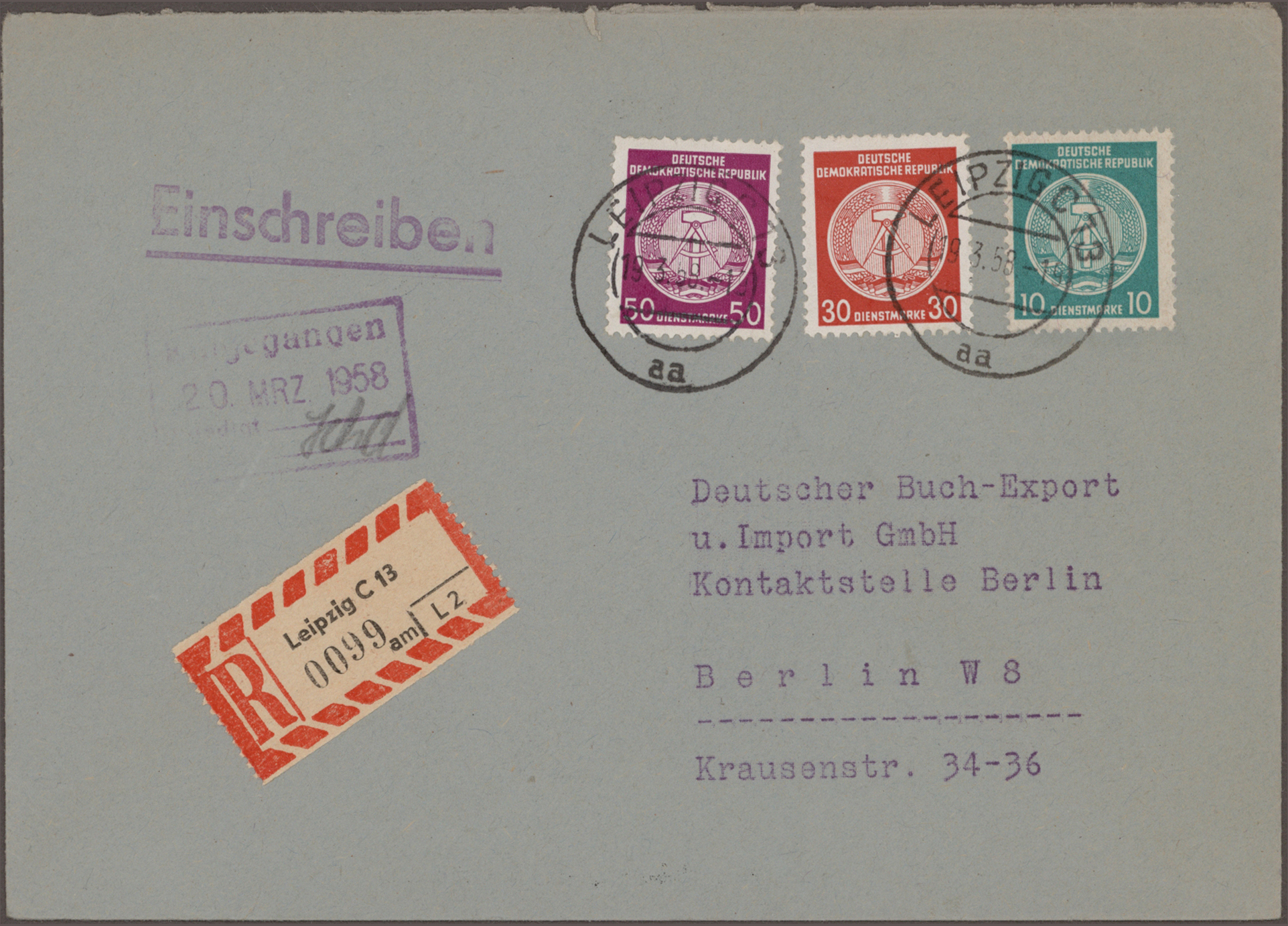 interessanten Stücken, Eilboten, Einschreiben, größeren Einheiten, Druckvermerken, Leerfeldern, Farbrandstreifen, guter Anteil Tagesstempel, kompletten Garnituren, besseren und gesuchten Ausgaben wie Fünfjahrplan (68 Belege), Dimitrov (12), Leipziger