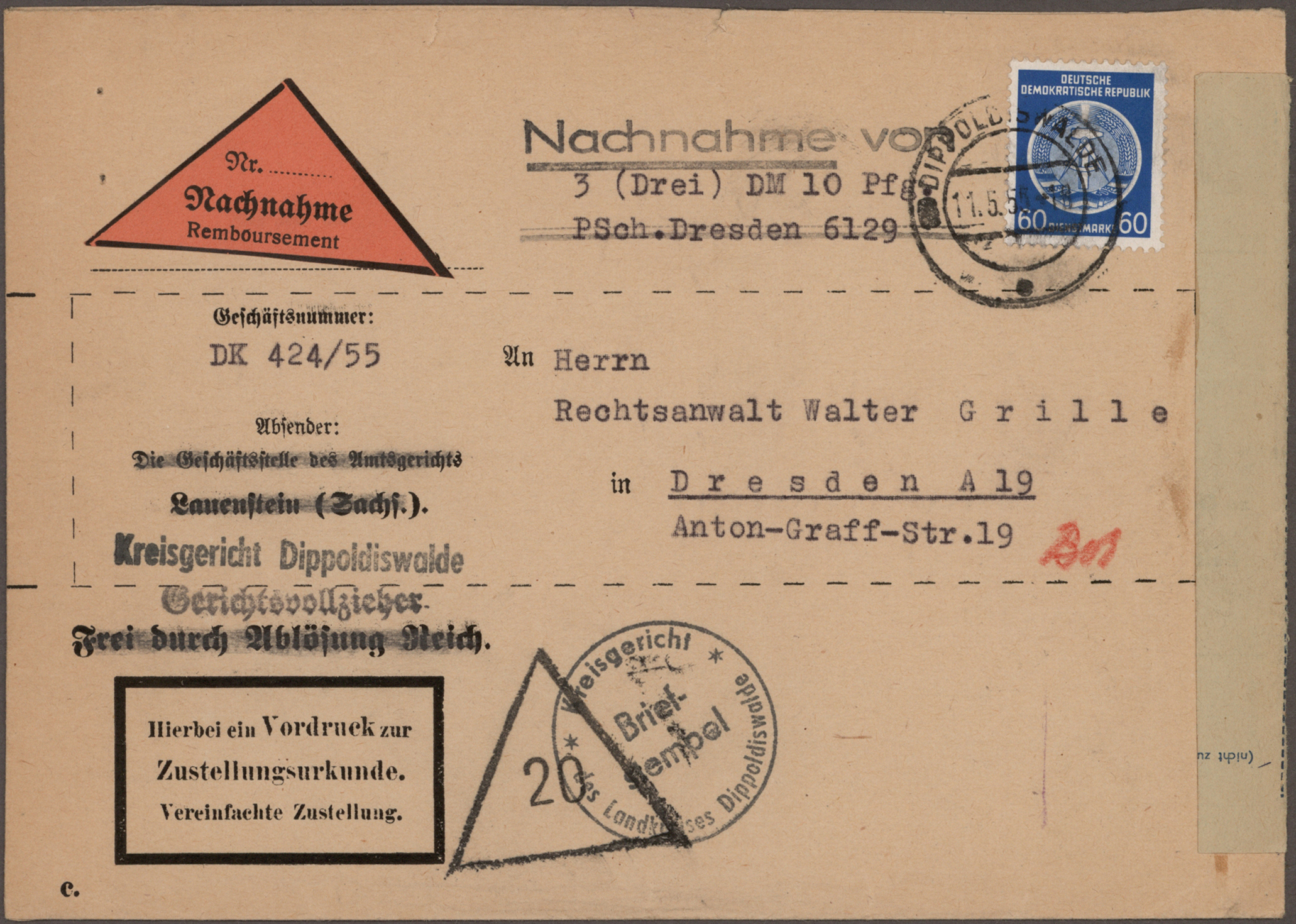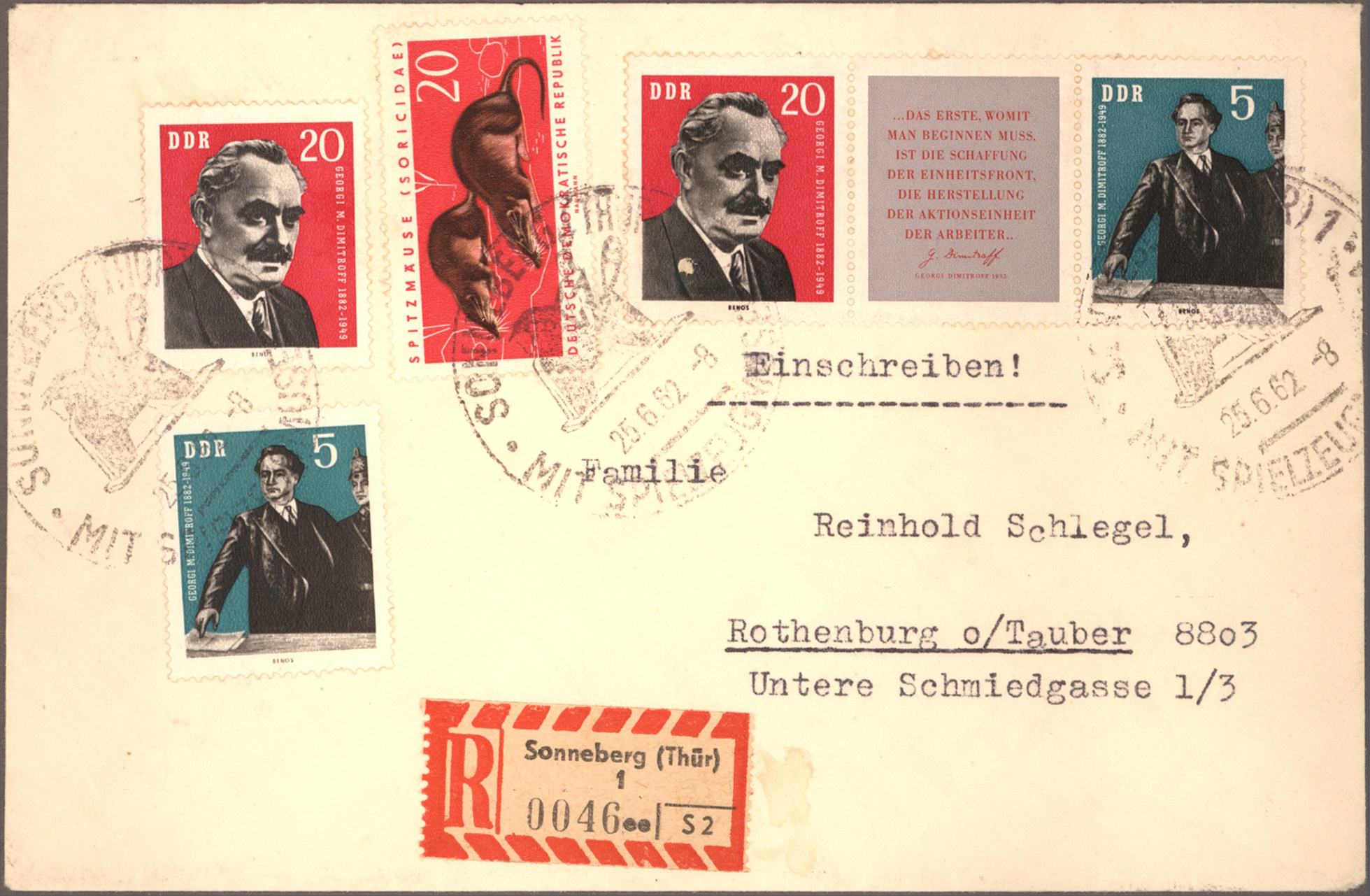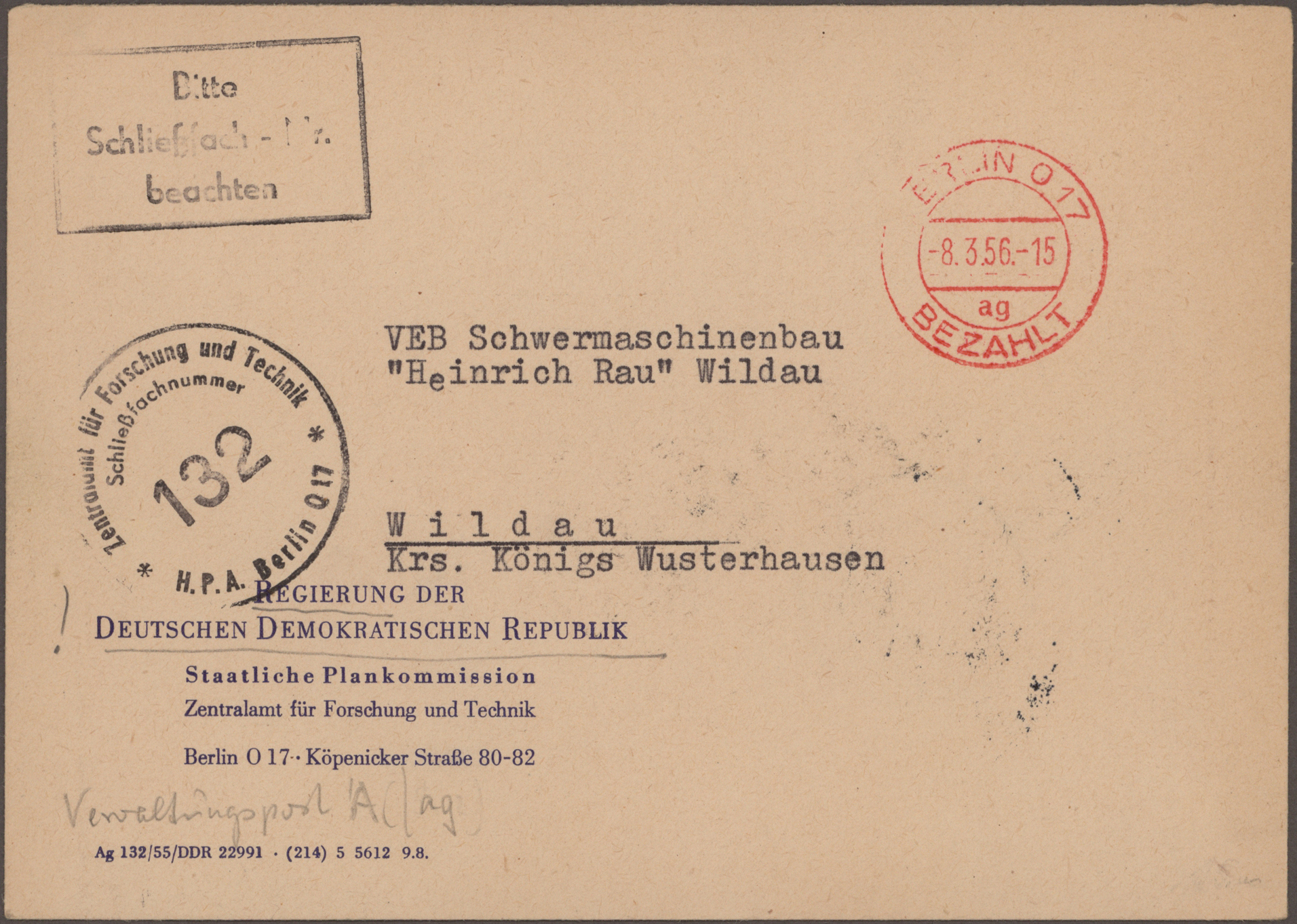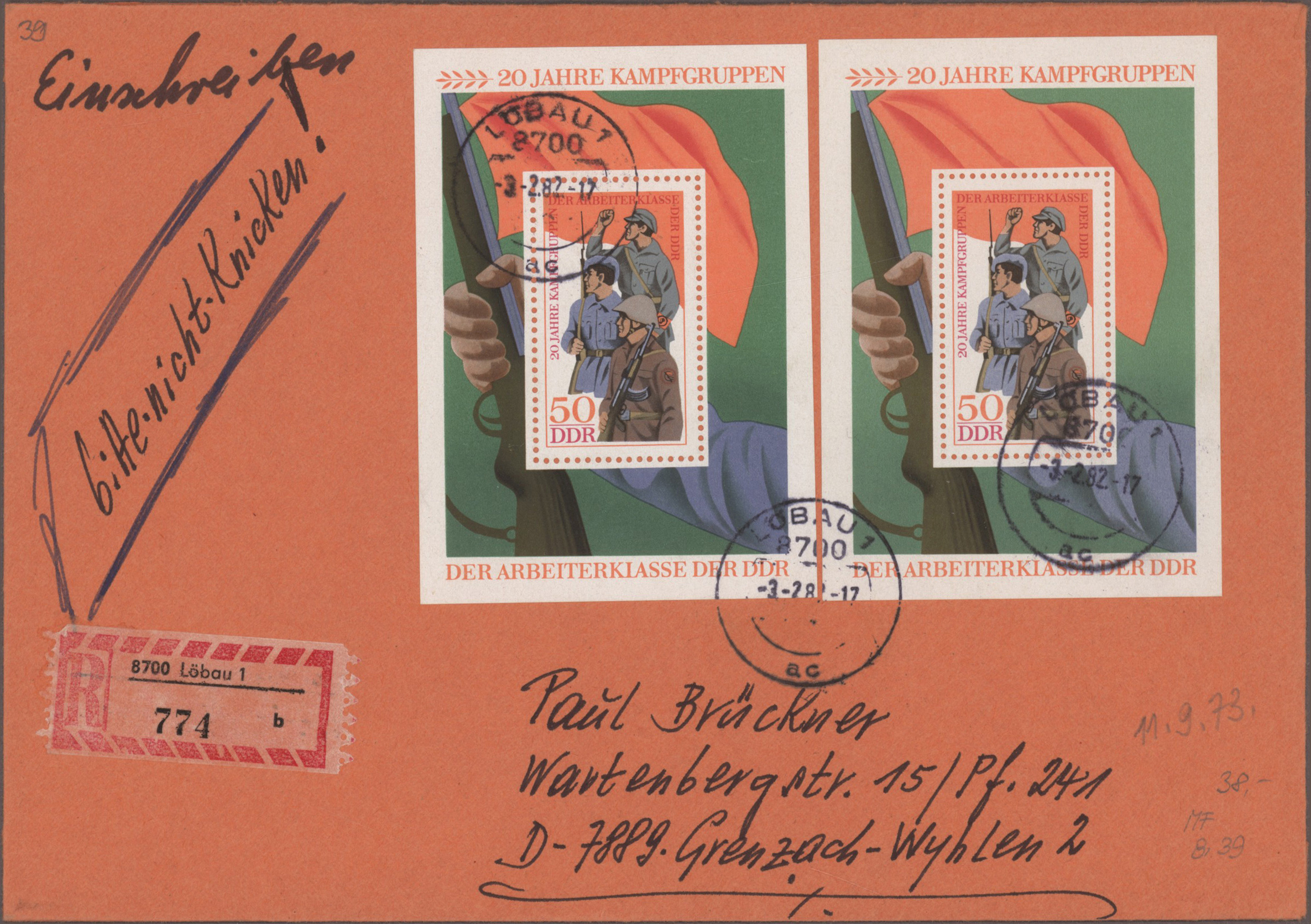 interessanten Stücken, Eilboten, Einschreiben, größeren Einheiten, Druckvermerken, Leerfeldern, Farbrandstreifen, guter Anteil Tagesstempel, kompletten Garnituren, besseren und gesuchten Ausgaben wie Fünfjahrplan (68 Belege), Dimitrov (12), Leipziger