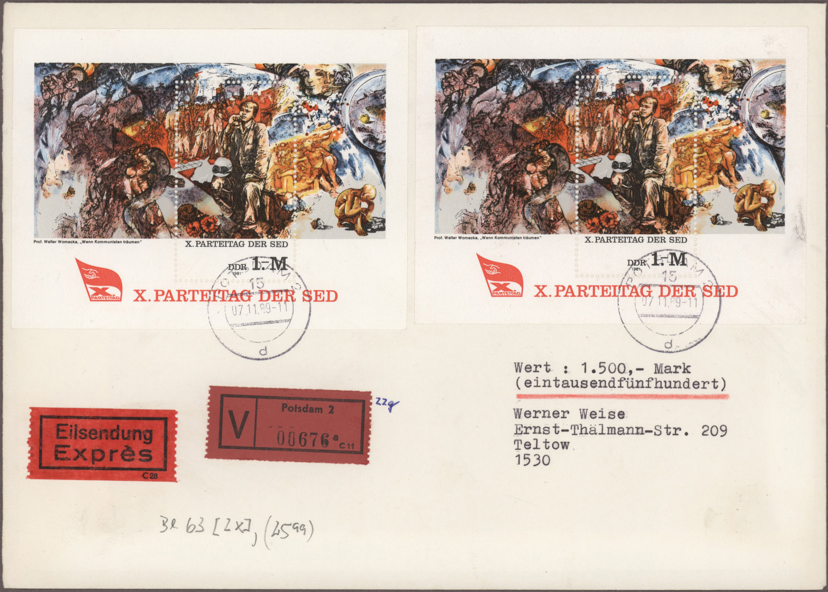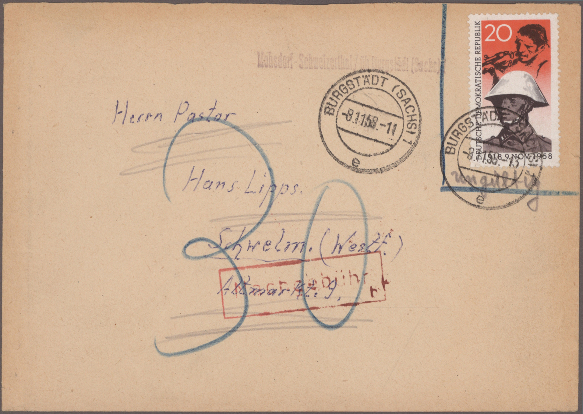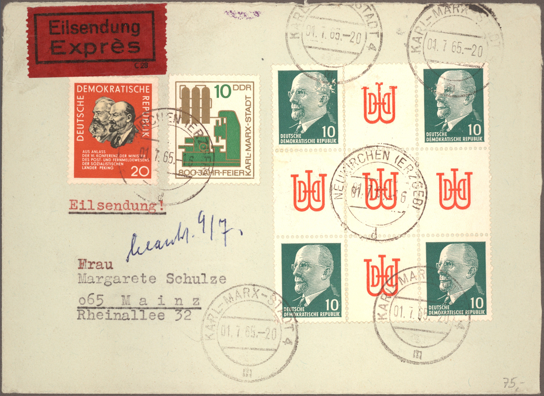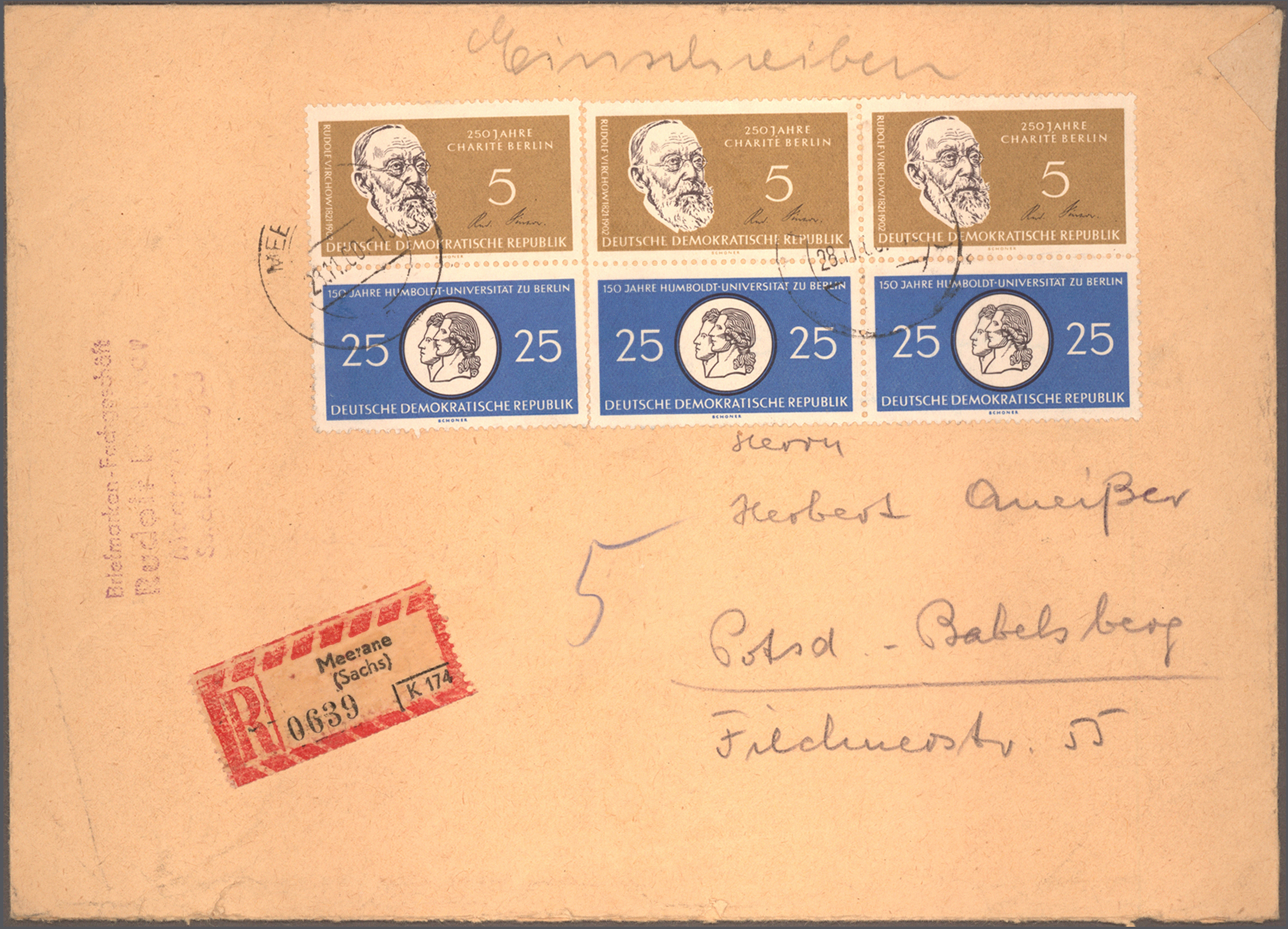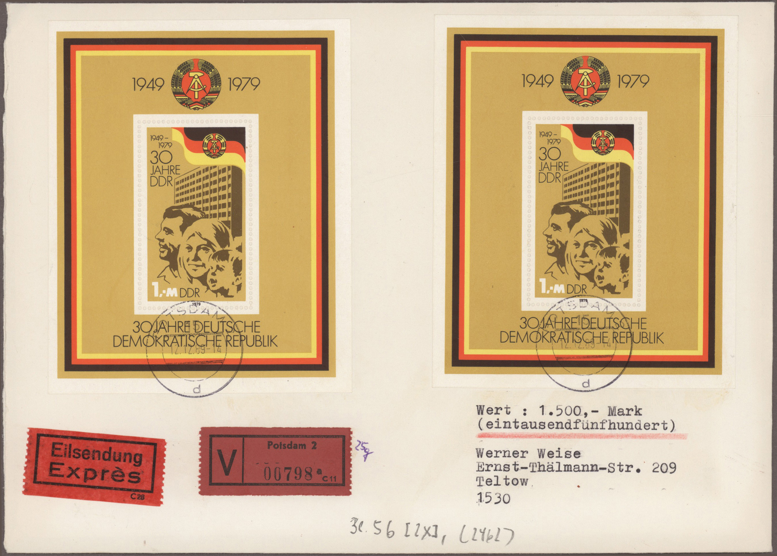 interessanten Stücken, Eilboten, Einschreiben, größeren Einheiten, Druckvermerken, Leerfeldern, Farbrandstreifen, guter Anteil Tagesstempel, kompletten Garnituren, besseren und gesuchten Ausgaben wie Fünfjahrplan (68 Belege), Dimitrov (12), Leipziger