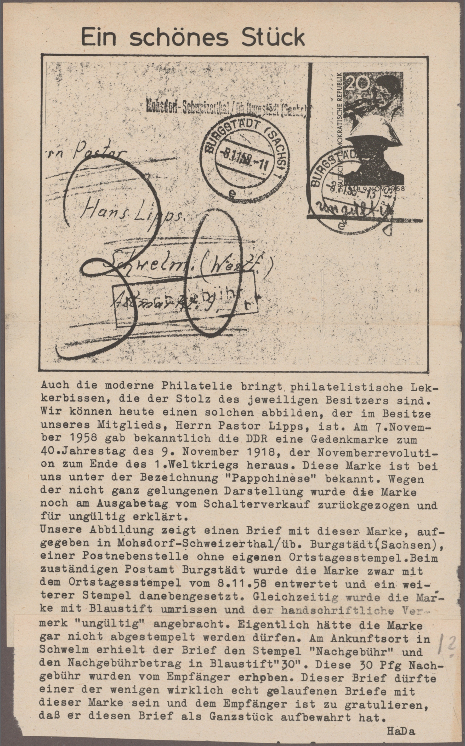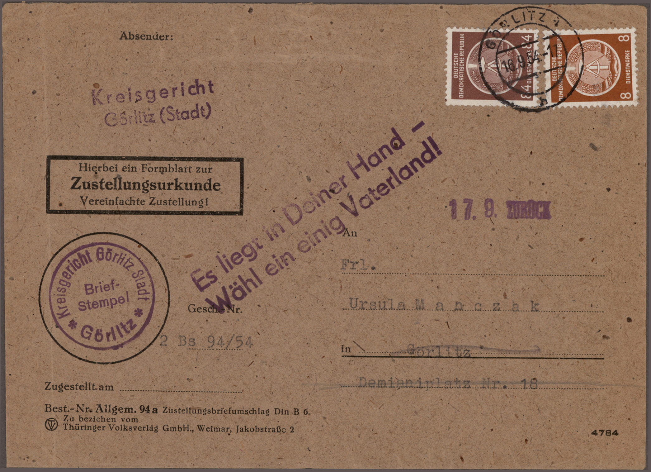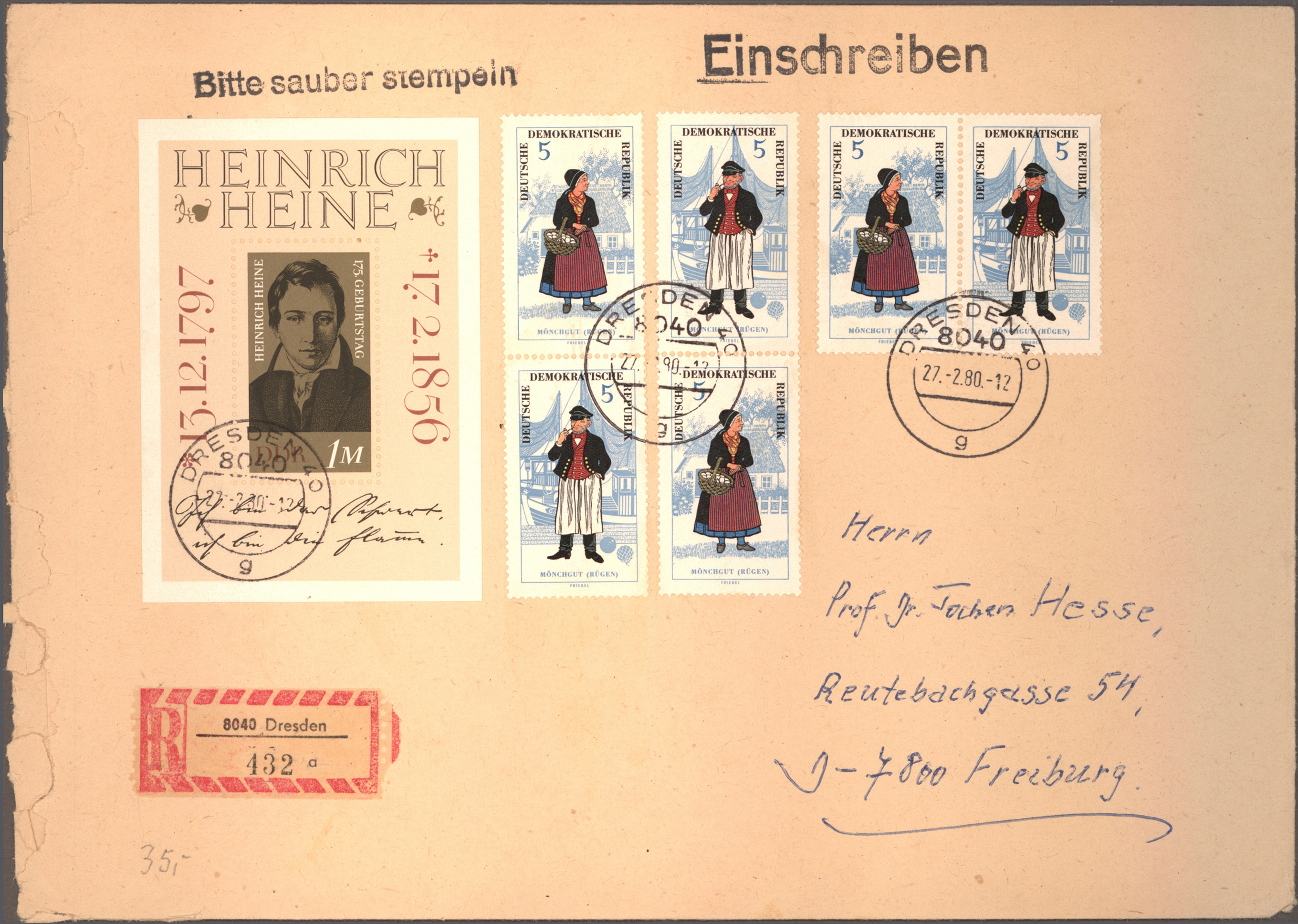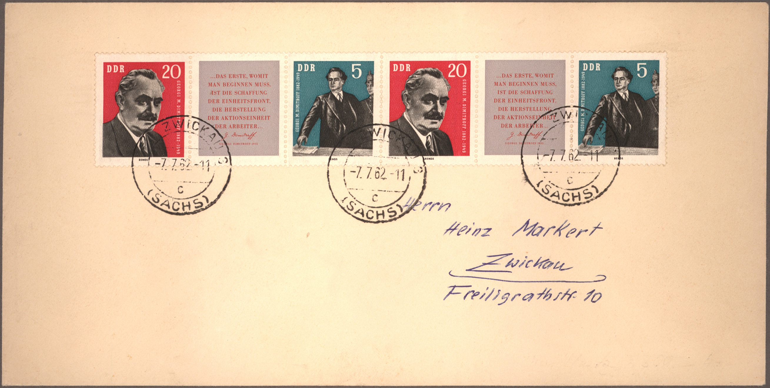 interessanten Stücken, Eilboten, Einschreiben, größeren Einheiten, Druckvermerken, Leerfeldern, Farbrandstreifen, guter Anteil Tagesstempel, kompletten Garnituren, besseren und gesuchten Ausgaben wie Fünfjahrplan (68 Belege), Dimitrov (12), Leipziger
