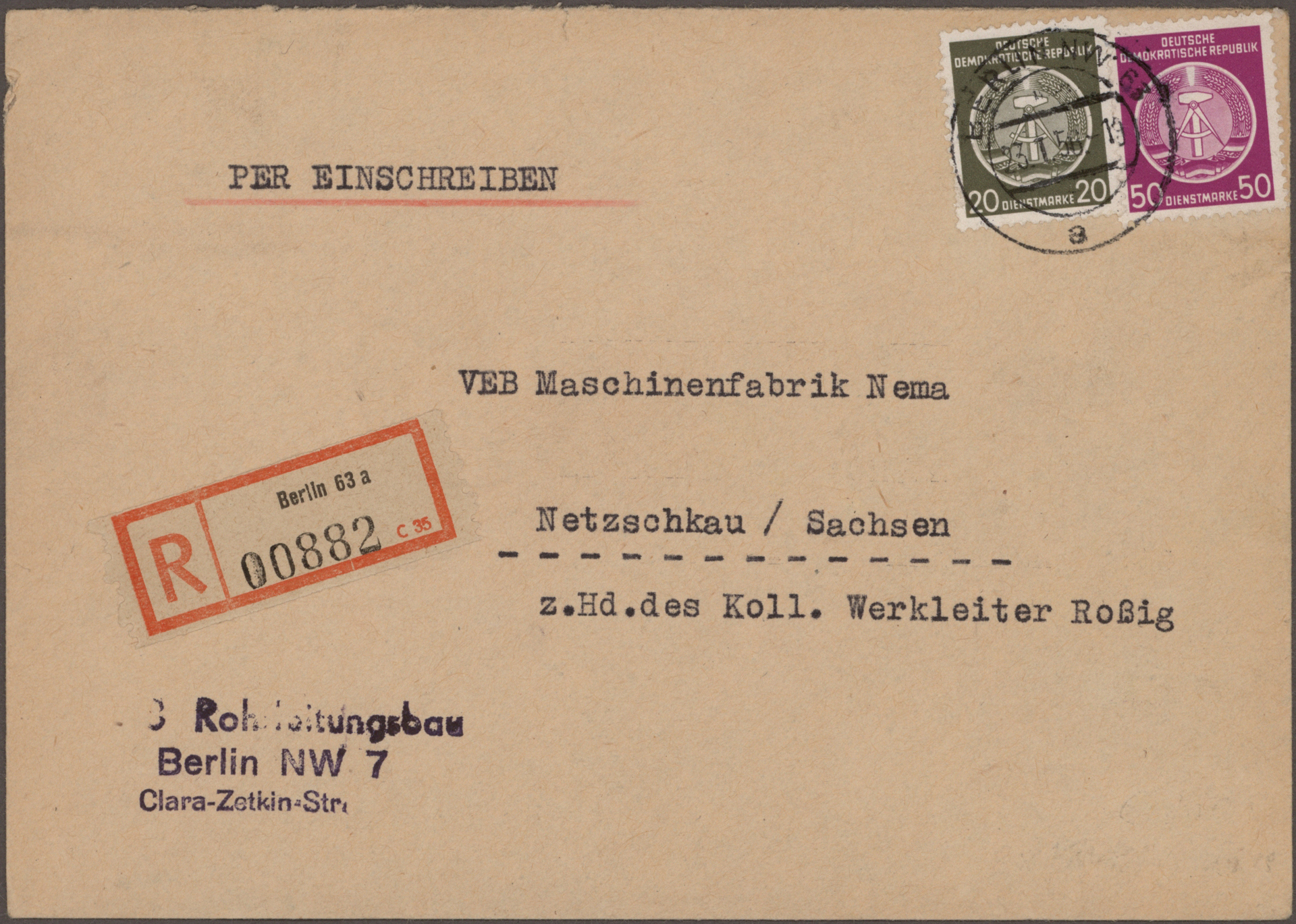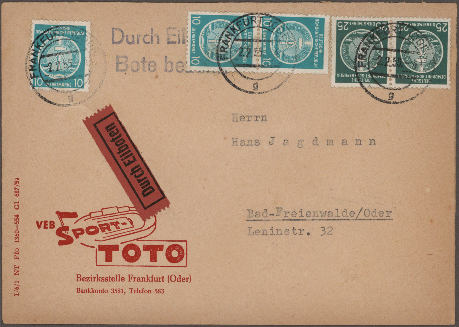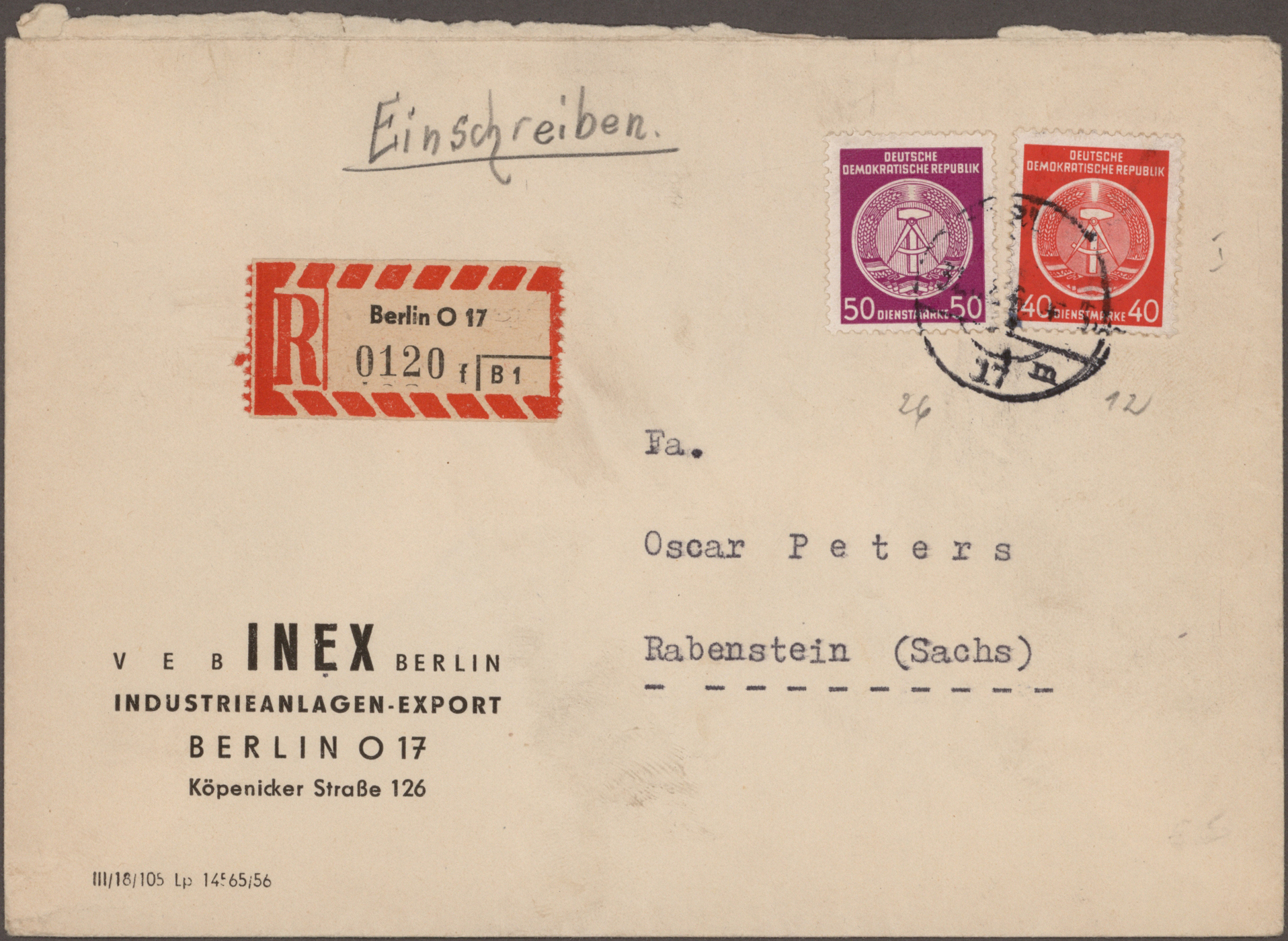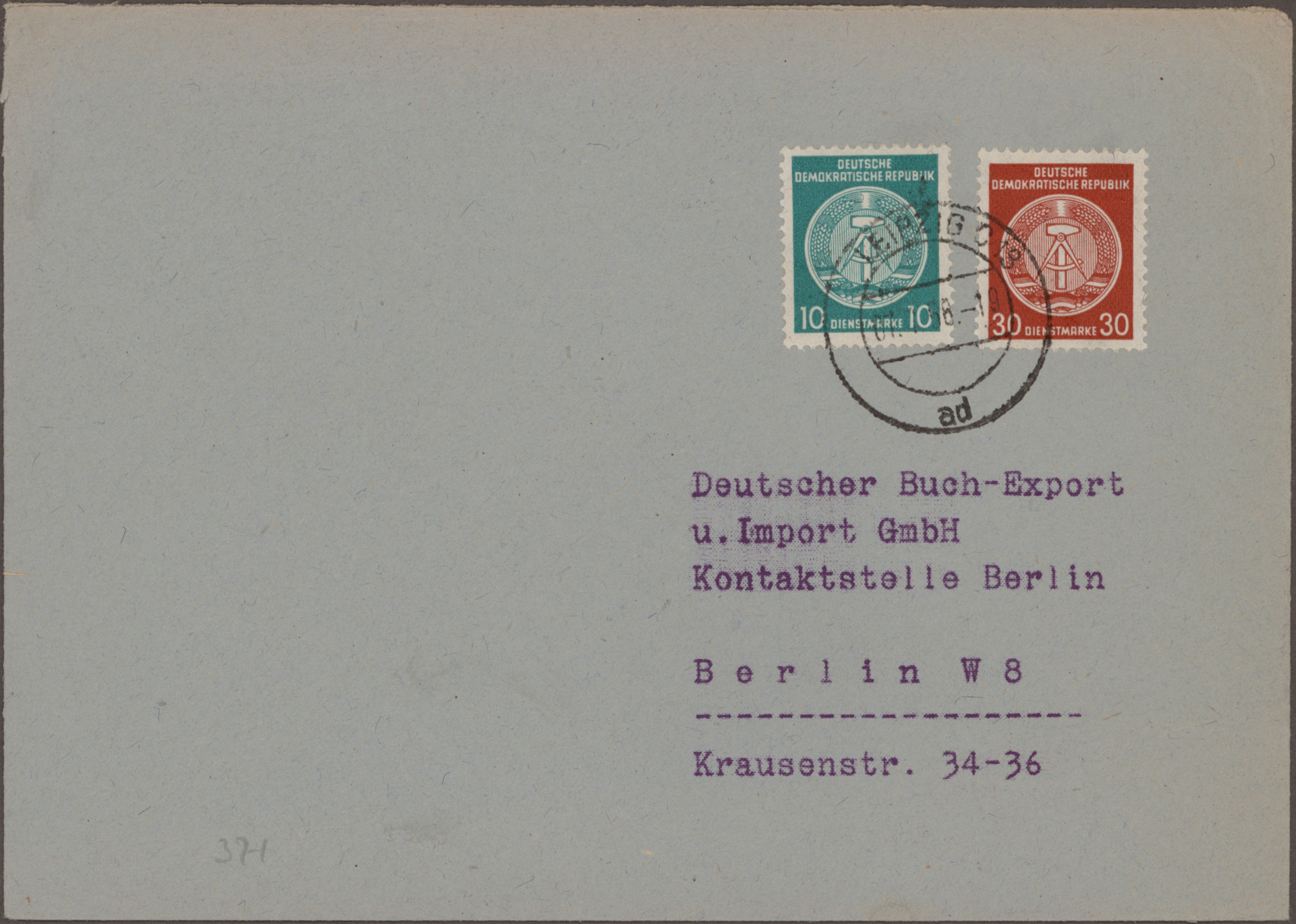 1949/1980 (ca.), Dienst und ZKD, umfangreicher und vielseitig strukturierter Bestand von ca. 1.670 Belegen, dabei zahlreiche Frankaturen Dienstmarken