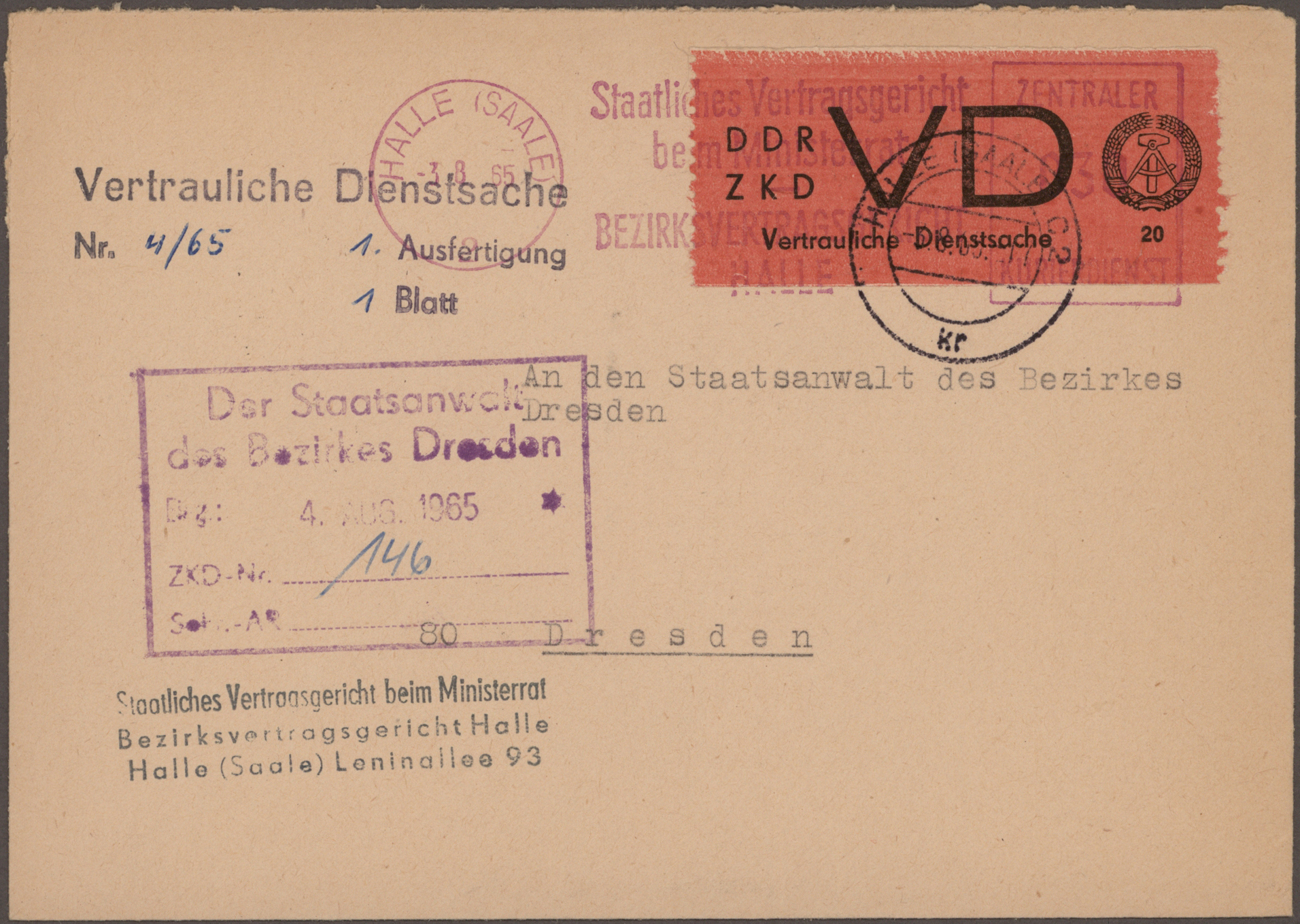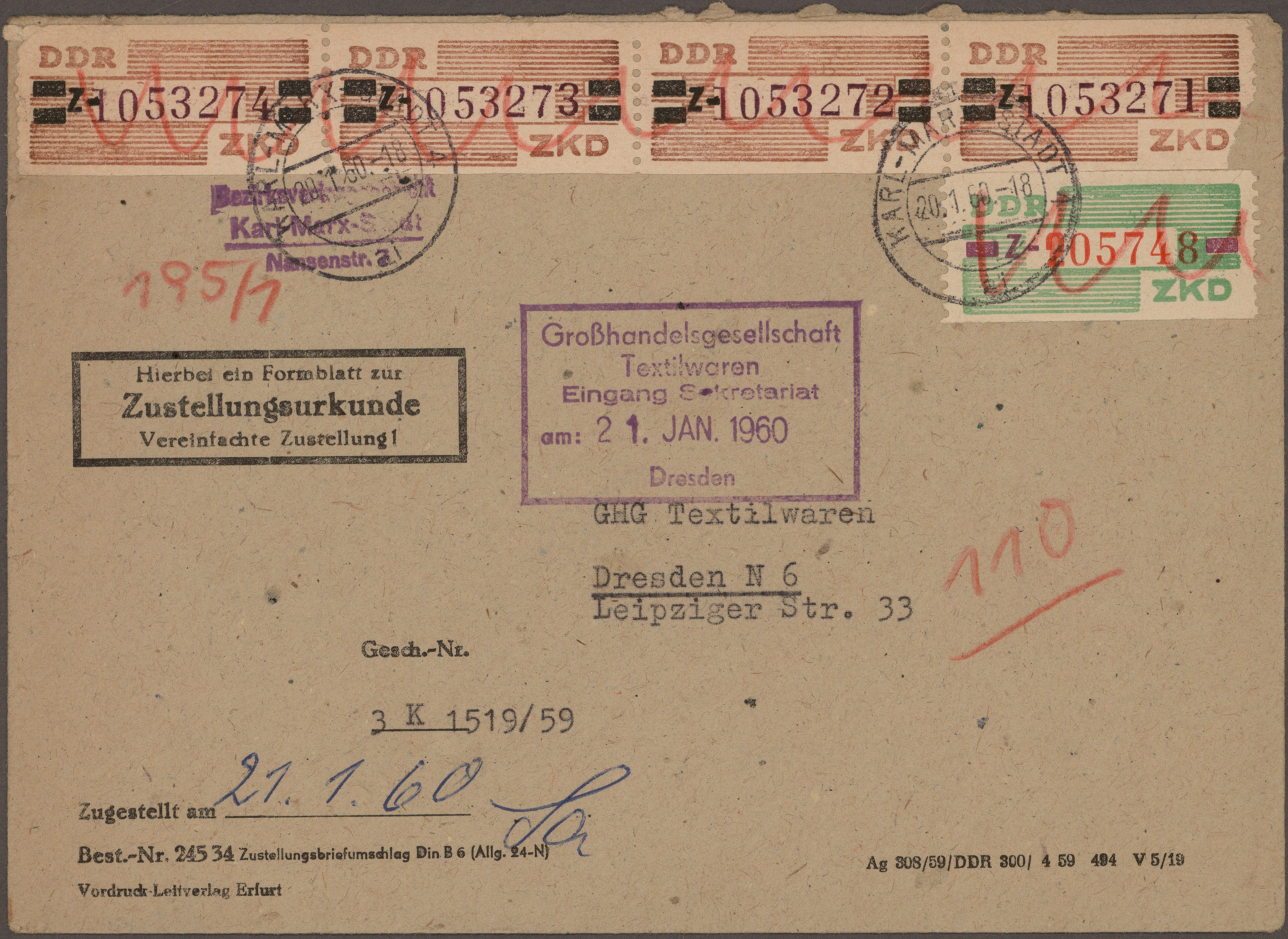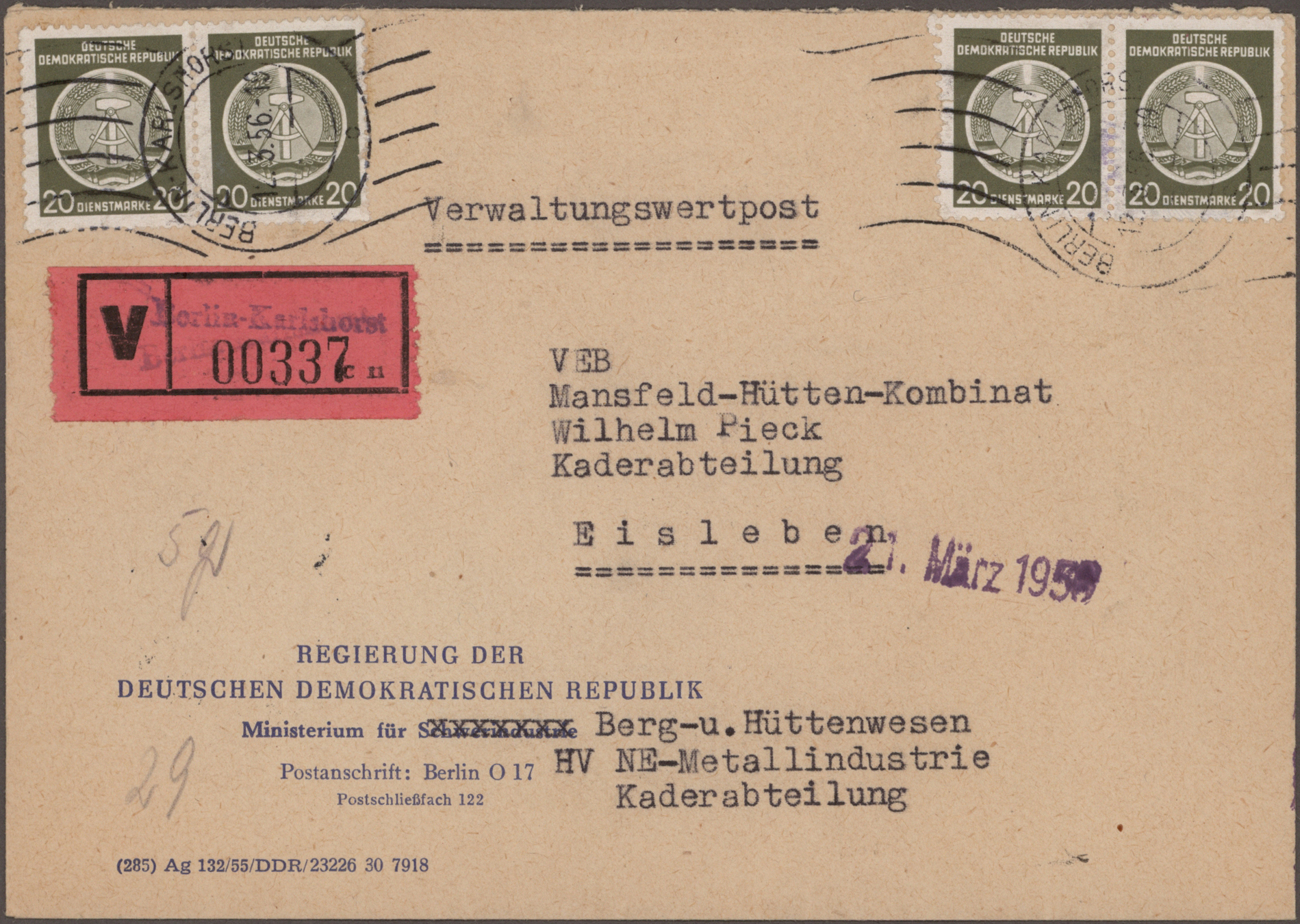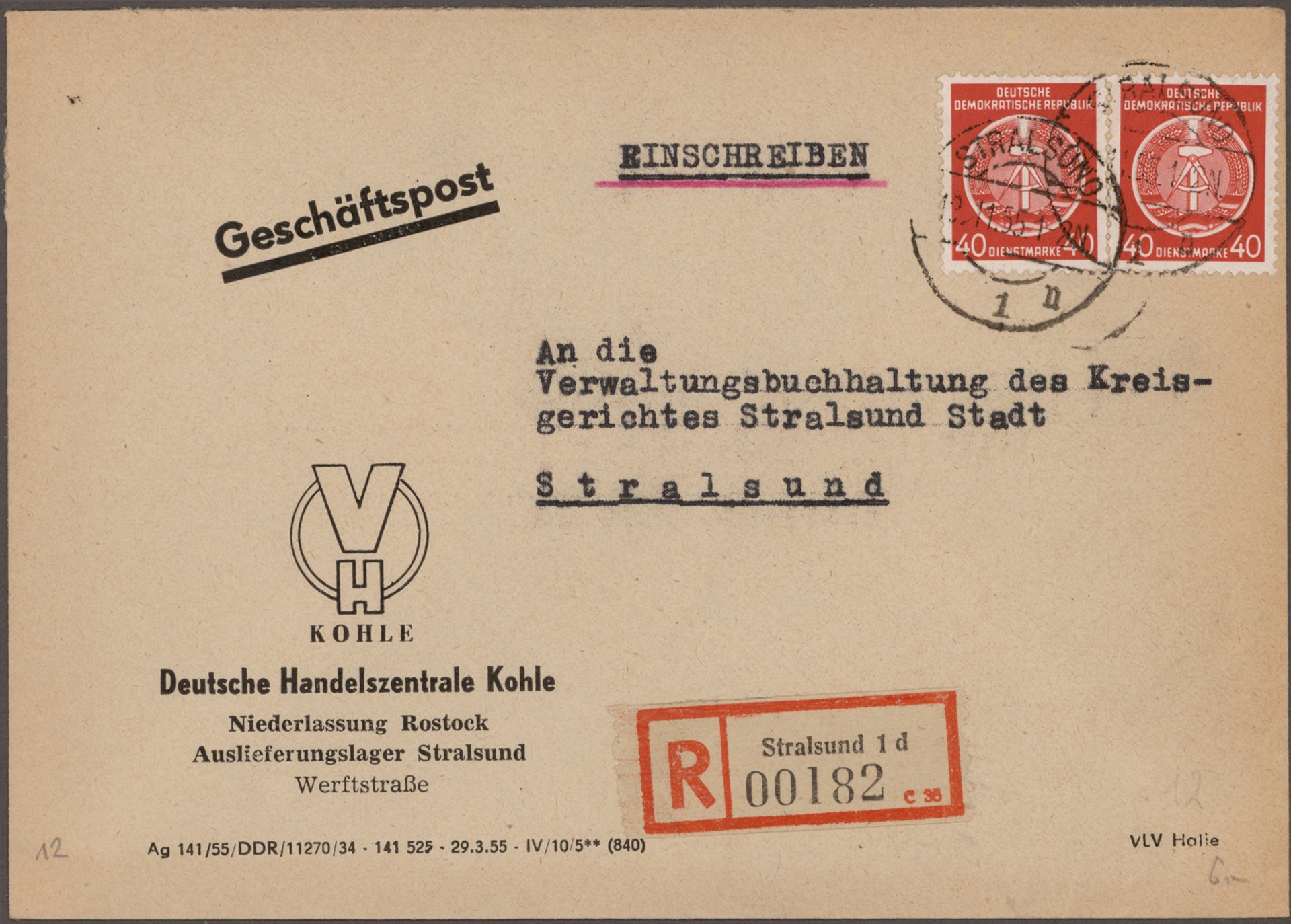 1949/1980 (ca.), Dienst und ZKD, umfangreicher und vielseitig strukturierter Bestand von ca. 1.670 Belegen, dabei zahlreiche Frankaturen Dienstmarken