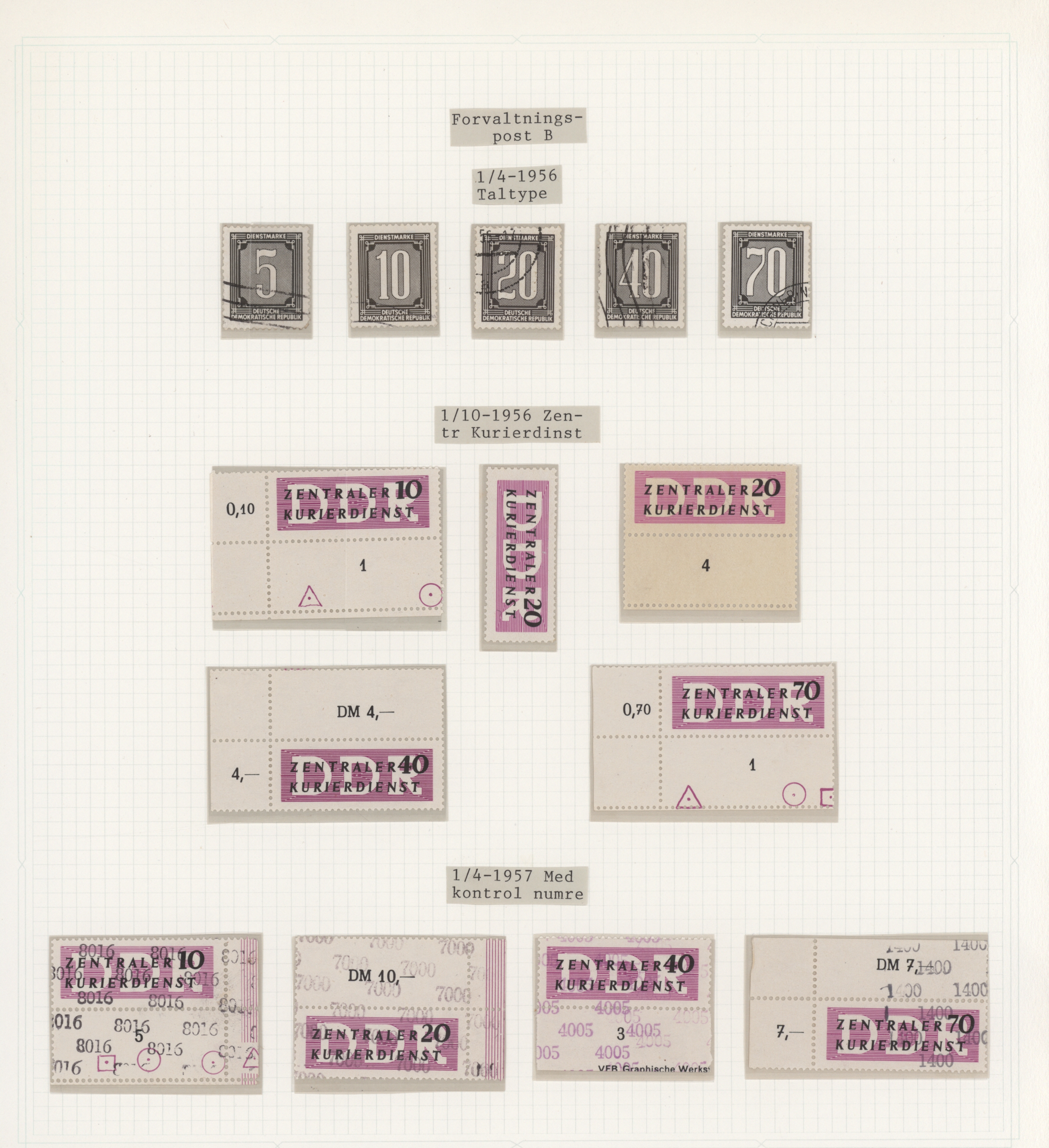 1957, postfrische Sammlung Dienstmarken A-D mit viel ZKD auf Vordruck-Blättern