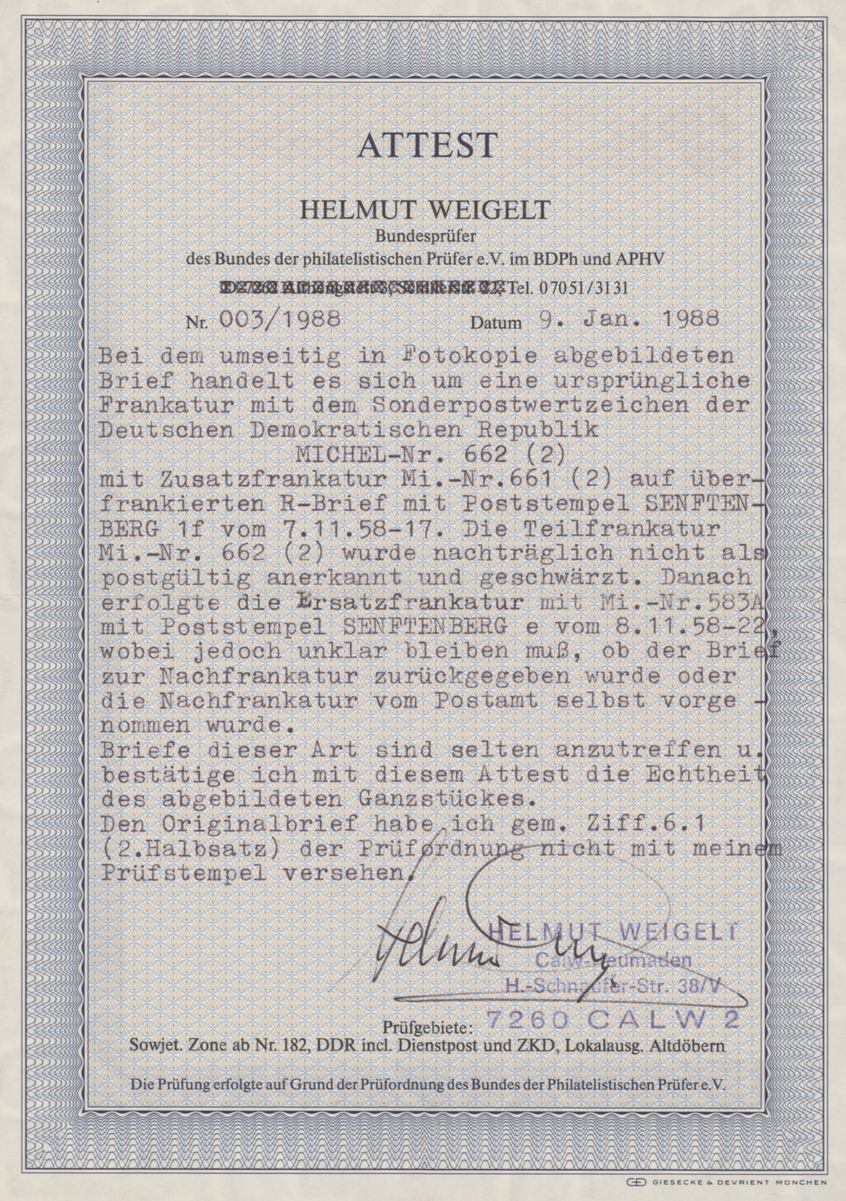 gefasertem Papier in tadelloser postfrischer Erhaltung. (Mi. ca. 1.350) sowie 6 Belege Vertrauliche Dienstsachen, darunter auch zwei Briefe mit MiNr. 2(je 500,- €).