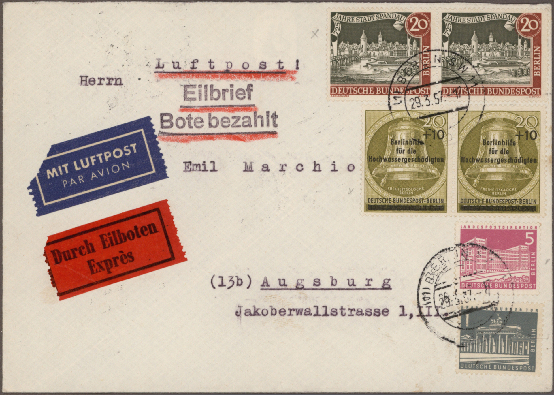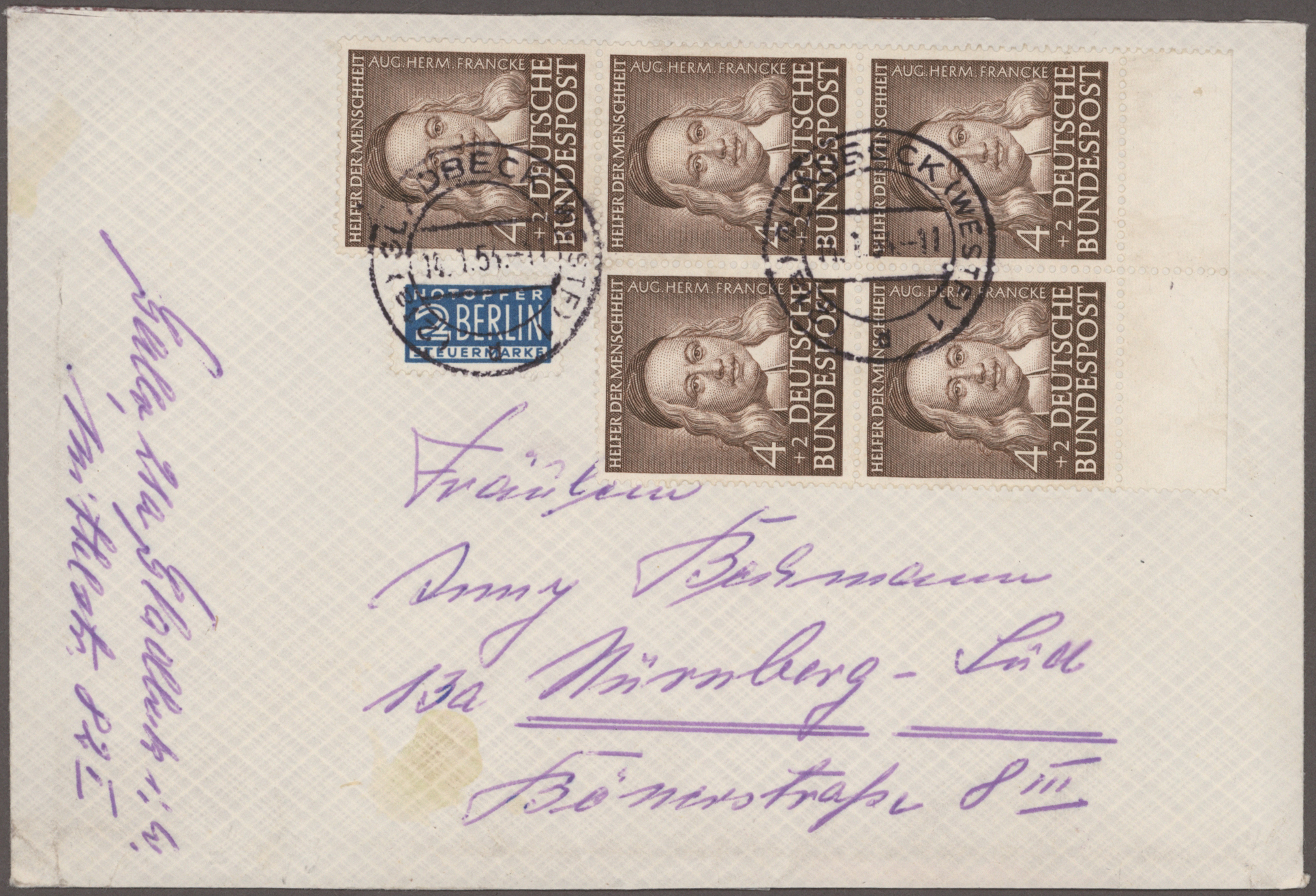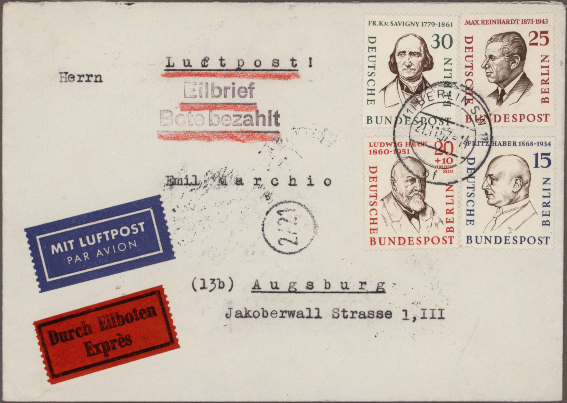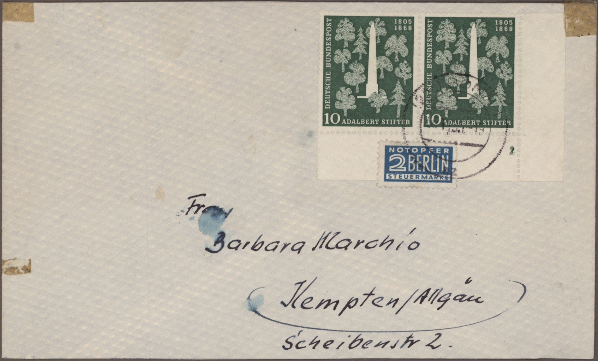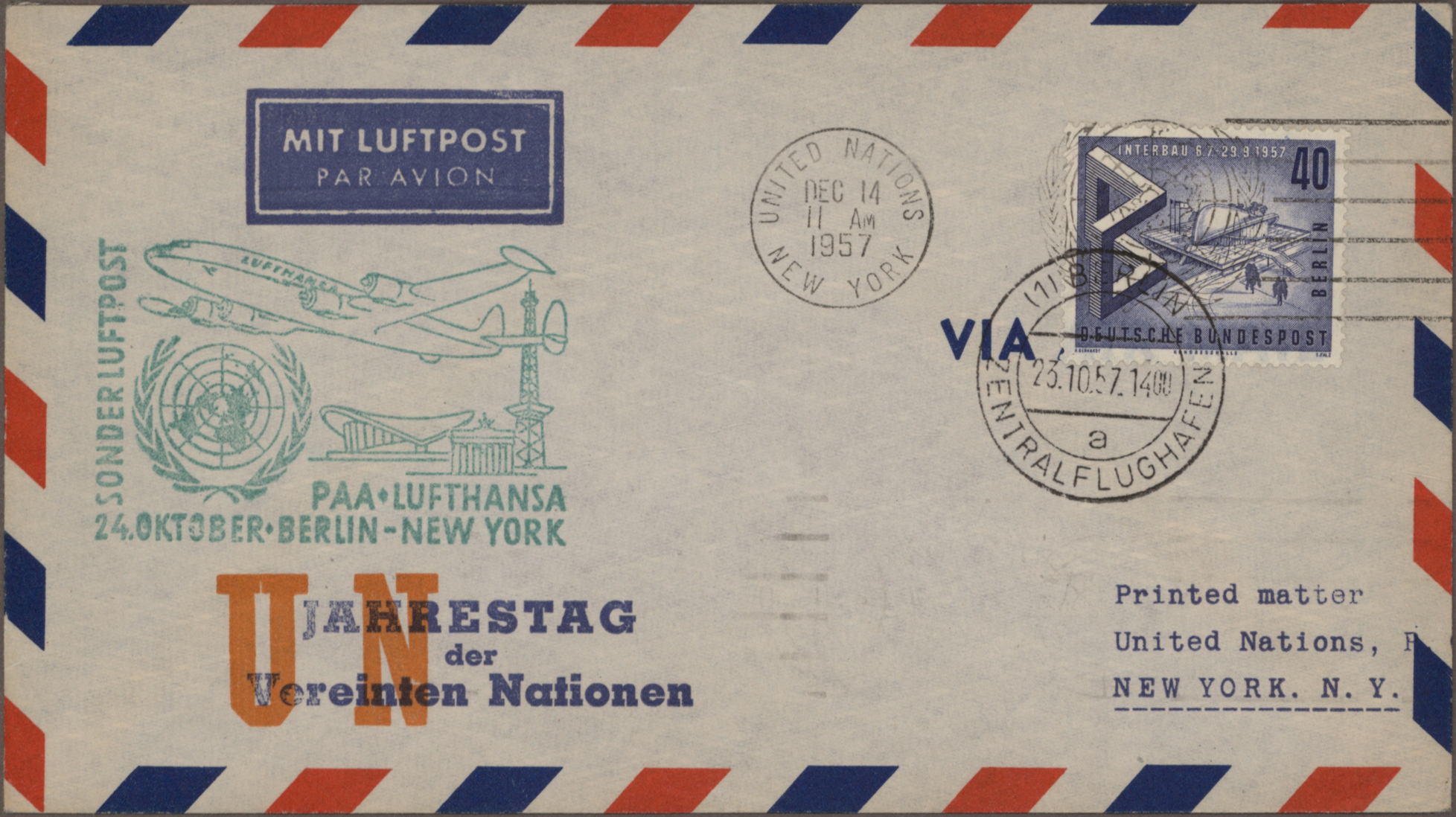 1948/1966, nette Partie, dabei Bund-Markenheftchen ab Heuss, Berlin mit zehn Belegen, u.a. Mischfrankatur Schwarz-/Rotaufdruck auf R-Brief der 2.Gewichtsstufe 3.2.49 nach London.