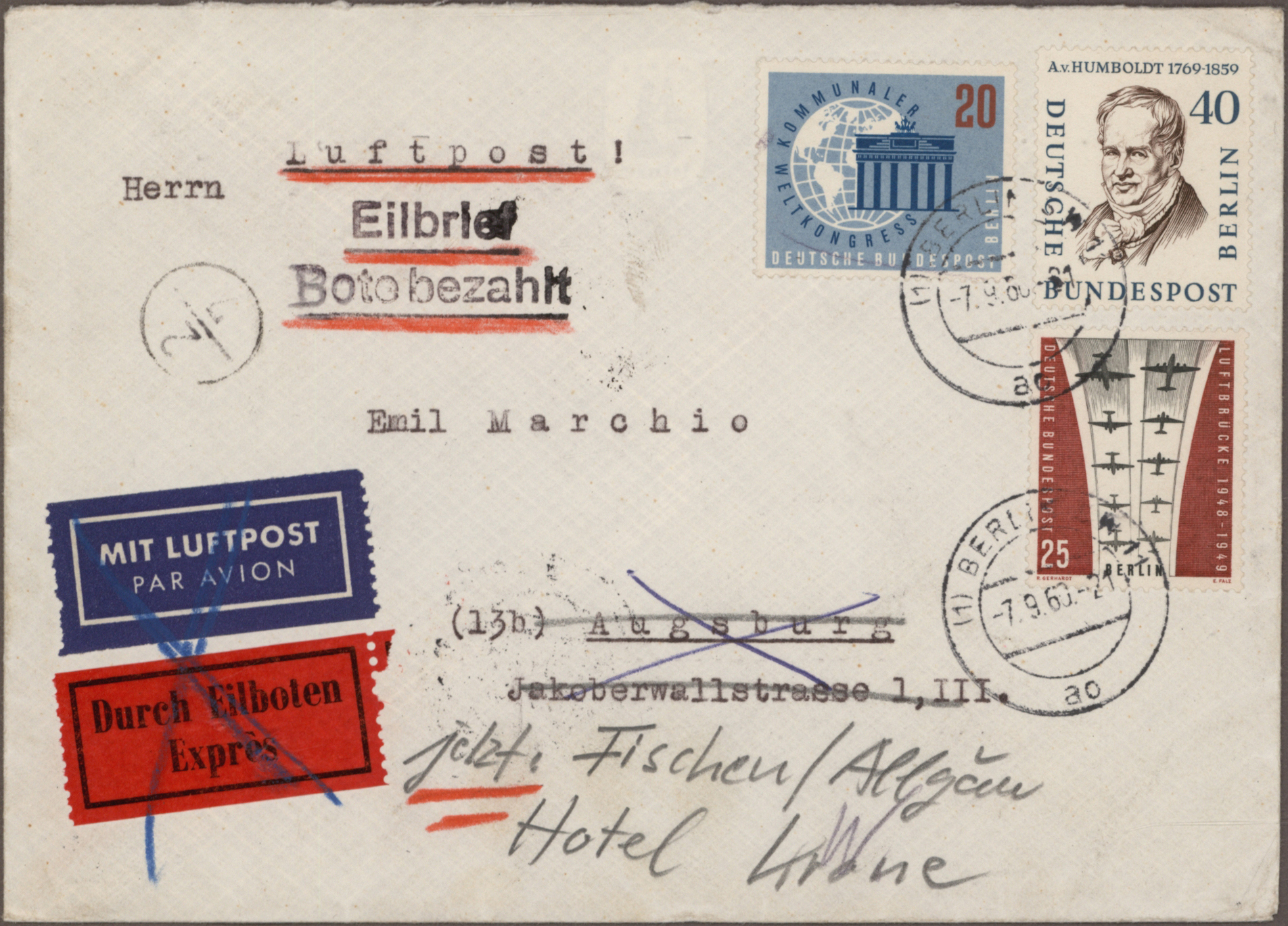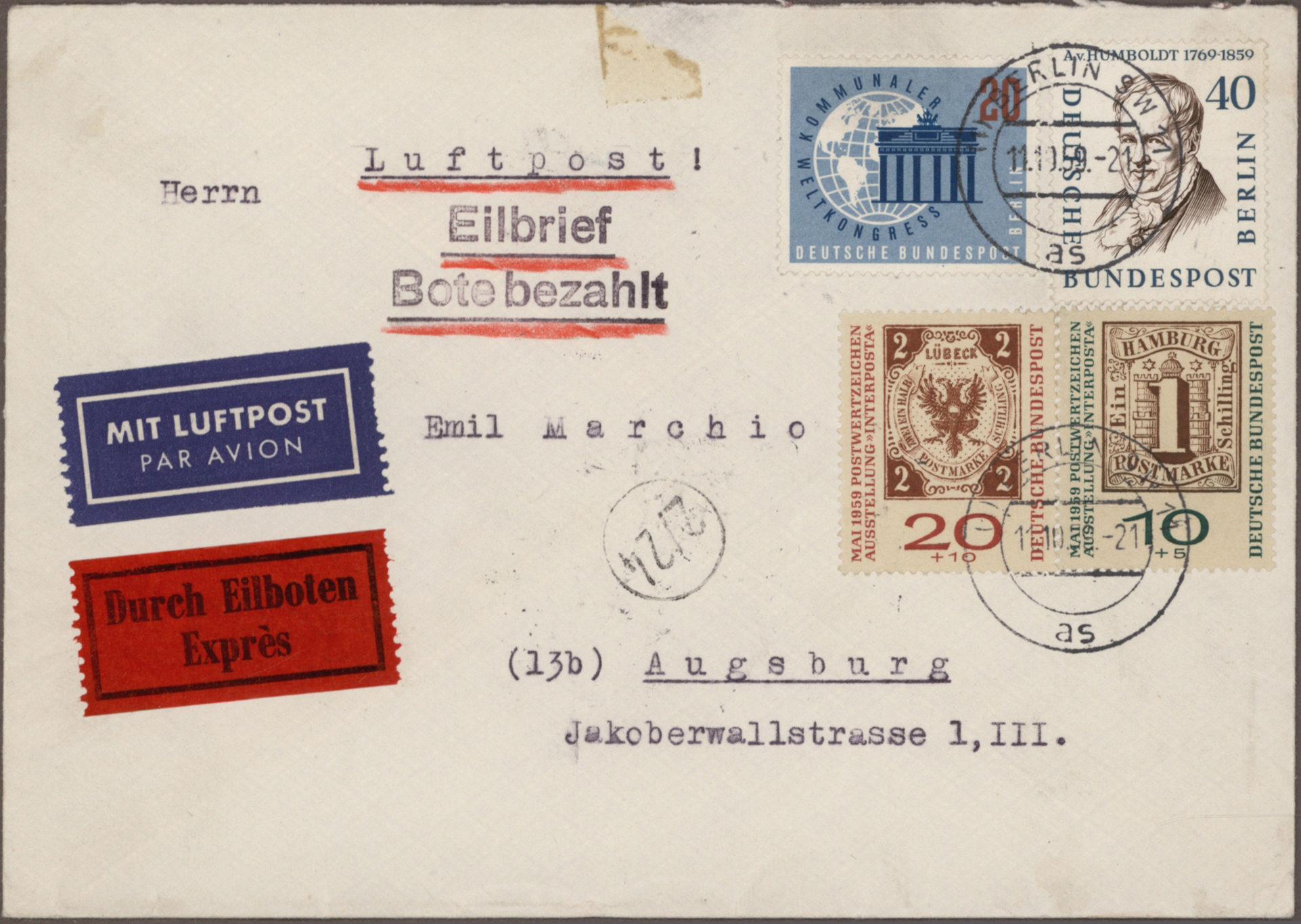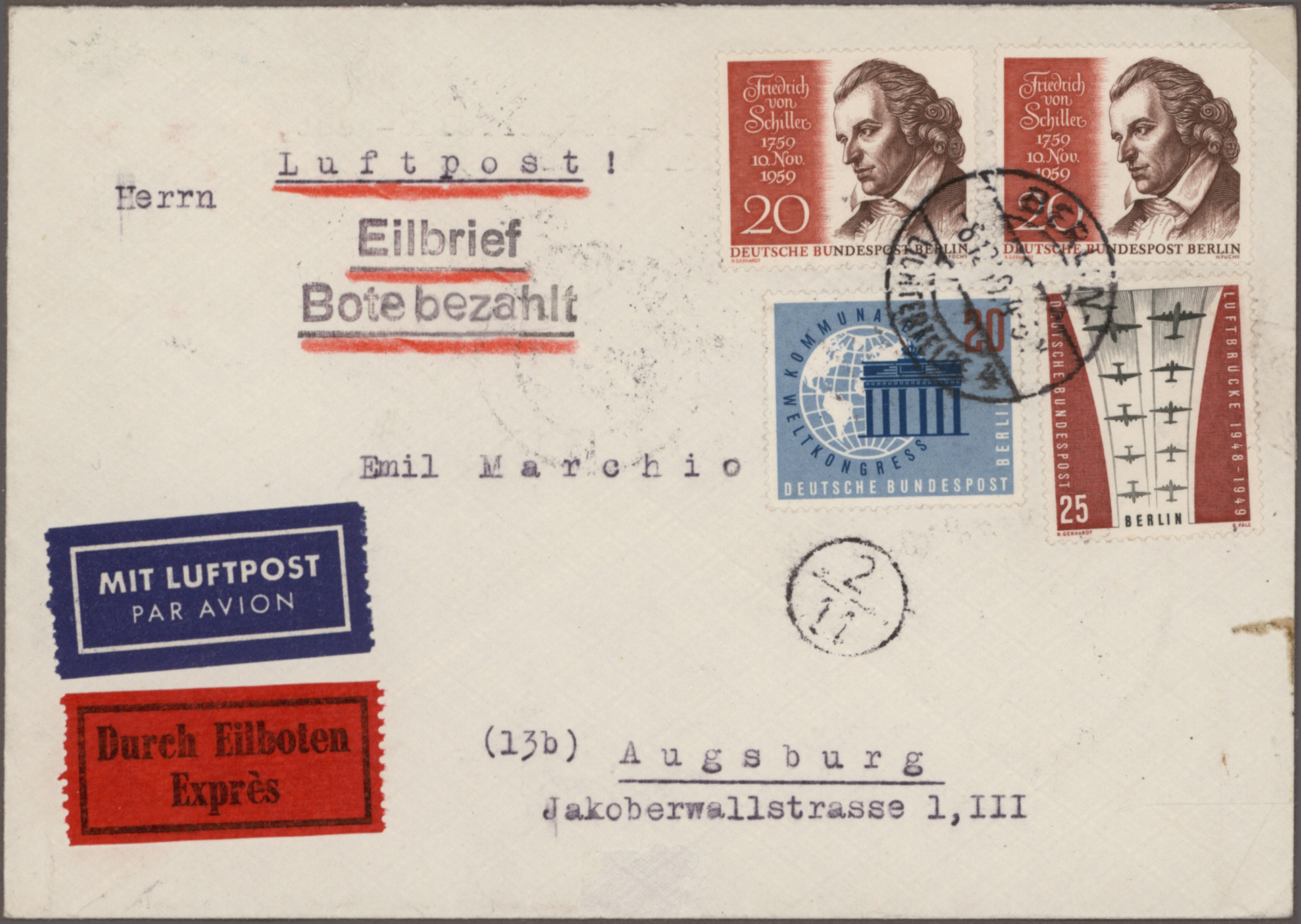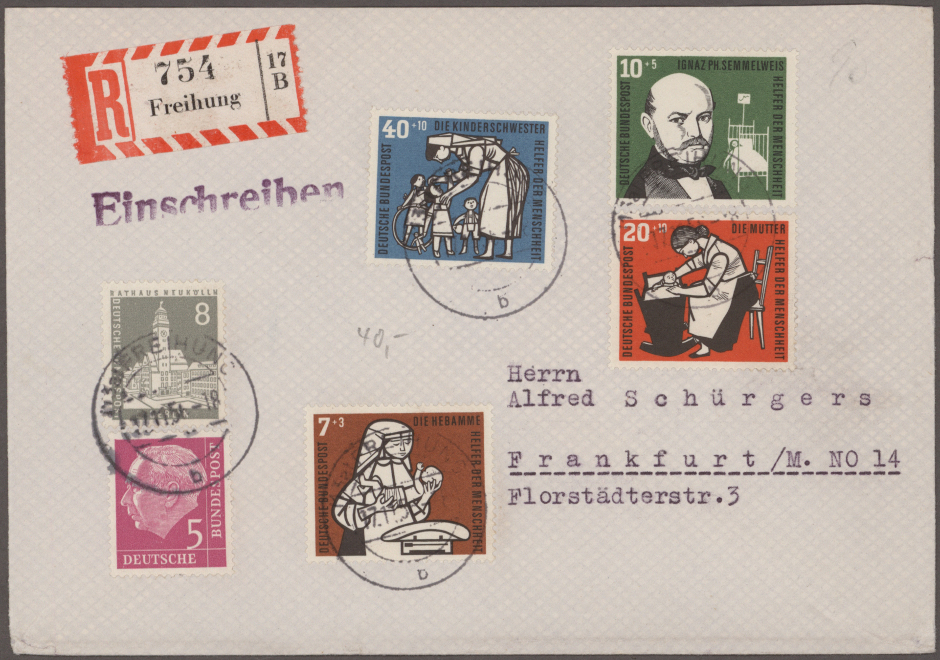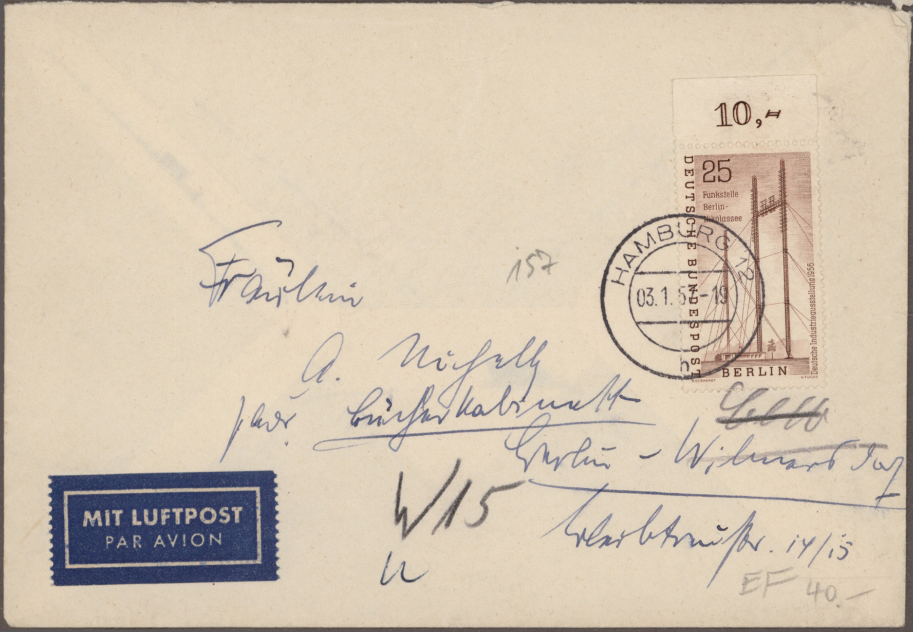 1948/1966, nette Partie, dabei Bund-Markenheftchen ab Heuss, Berlin mit zehn Belegen, u.a. Mischfrankatur Schwarz-/Rotaufdruck auf R-Brief der 2.Gewichtsstufe 3.2.49 nach London.