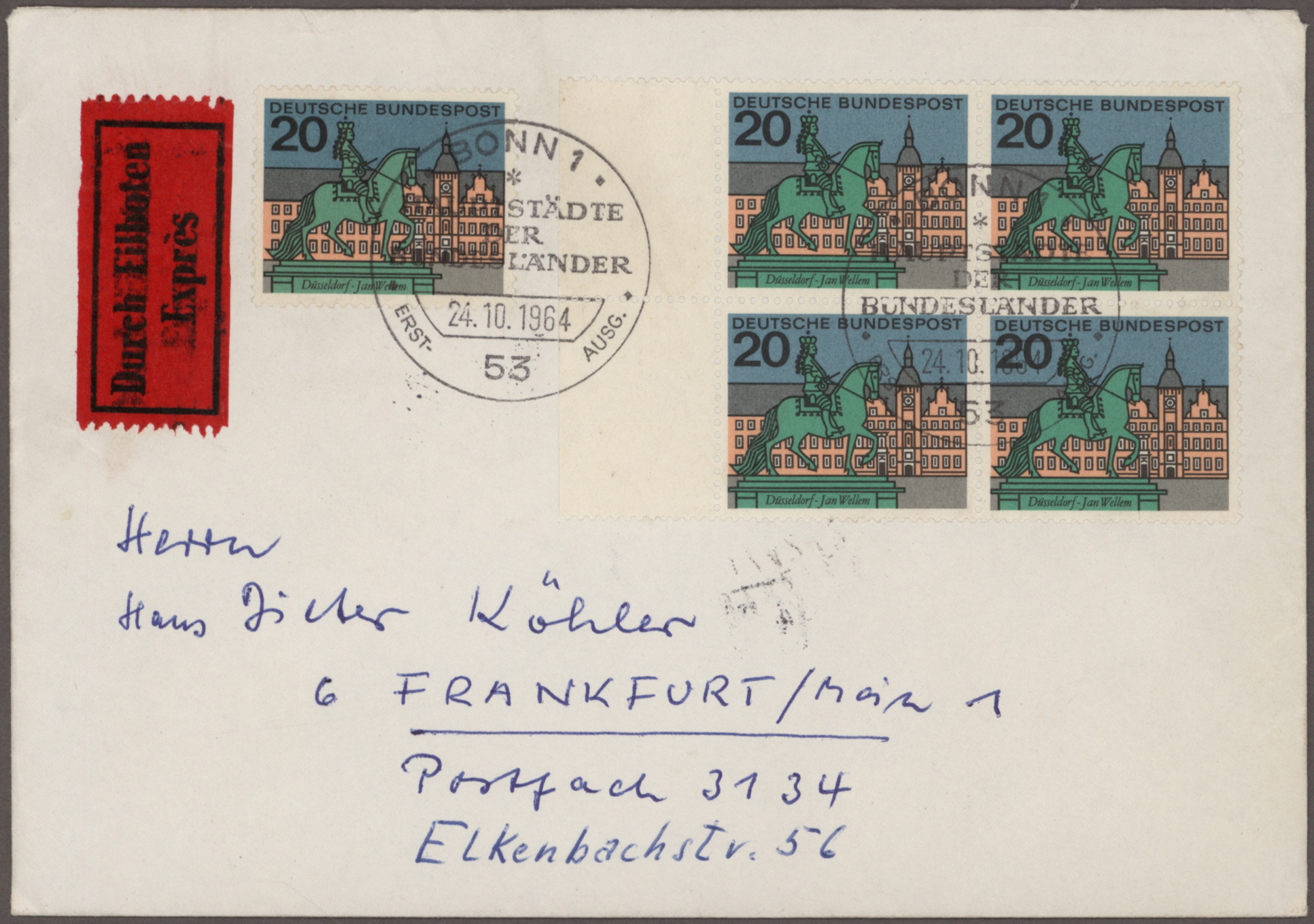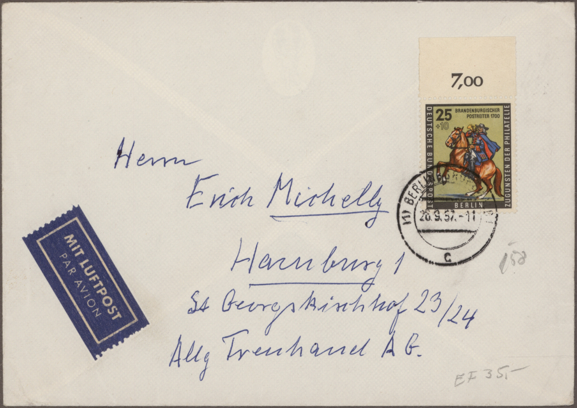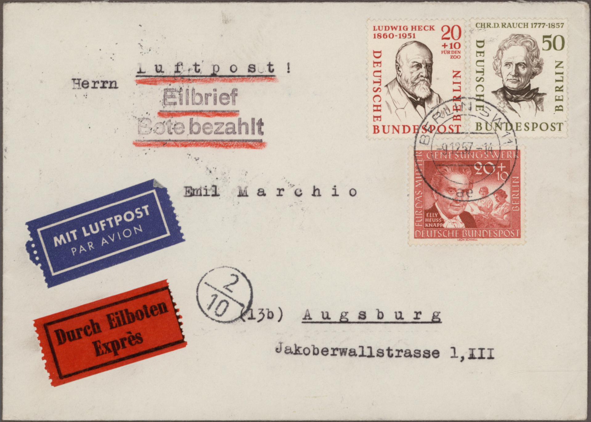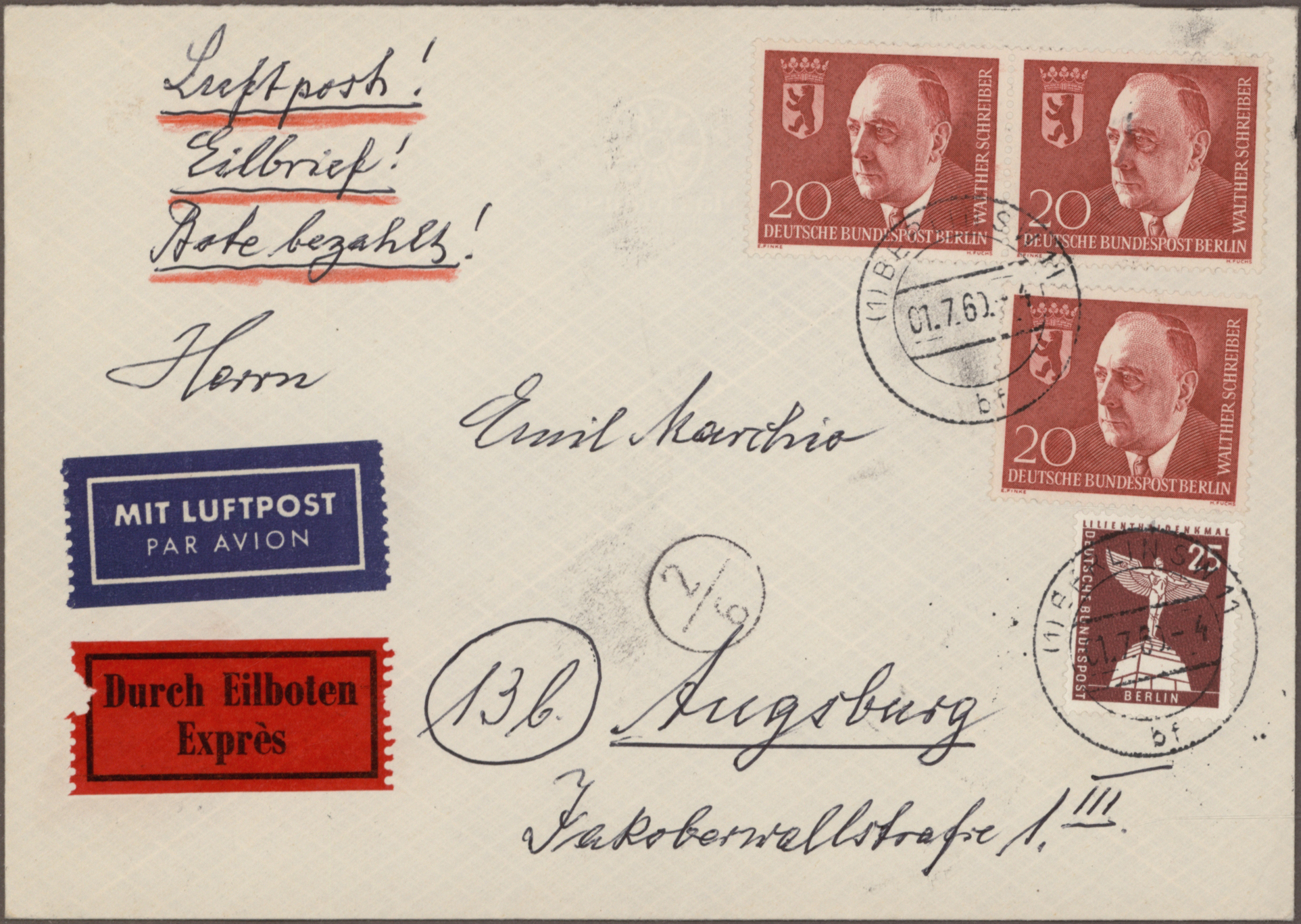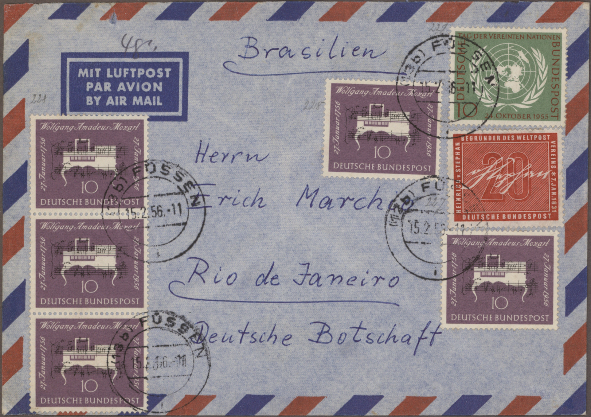 1948/1966, nette Partie, dabei Bund-Markenheftchen ab Heuss, Berlin mit zehn Belegen, u.a. Mischfrankatur Schwarz-/Rotaufdruck auf R-Brief der 2.Gewichtsstufe 3.2.49 nach London.