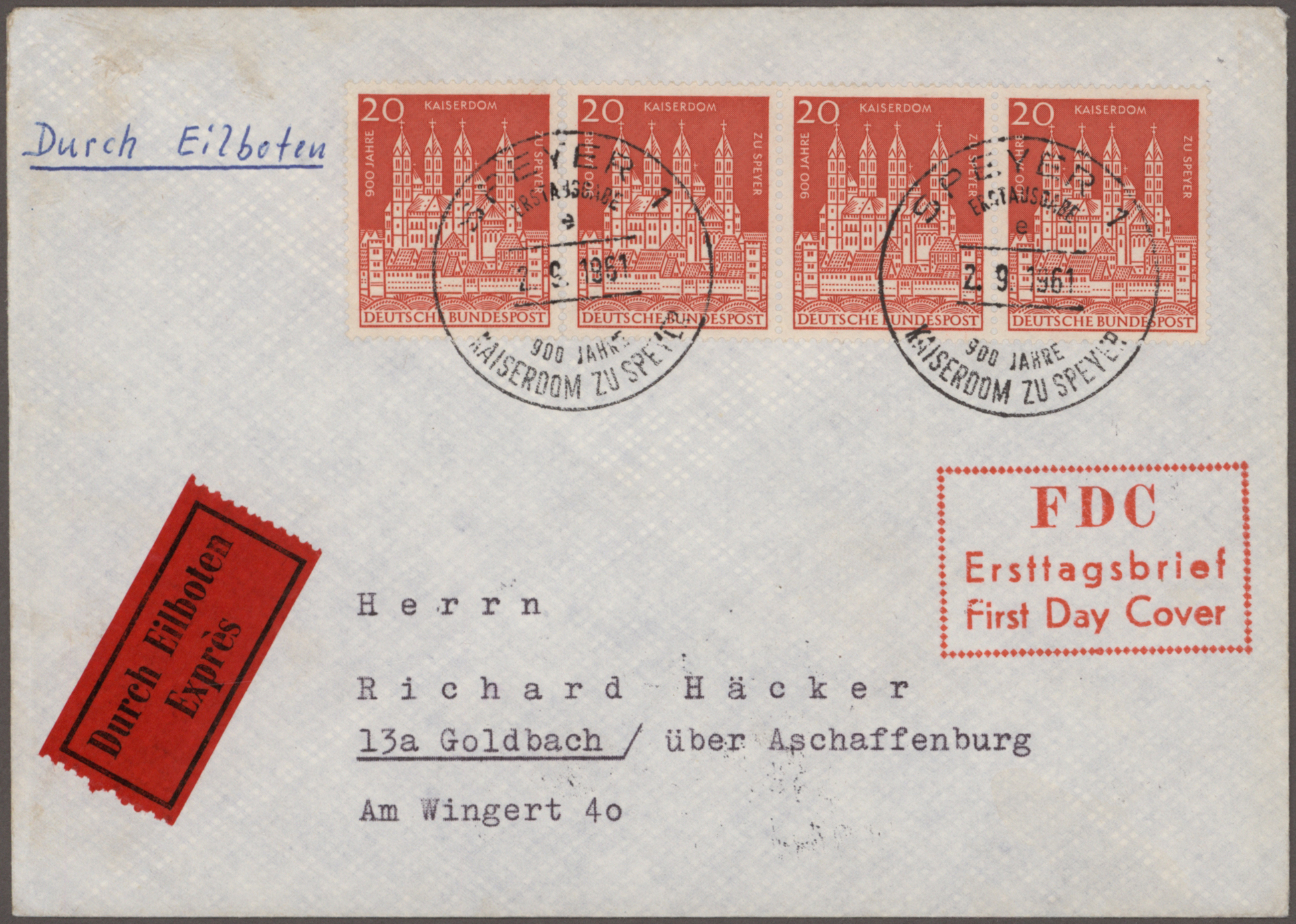Zwei Kartons mit 13 Sammlungen Bund/Berlin, dabei auch Heuss lumogen und lieg. WZ je **, dazu viele Eckrandstücke sowie zwei prall gefüllte Schuhkartons mit Ersttags- bzw. Sonderstempelbelegen und 3 Safe-Alben mit Bund-ETB sowie 5 Jahrbücher Bund.