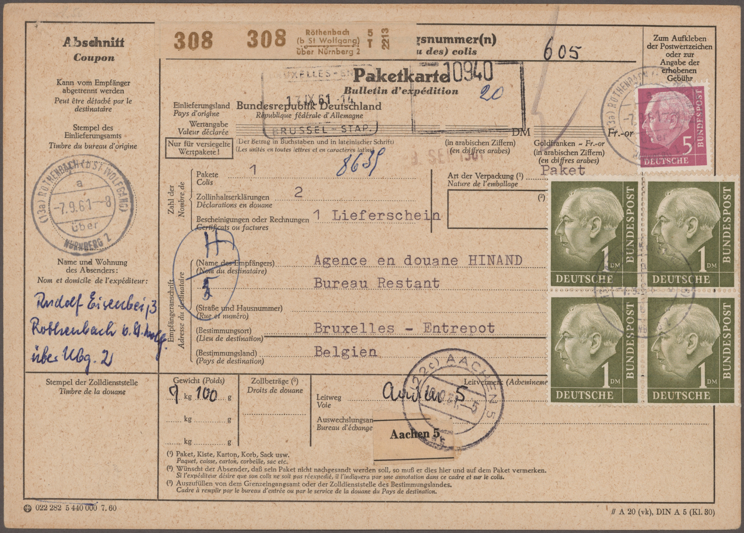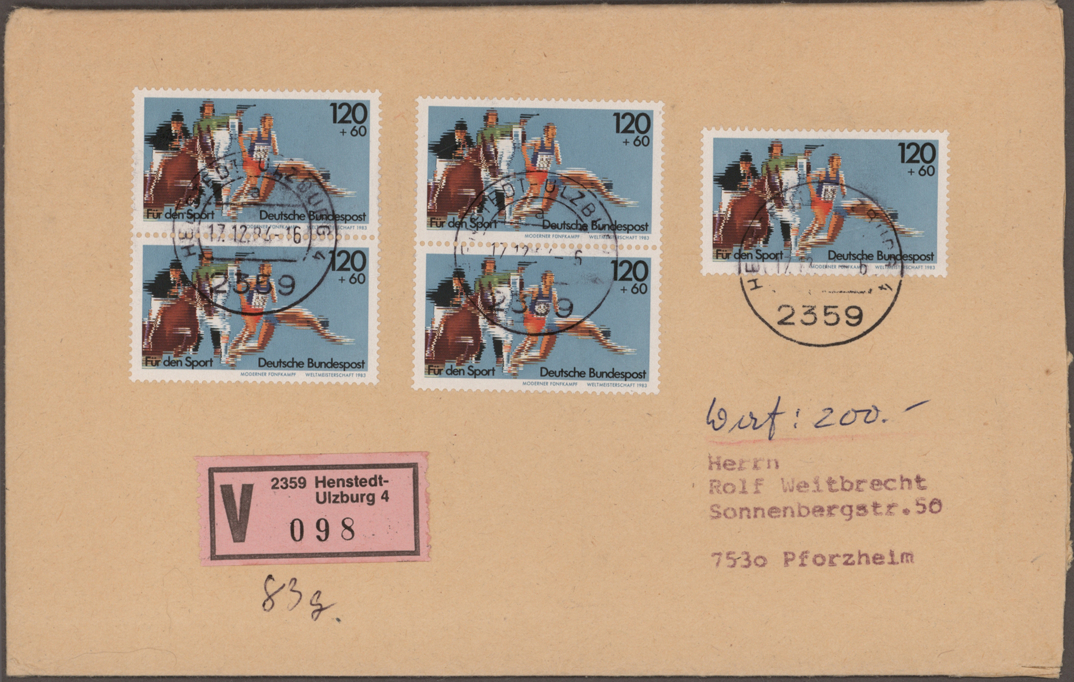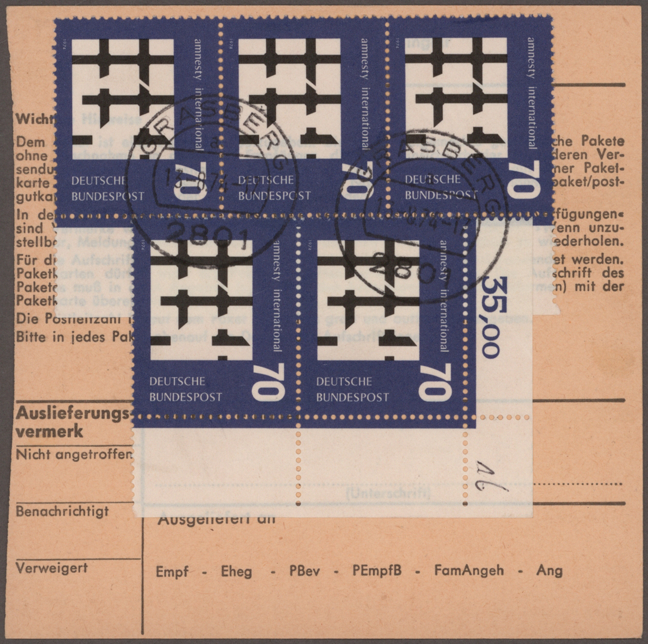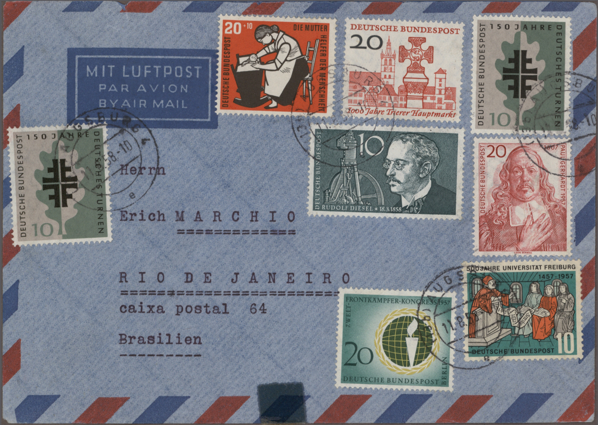 1948/2014 (ca.), interessanter Posten von ungefähr 110 Belegen Bund(ca. 97 St.) und Berlin(13 St.) in beschrifteten Loshüllen mit guten und besseren Einzel-, Mehrfach-, Vielfach- und Mischfrankaturen sowie vielen verschiedenen Verwendungen, Destinationen und Besonderheiten. Spannende Partie für den Spezialisten, auch zum Detaillieren geeignet!