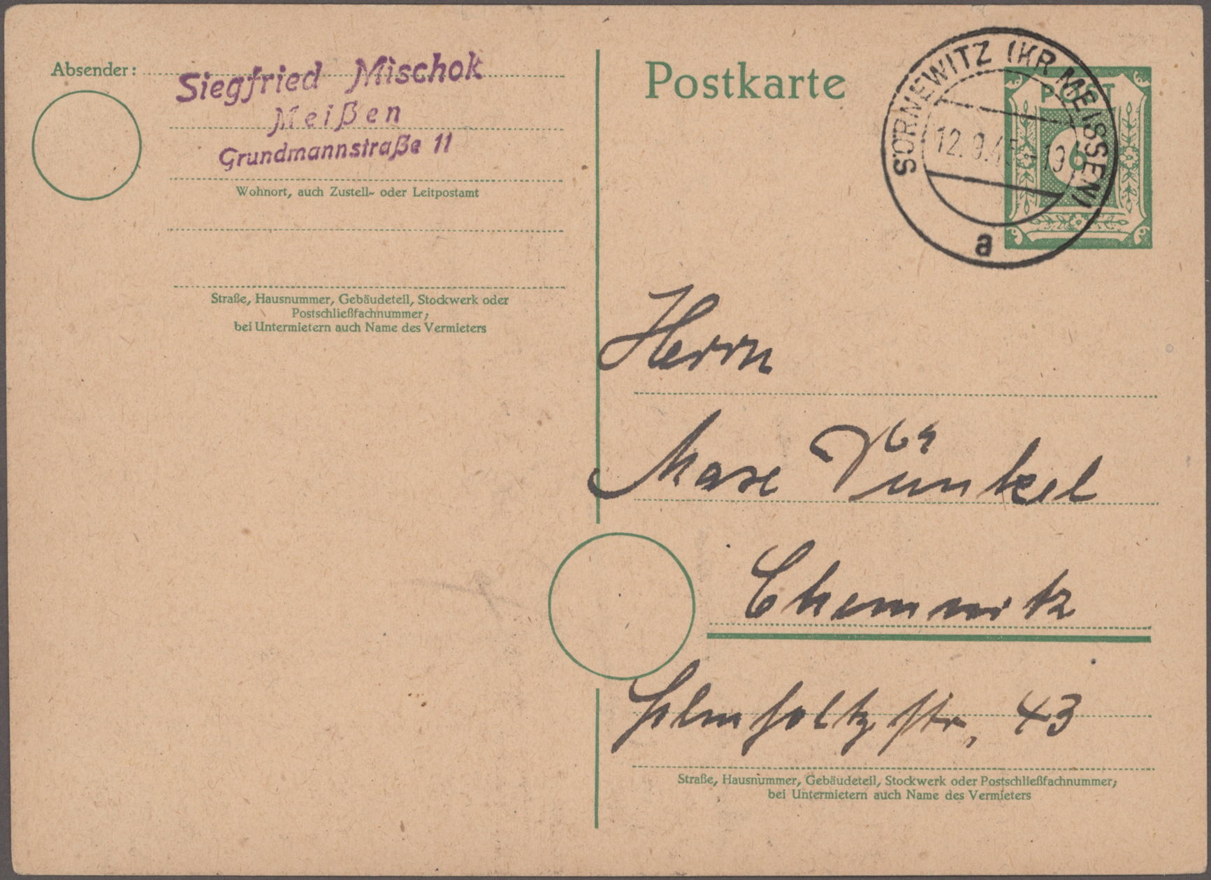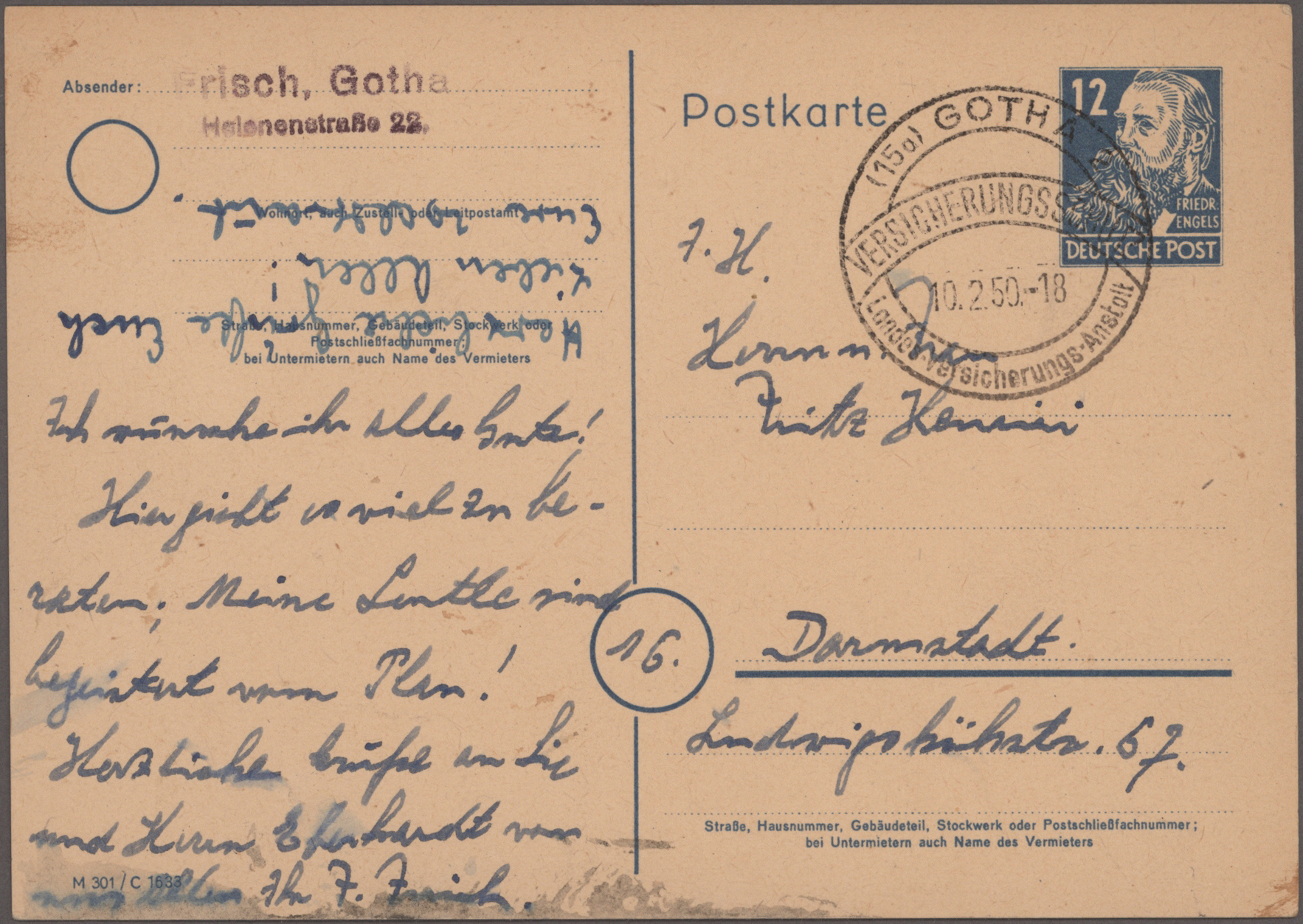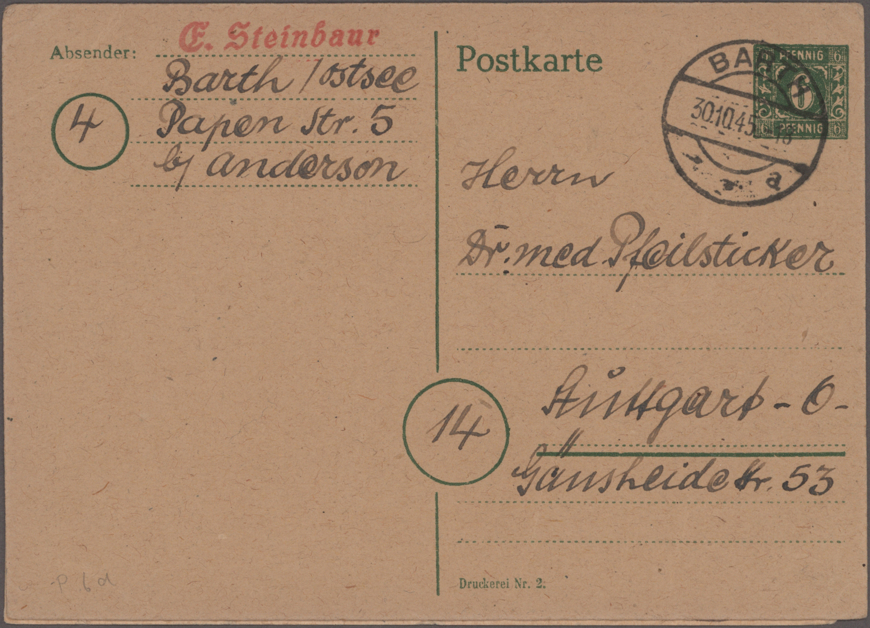 1945/1990, Partie von ca. 110 bedarfsgebrauchten Ganzsachenkarten ab ein wenig SBZ, alle mit ausführlichem Text, auch Doppelkarten und einige Privat-Ganzsachen, saubere Bedarfserhaltung.
