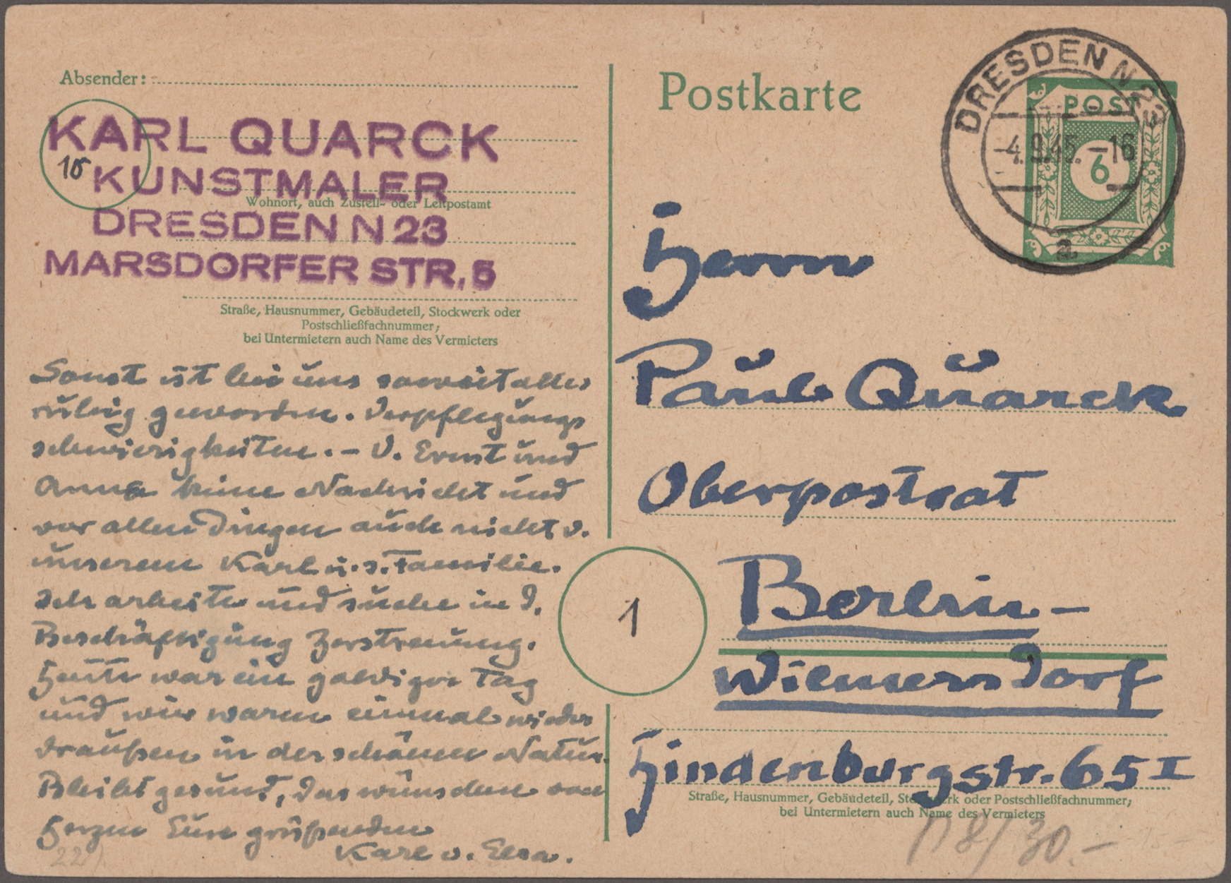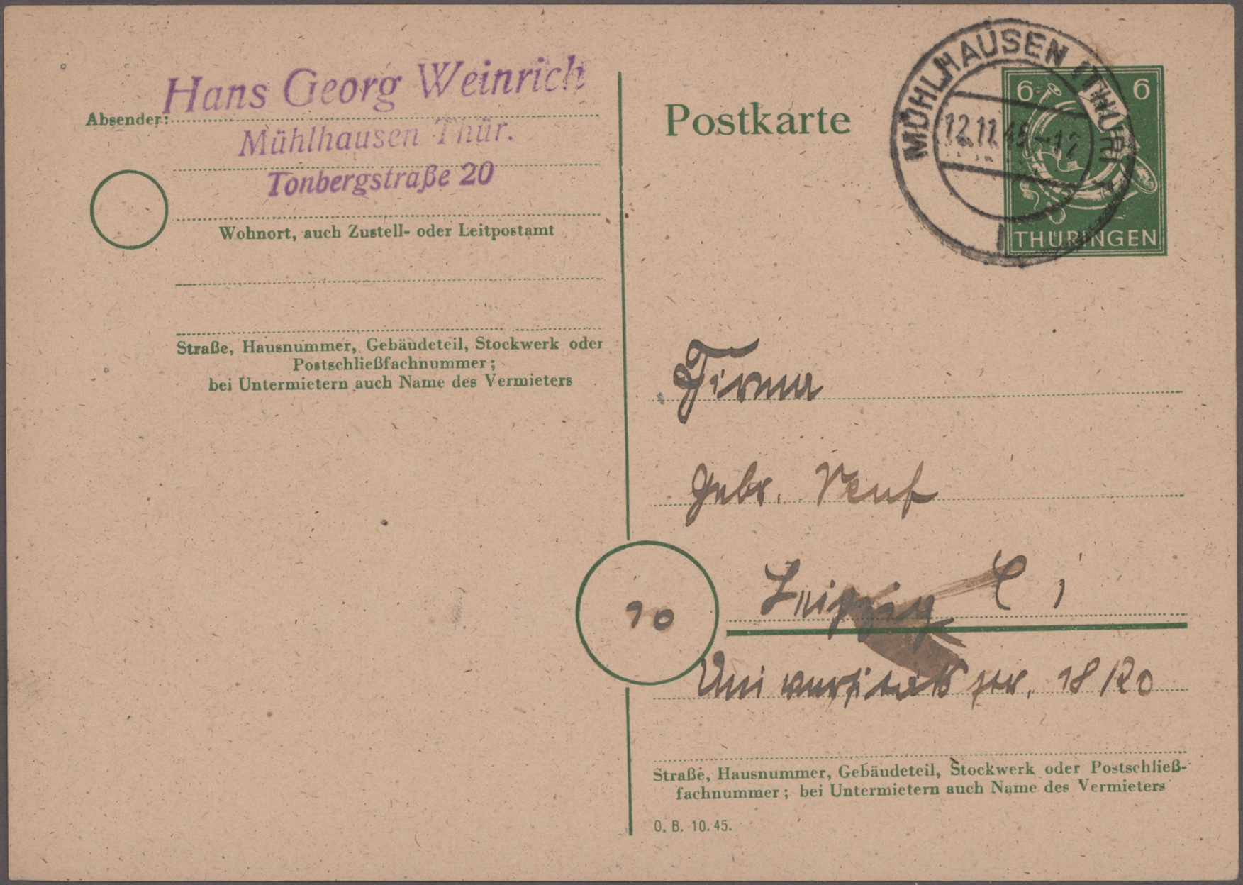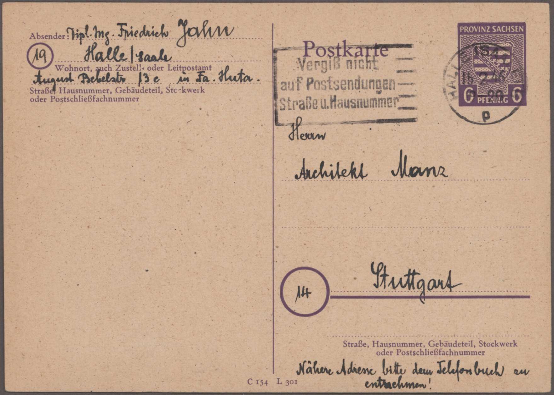 1945/1990, Partie von ca. 110 bedarfsgebrauchten Ganzsachenkarten ab ein wenig SBZ, alle mit ausführlichem Text, auch Doppelkarten und einige Privat-Ganzsachen, saubere Bedarfserhaltung.