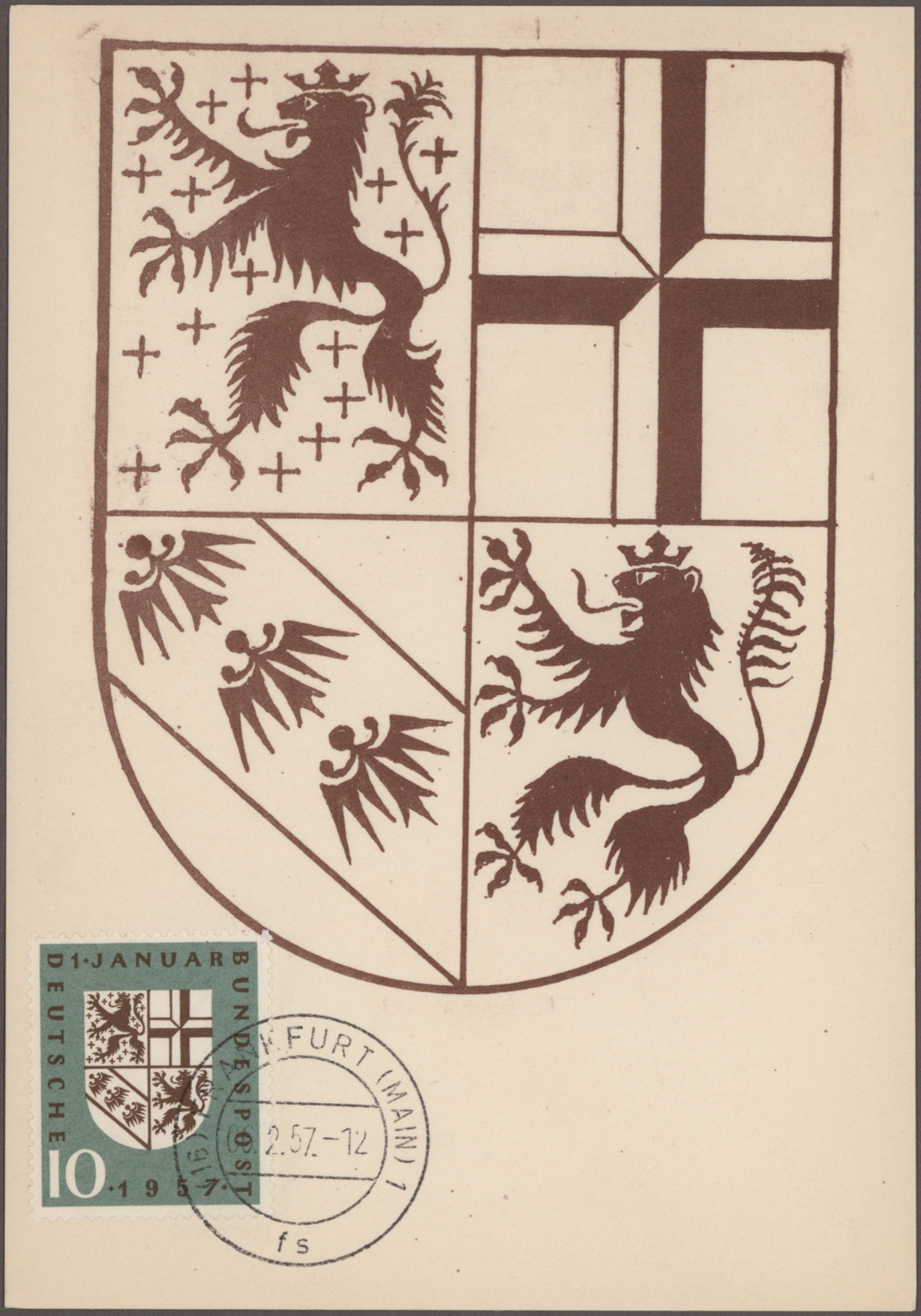1955/1959, Partie von 152 frühen Maximumkarten, dabei 45 Stück Berlin mit u.a. etlichen Karten Bauten/Stadtbilder sowie 107 Stück Bund.