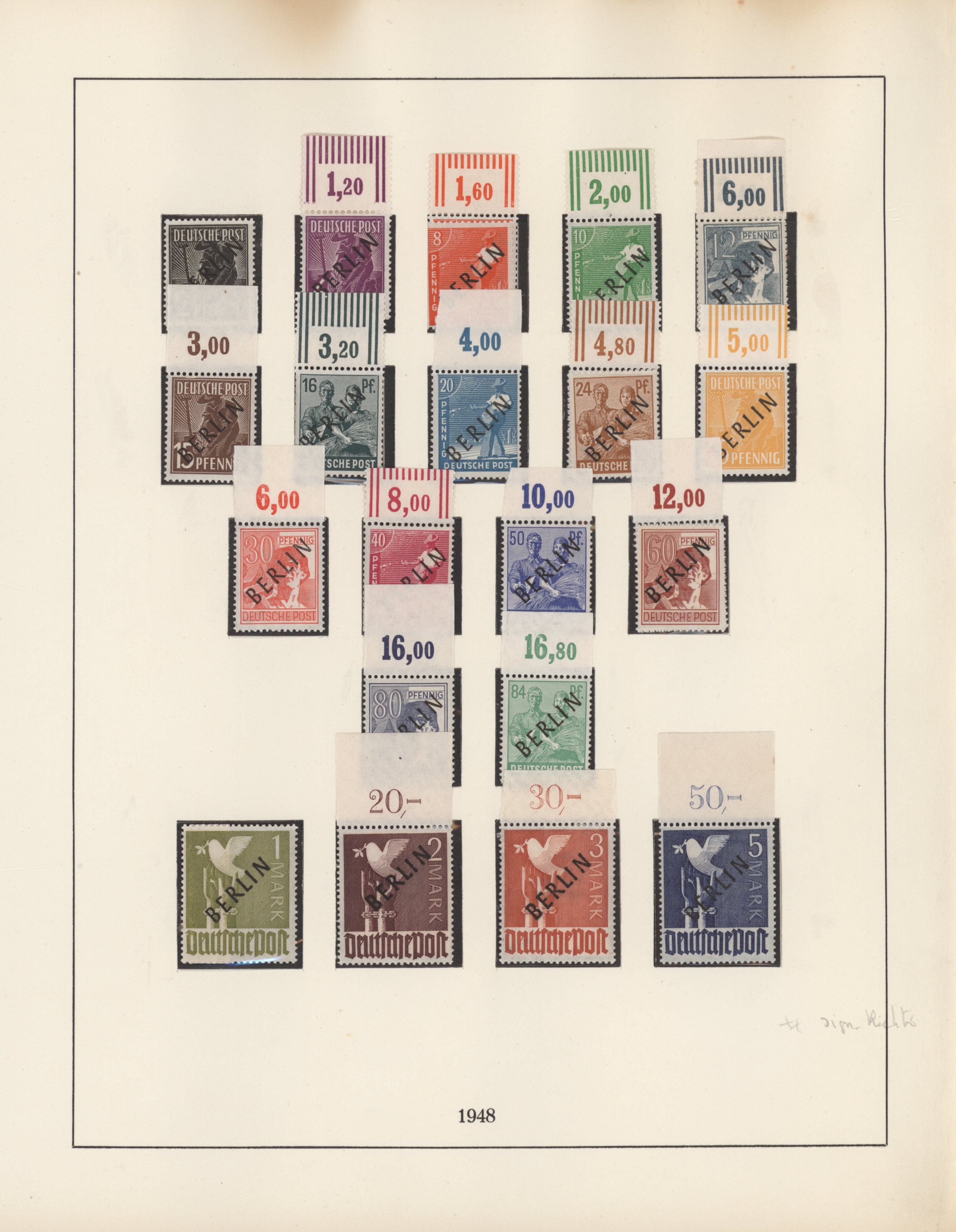 1948/1971, Sammlung Bund bis auf 15,25,40,70-90 Pf. Posthorn postfrisch komplett, Berlin bis auf wenige Werte komplett postfrisch, dabei Schwarzaufdruck meist vom Oberrand, sign. Richter, Rotaufdruck und Bl.1 sign. Schlegel, in 2 Vordruck-Alben