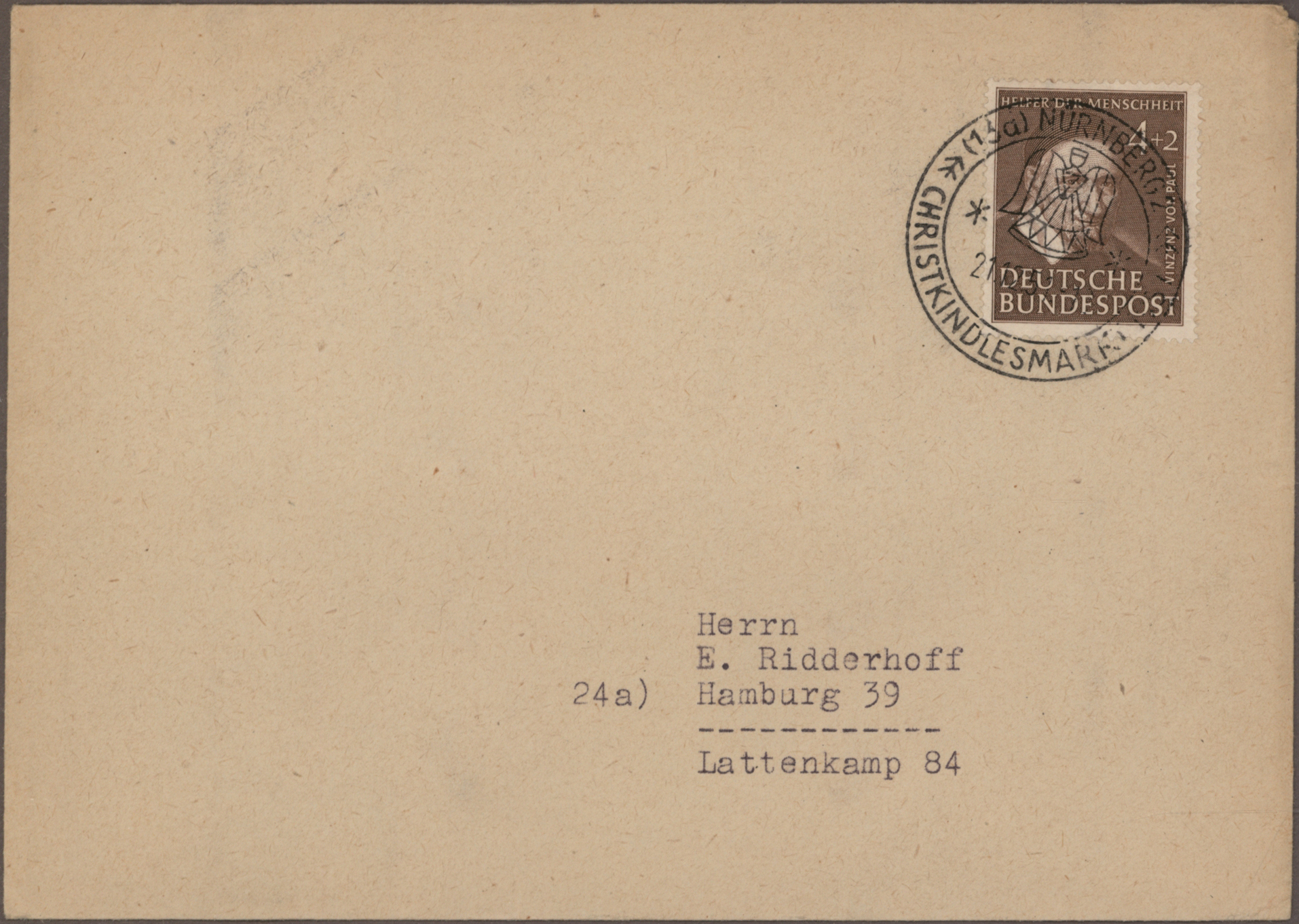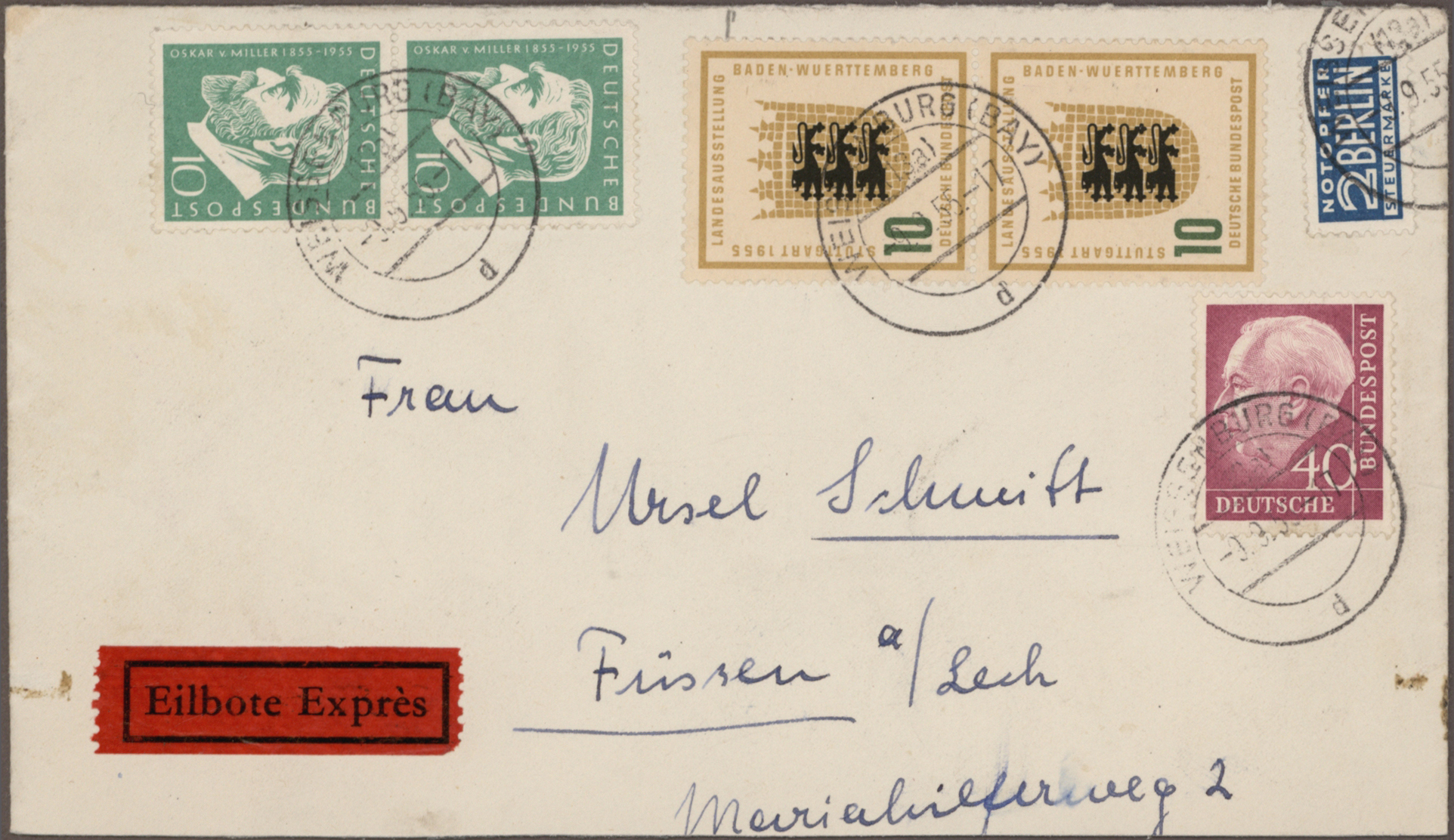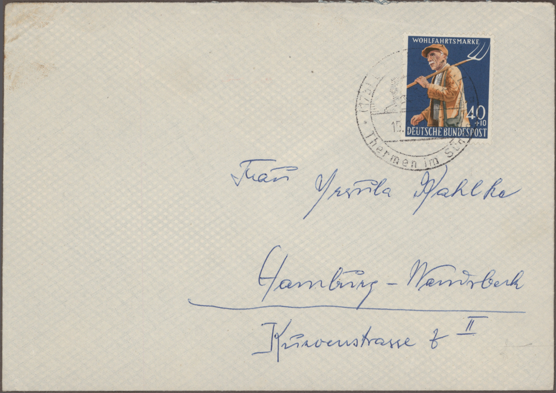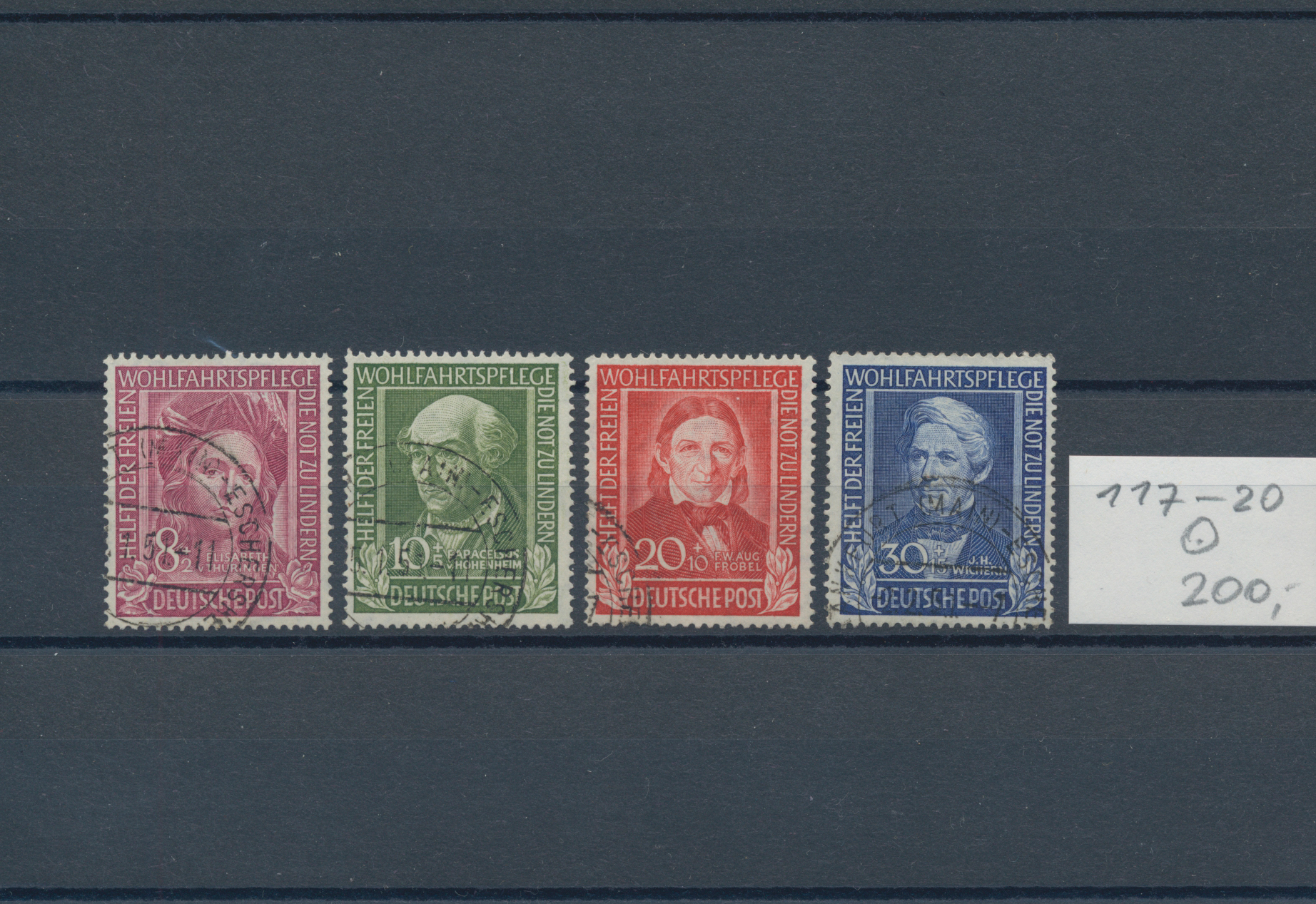 1949/59, kleine Partie auf Steckkarten mit besseren Sätzen in überwiegend gestempelter Erhaltung, dabei Bund 100 J. Briefmarken, Wohlfahrtssätze 1949, 52-55, Bach, dazu Berliner Frühwerte ab UPU ebenfalls überwiegend gestempelt.