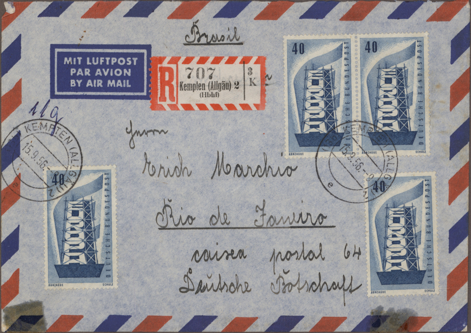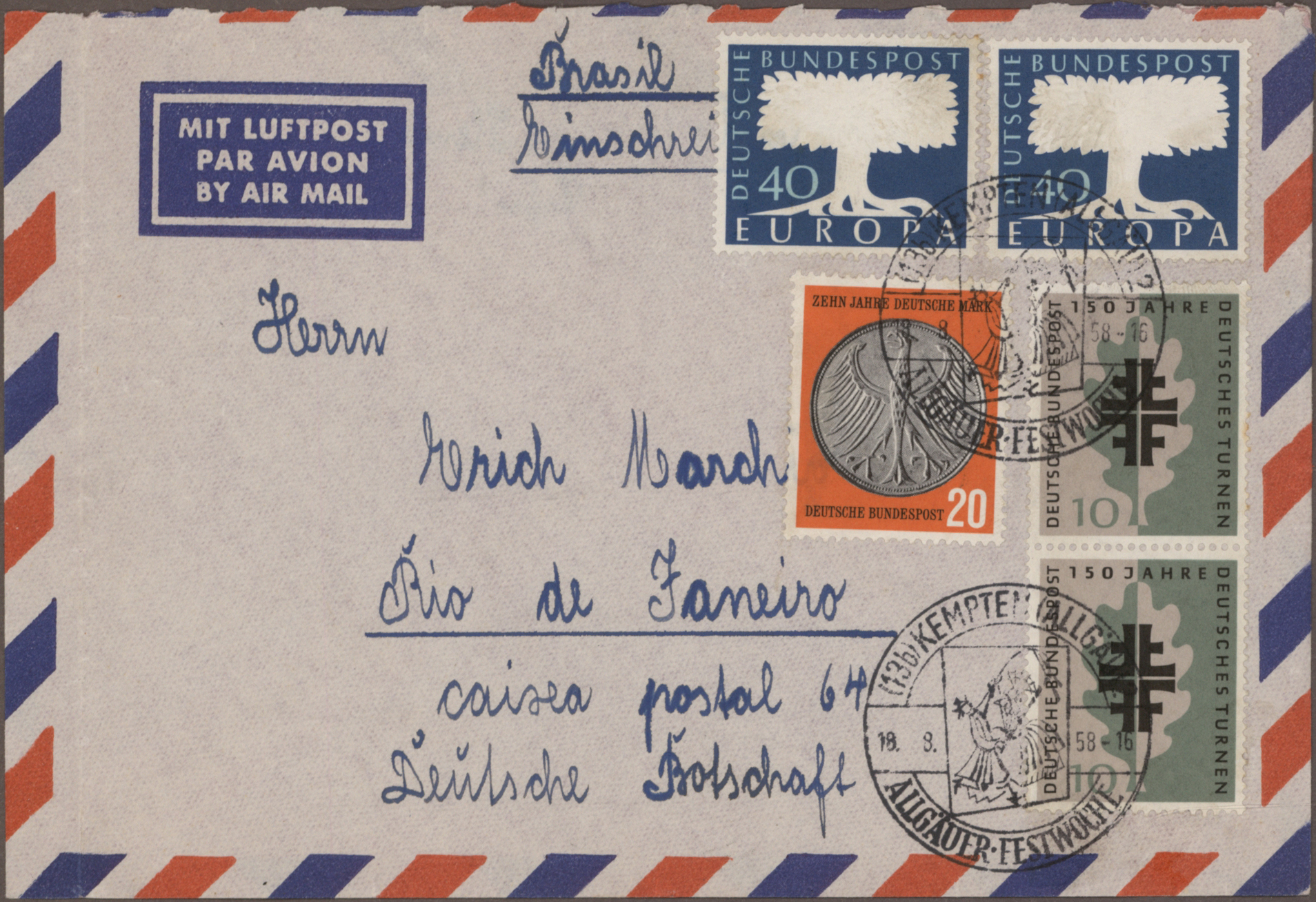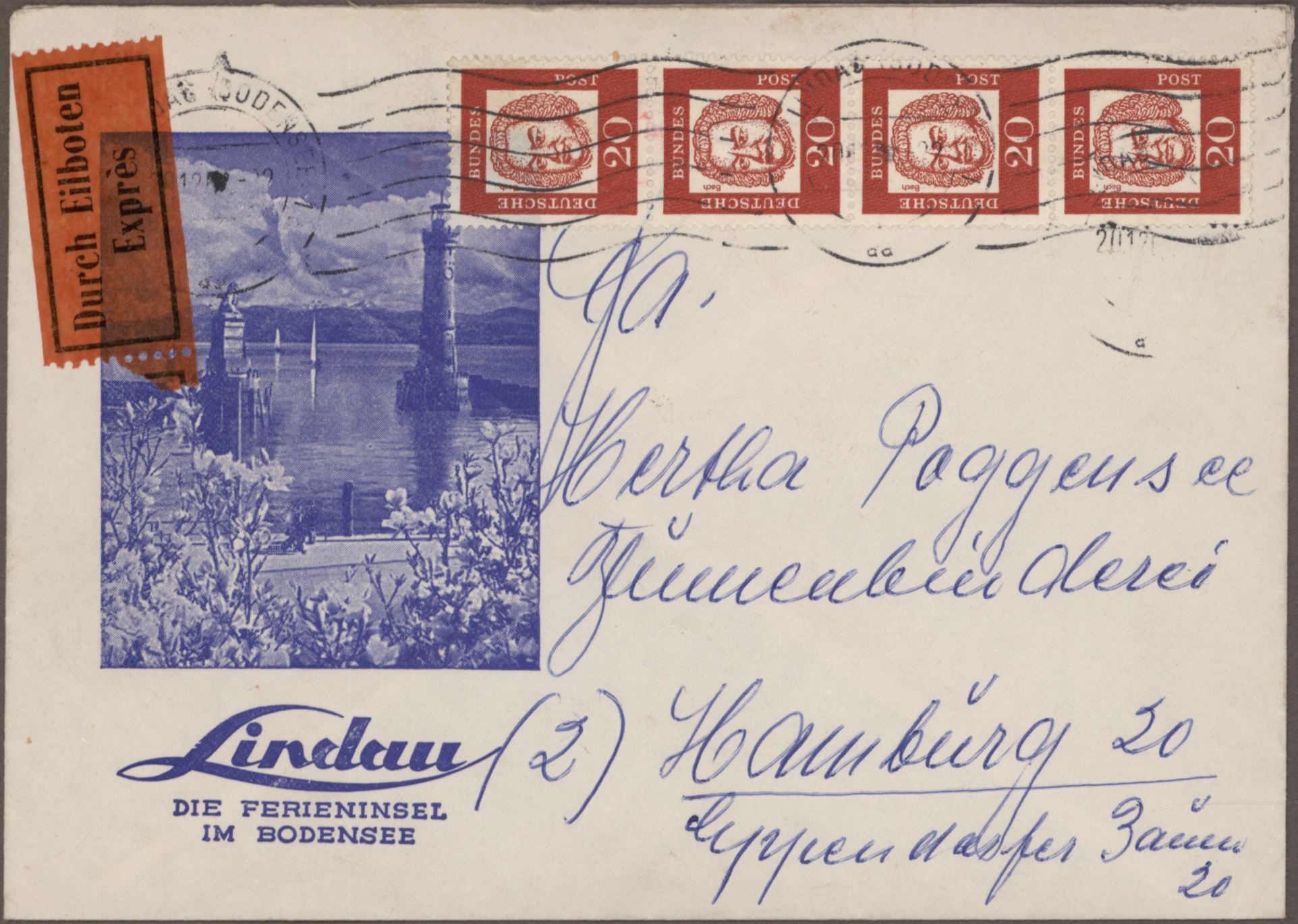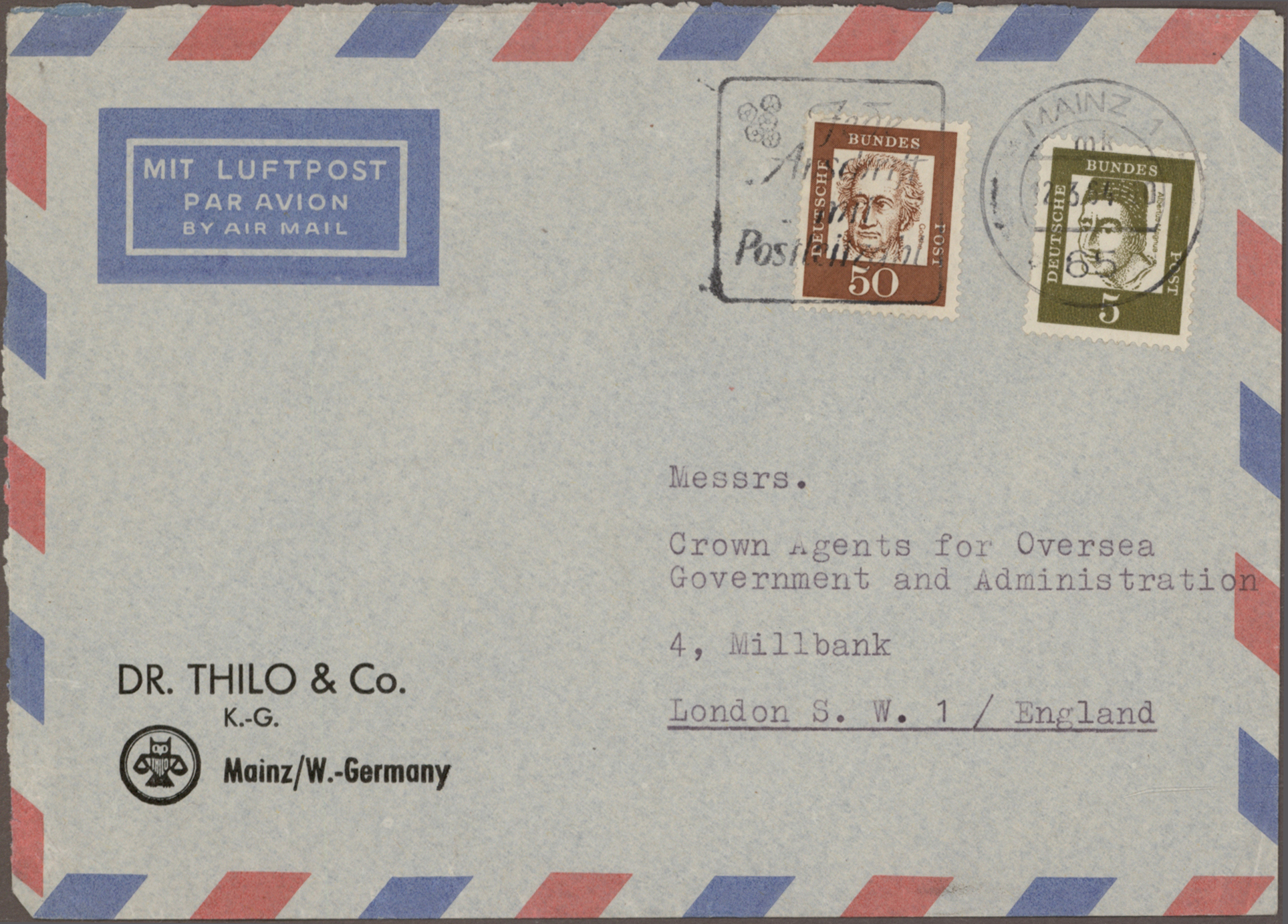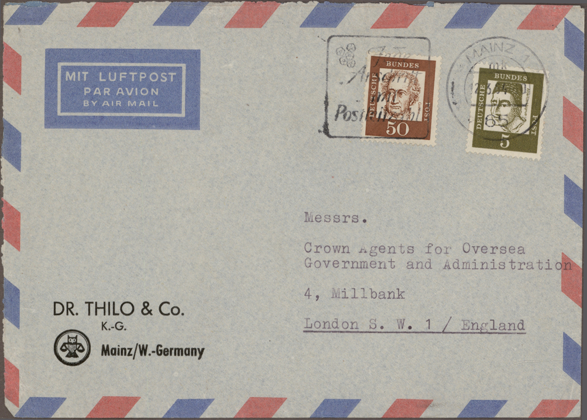 1948/1965, vielseitiger Posten von fast 400 Briefen und Karten, dabei etliche interessante Einzel-, Mehrfach- und Mischfrankaturen, Post nach Übersee, Verwendungsformen, Randstücke, usw.