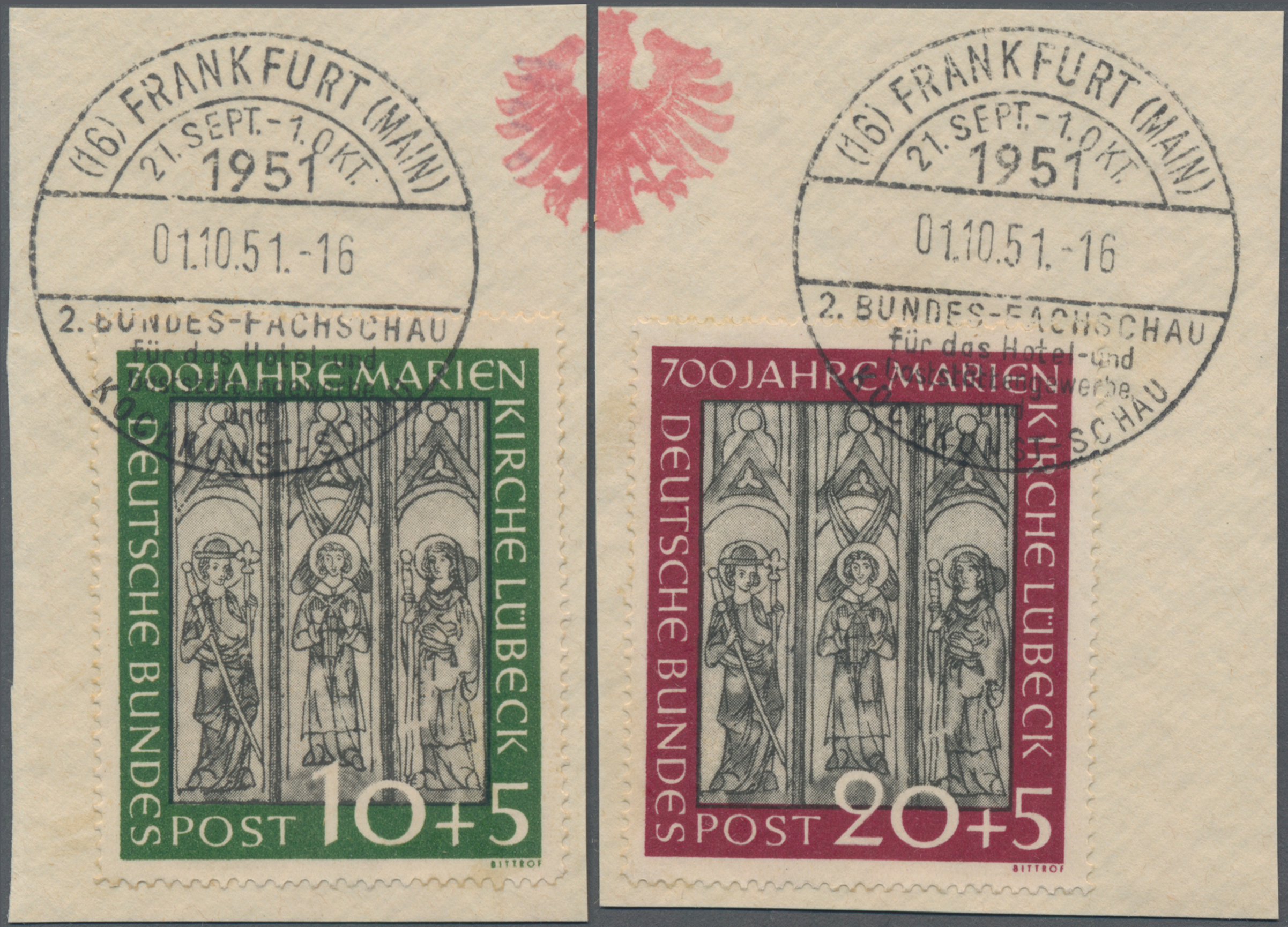 1951, Marienkirche und Glocke links auf herrlichen Briefstücken mit idealer Entwertung durch SST.