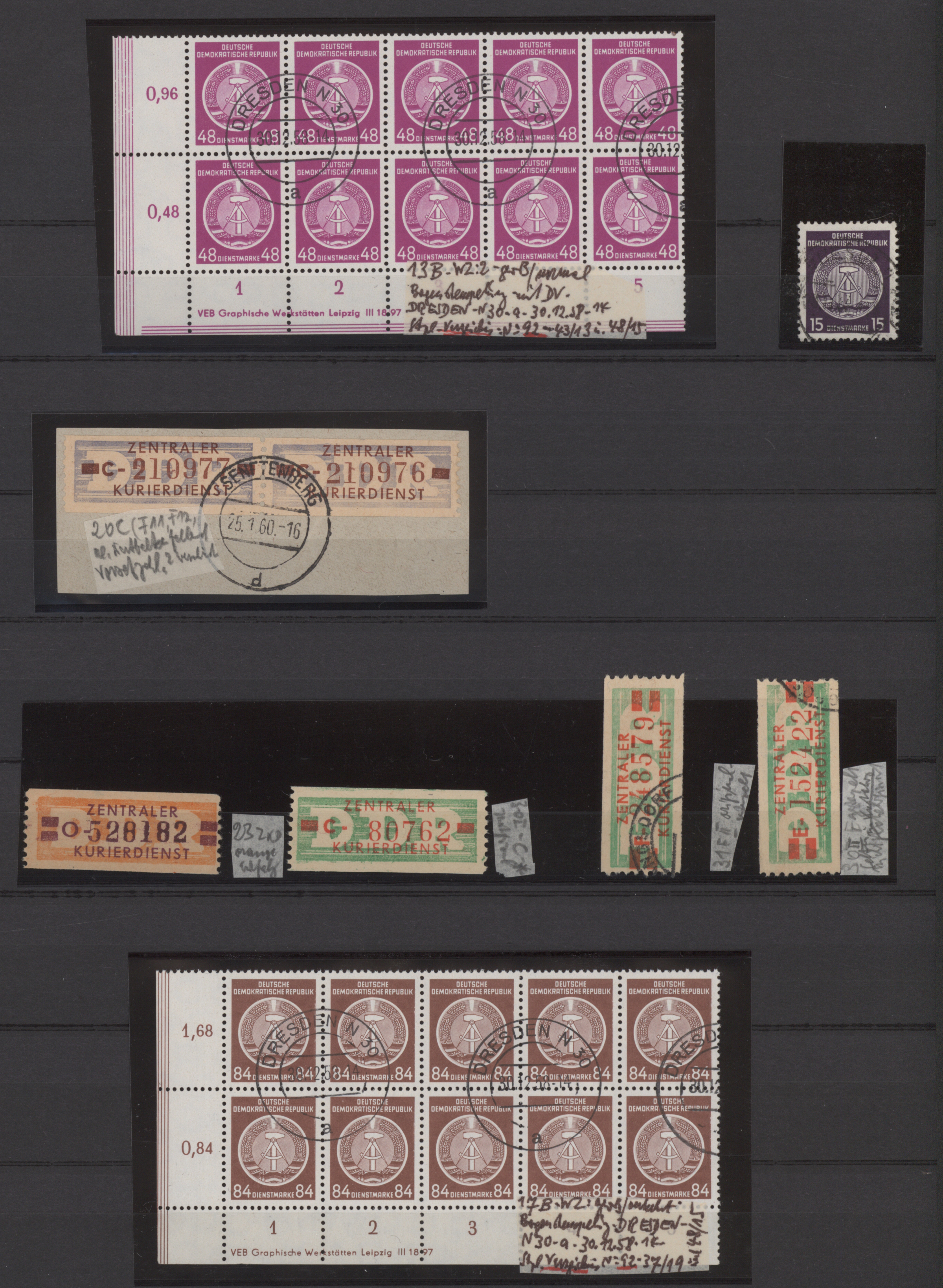 1963/1968, gestempelter Bestand auf Stecktafeln mit zwei Marken Laufkontrollzettel und sonst alles VD und ZU, dabei VD1 (9), VD3 (88), ZU2 (109).