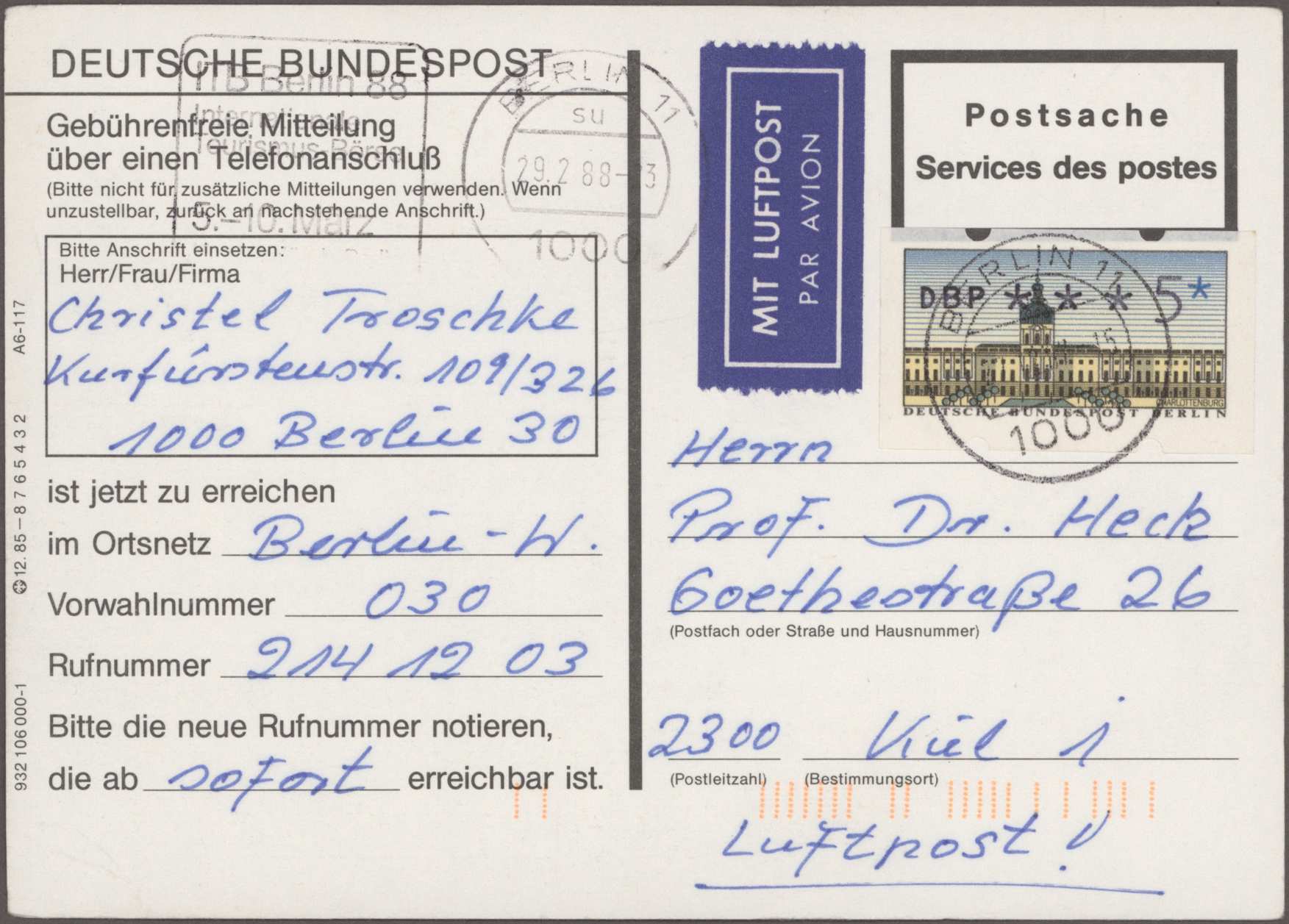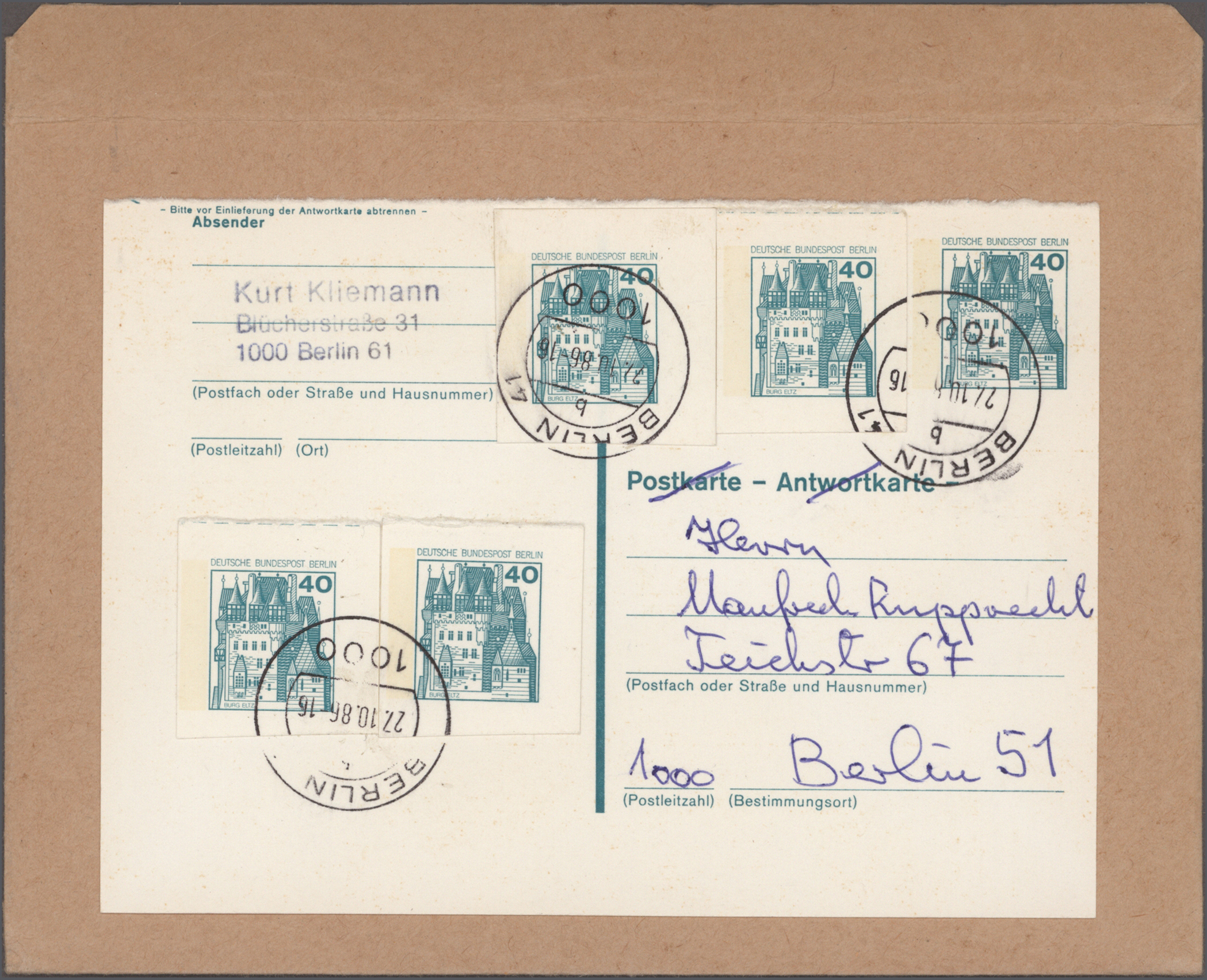 Großer Kurfürst, Verwendungsformen, Freistempler, ATM, aus dem Ausland zurückgelaufene Antwortkarte P7A mit Zusatzfrankatur, ferner auch 32 Letzttagsbelege kleinerer Berliner Postämter vom 30.10.93. Ein sehr interessantes Los mit etlichen kleinen