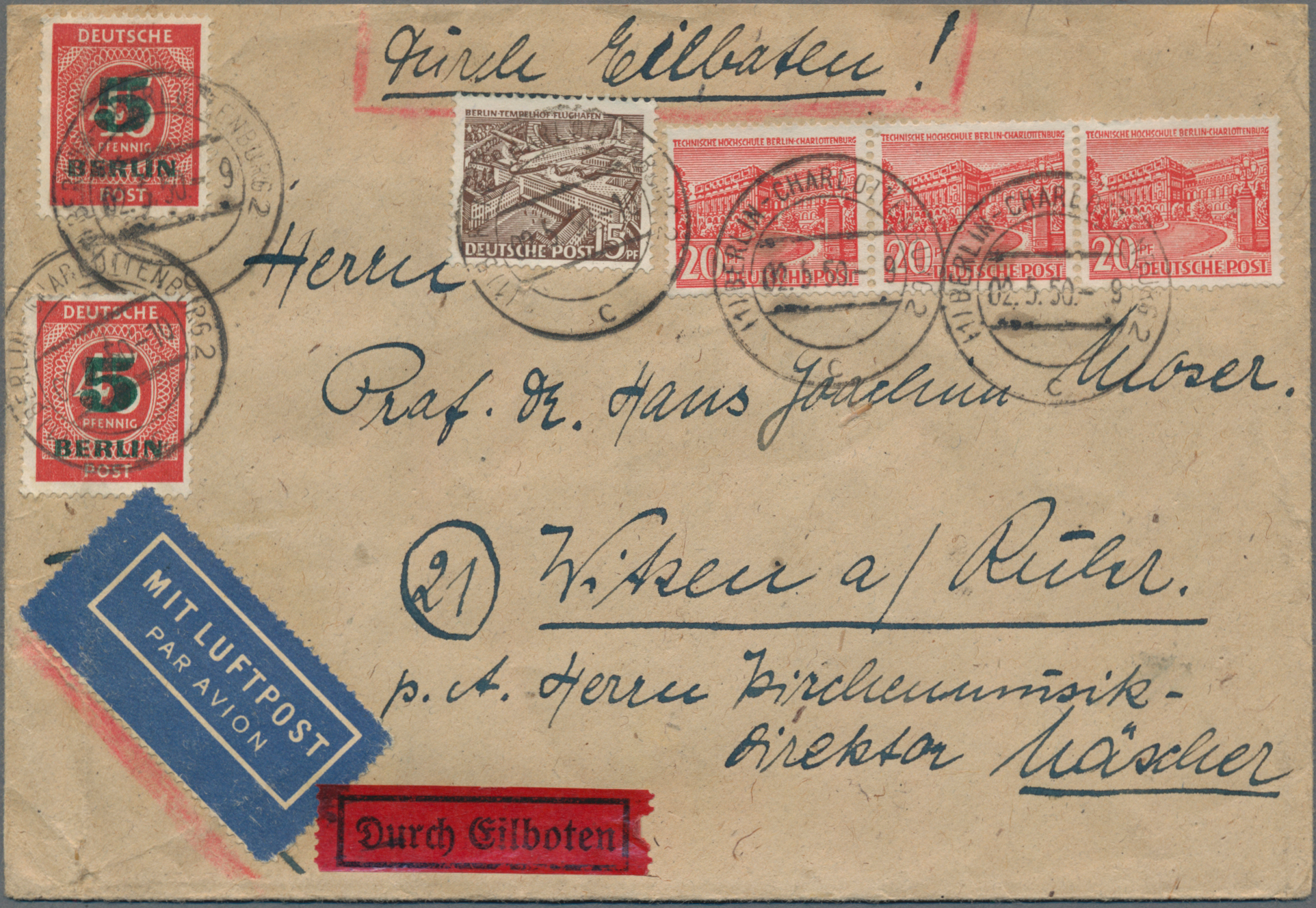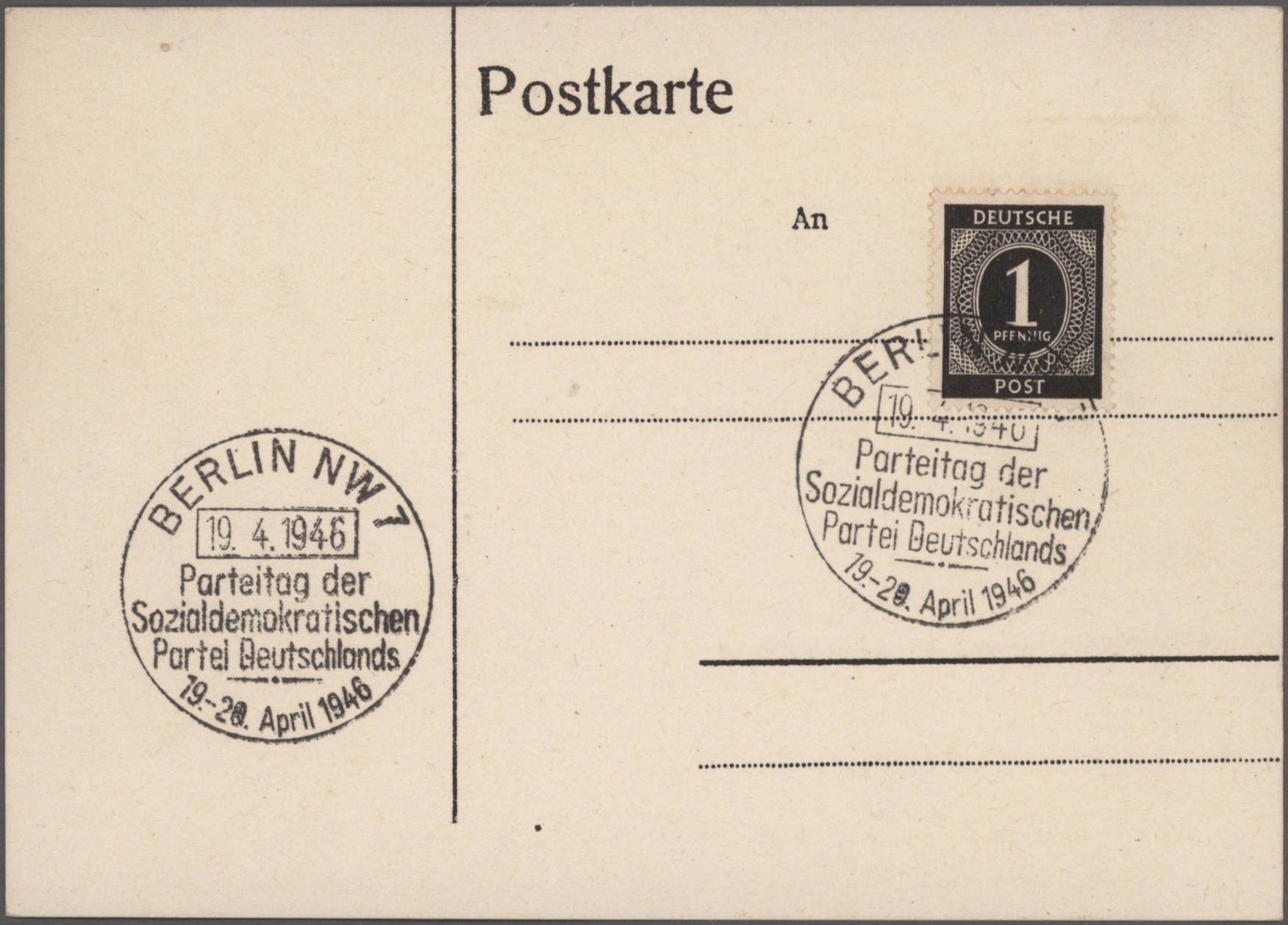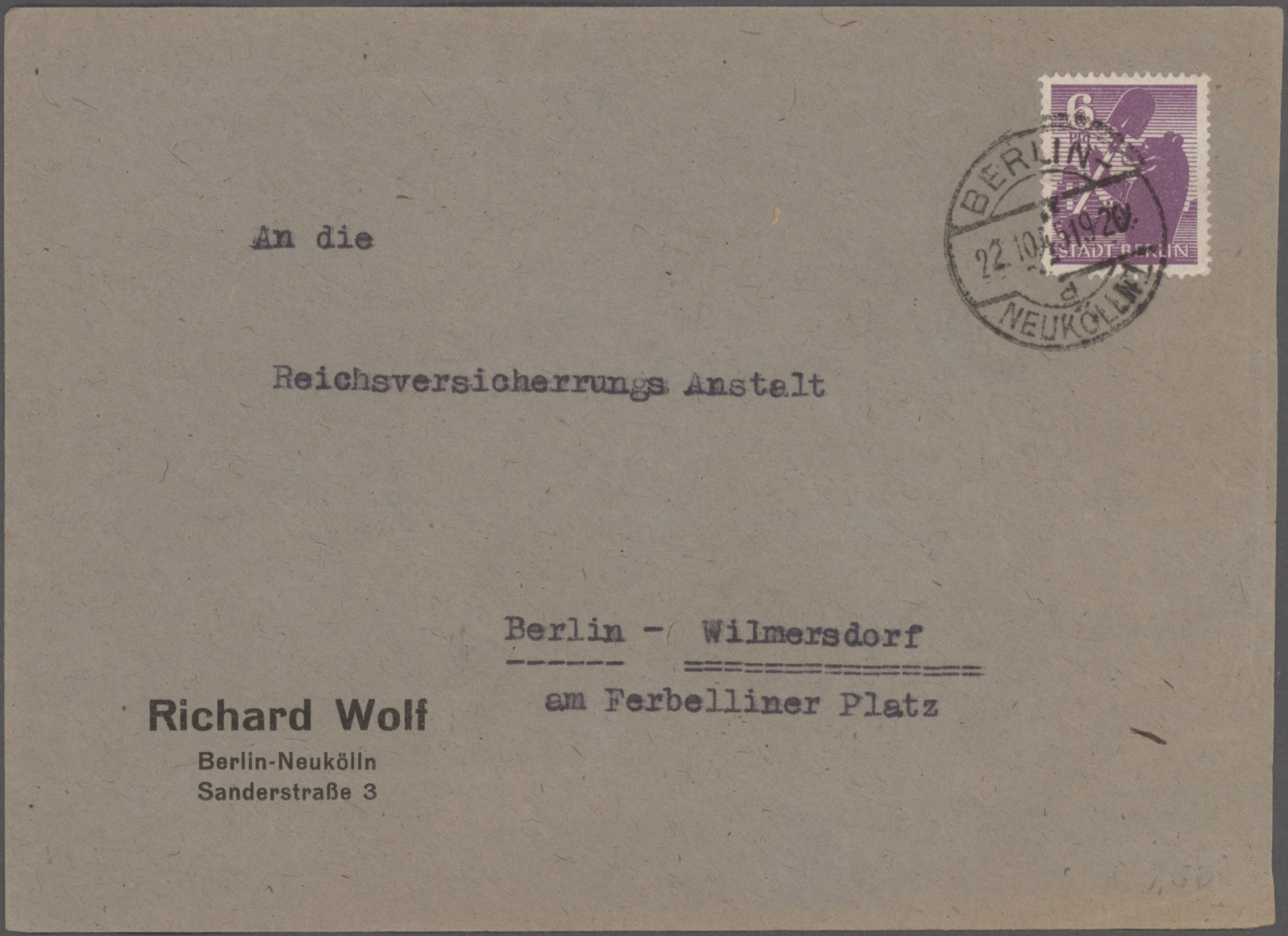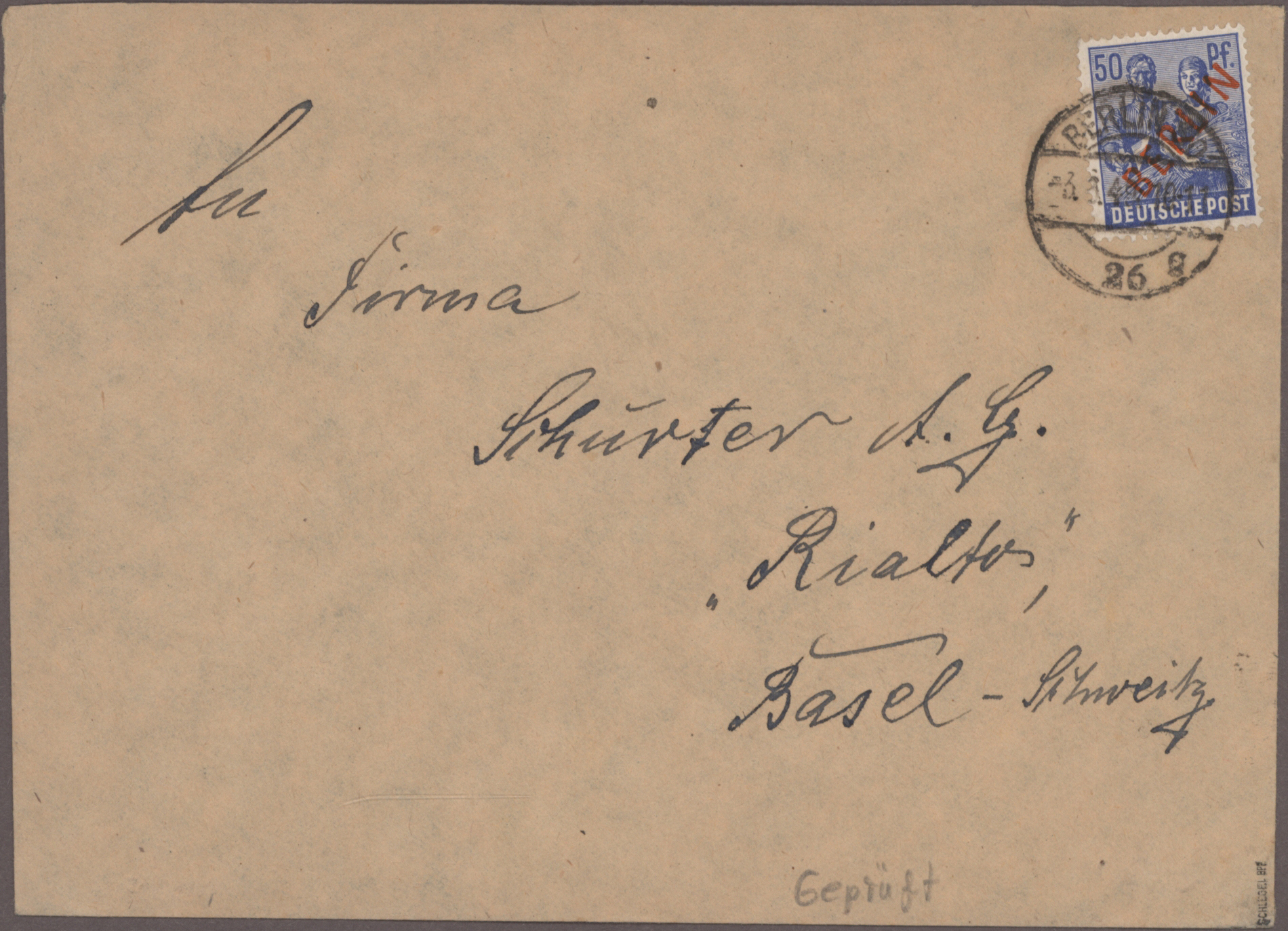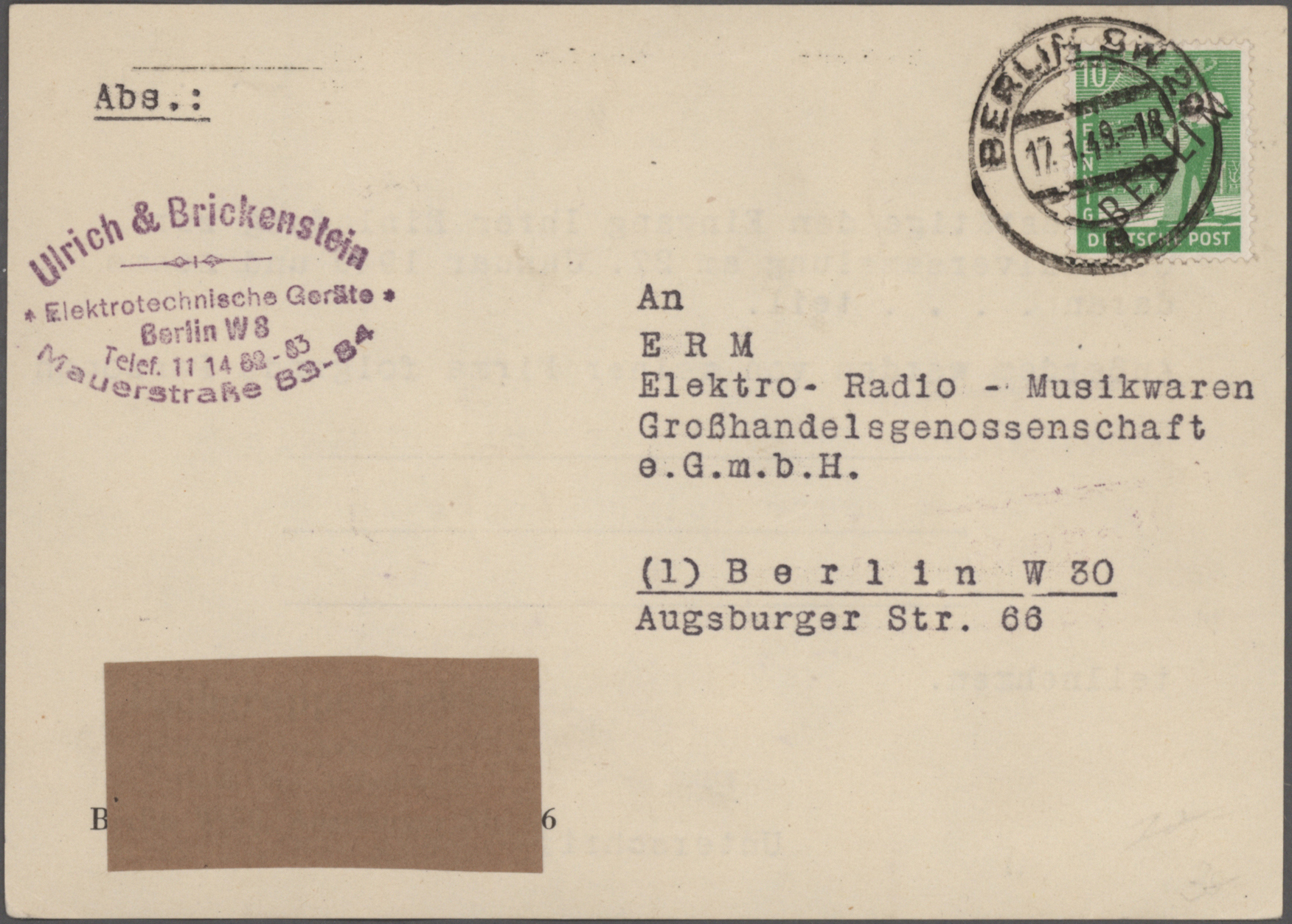 u.a. gutem Teil SBZ Bären-Ausgabe, Kontrollrats-Ausgaben als Berlin-Vorläufer (u.a. zwei komplette Serien Ziffern je gest. "BERLIN-TEGEL"), reguläre Ausgaben mit besseren Frankaturen wie Glocken, Lortzing, aber auch ein Oberrandstück 20 Pfg.
