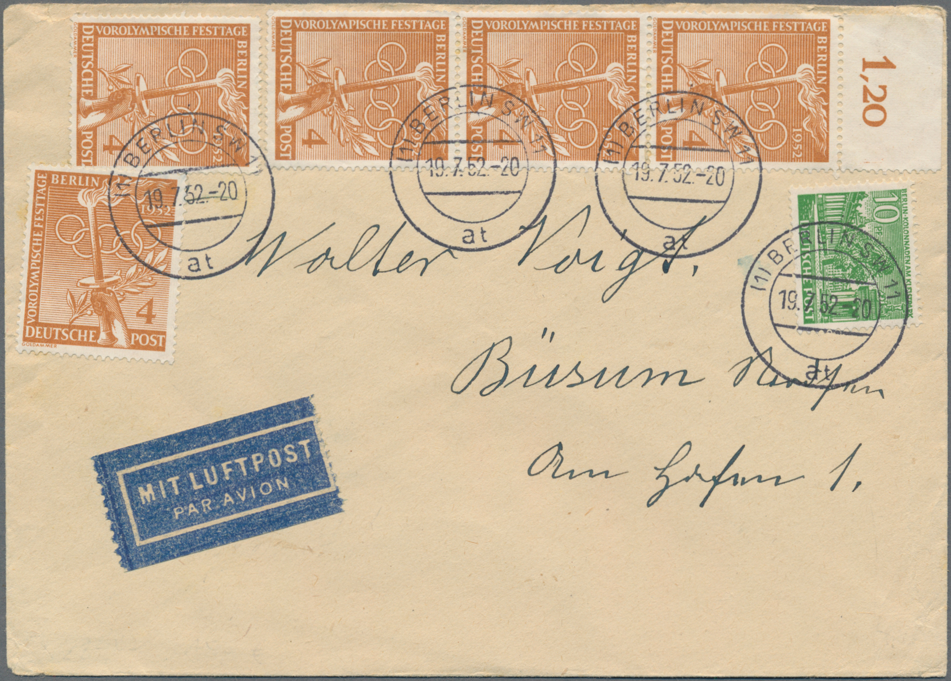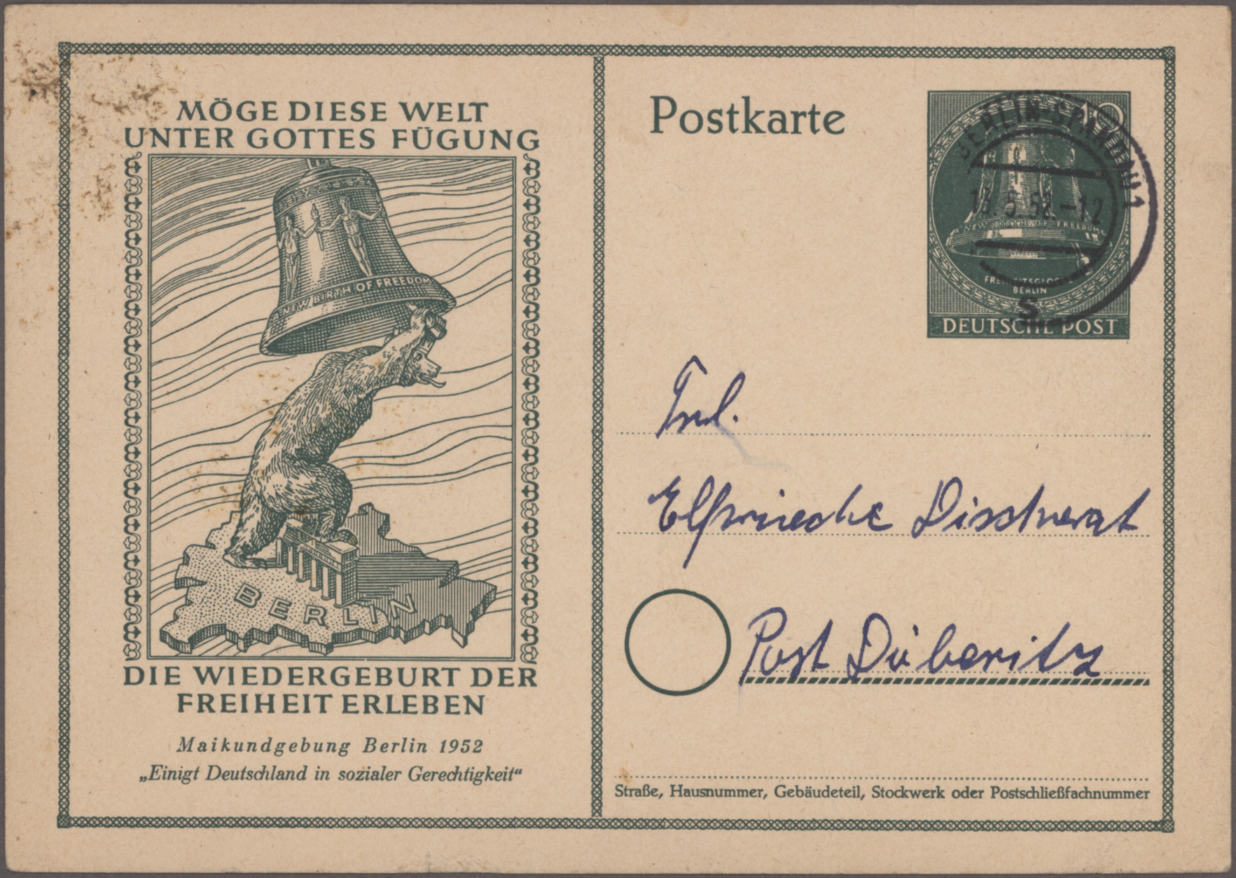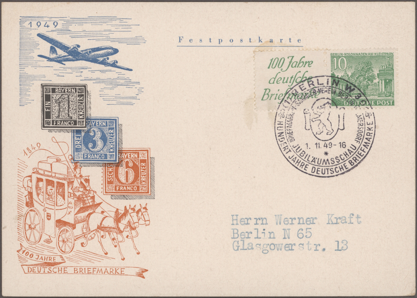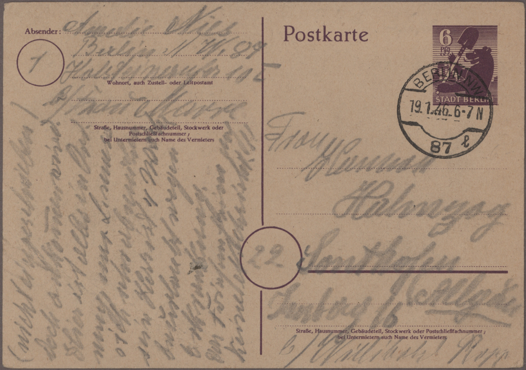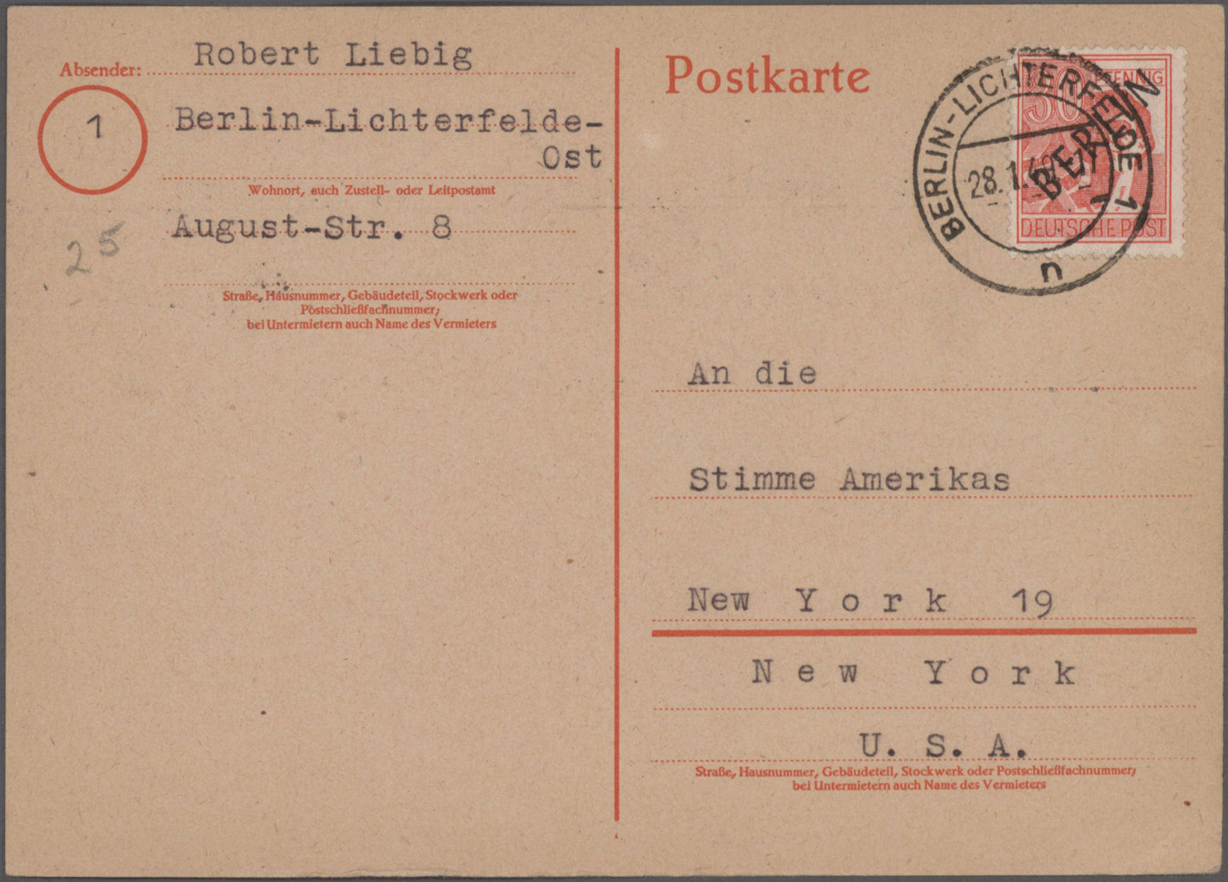 u.a. gutem Teil SBZ Bären-Ausgabe, Kontrollrats-Ausgaben als Berlin-Vorläufer (u.a. zwei komplette Serien Ziffern je gest. "BERLIN-TEGEL"), reguläre Ausgaben mit besseren Frankaturen wie Glocken, Lortzing, aber auch ein Oberrandstück 20 Pfg.