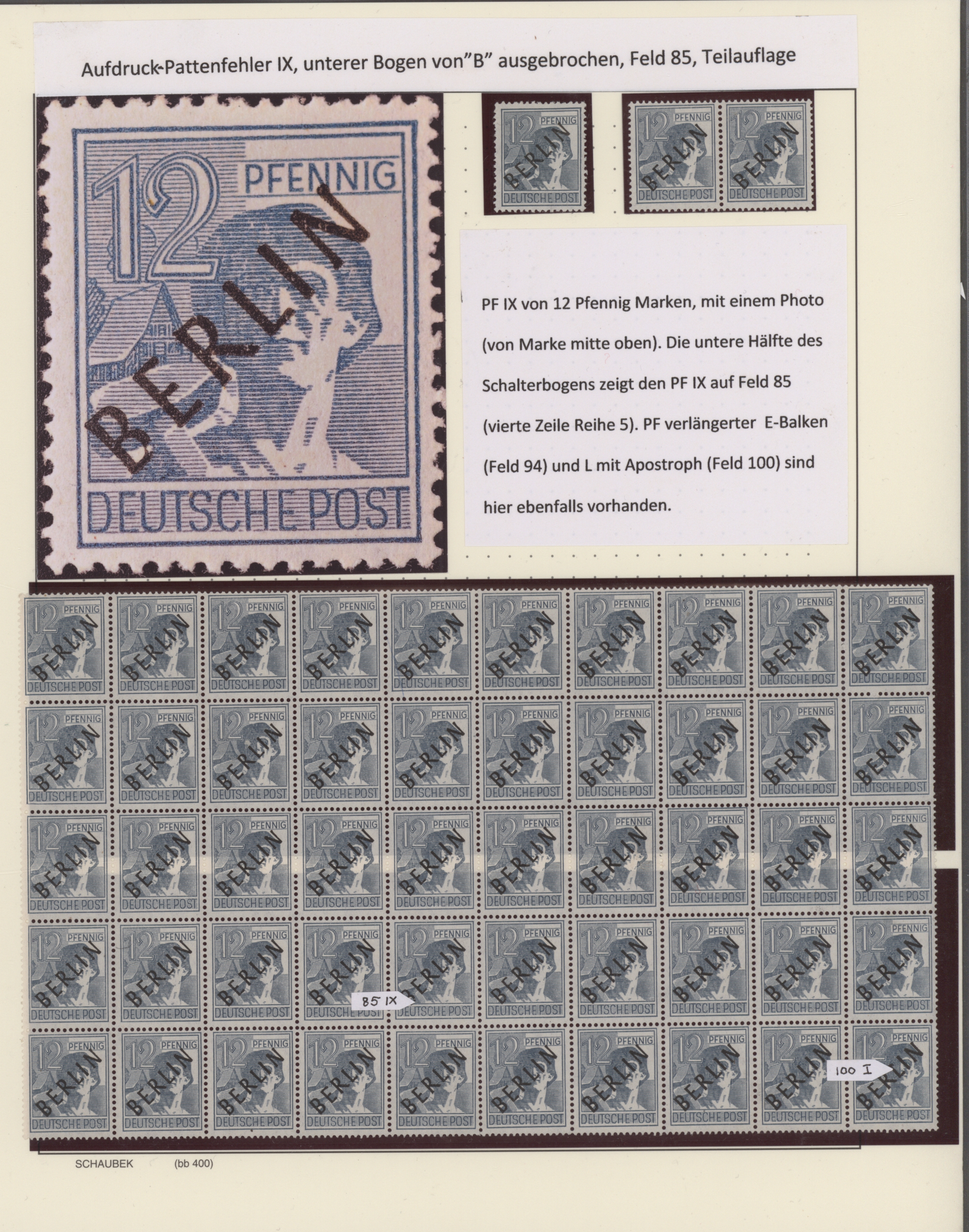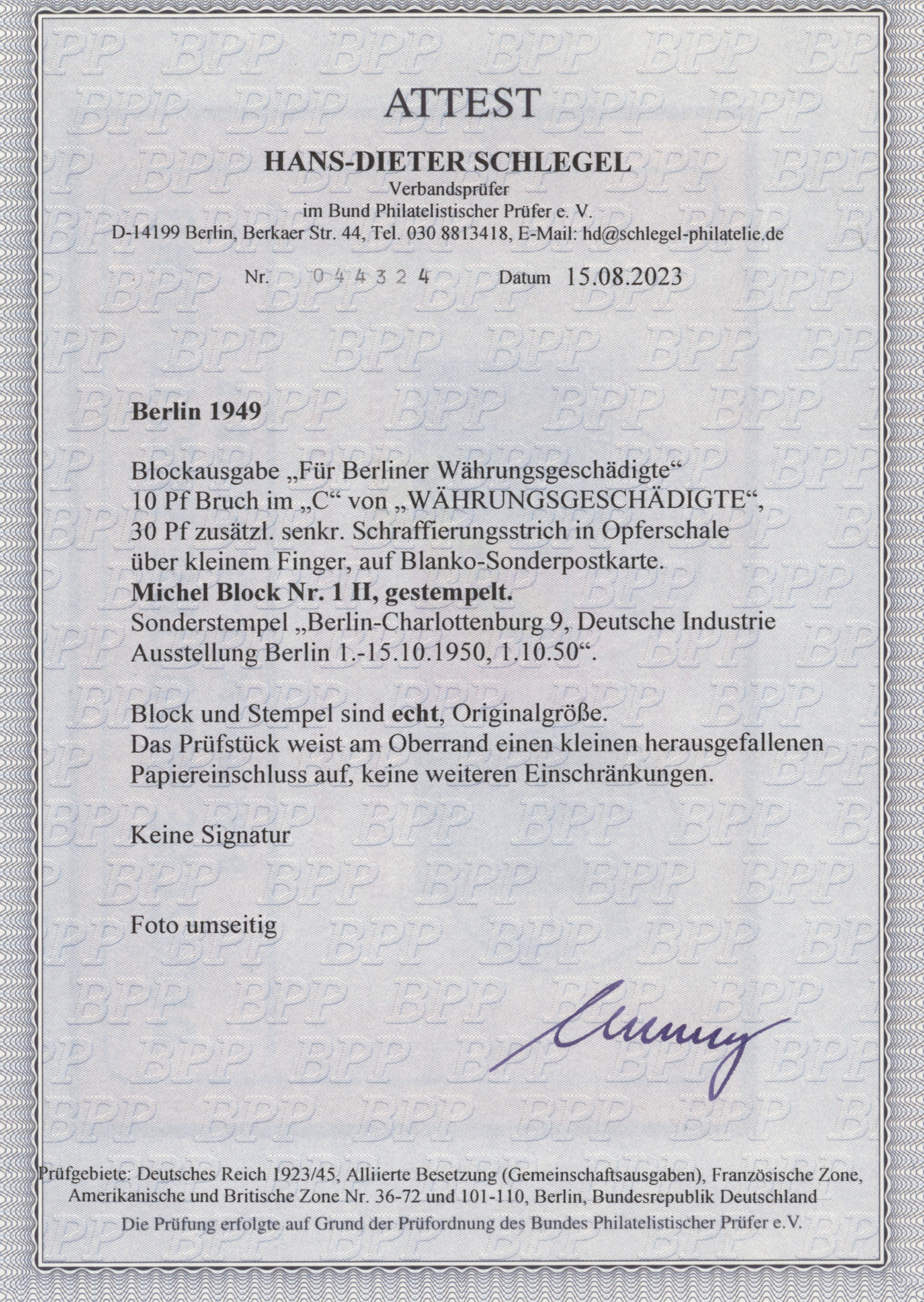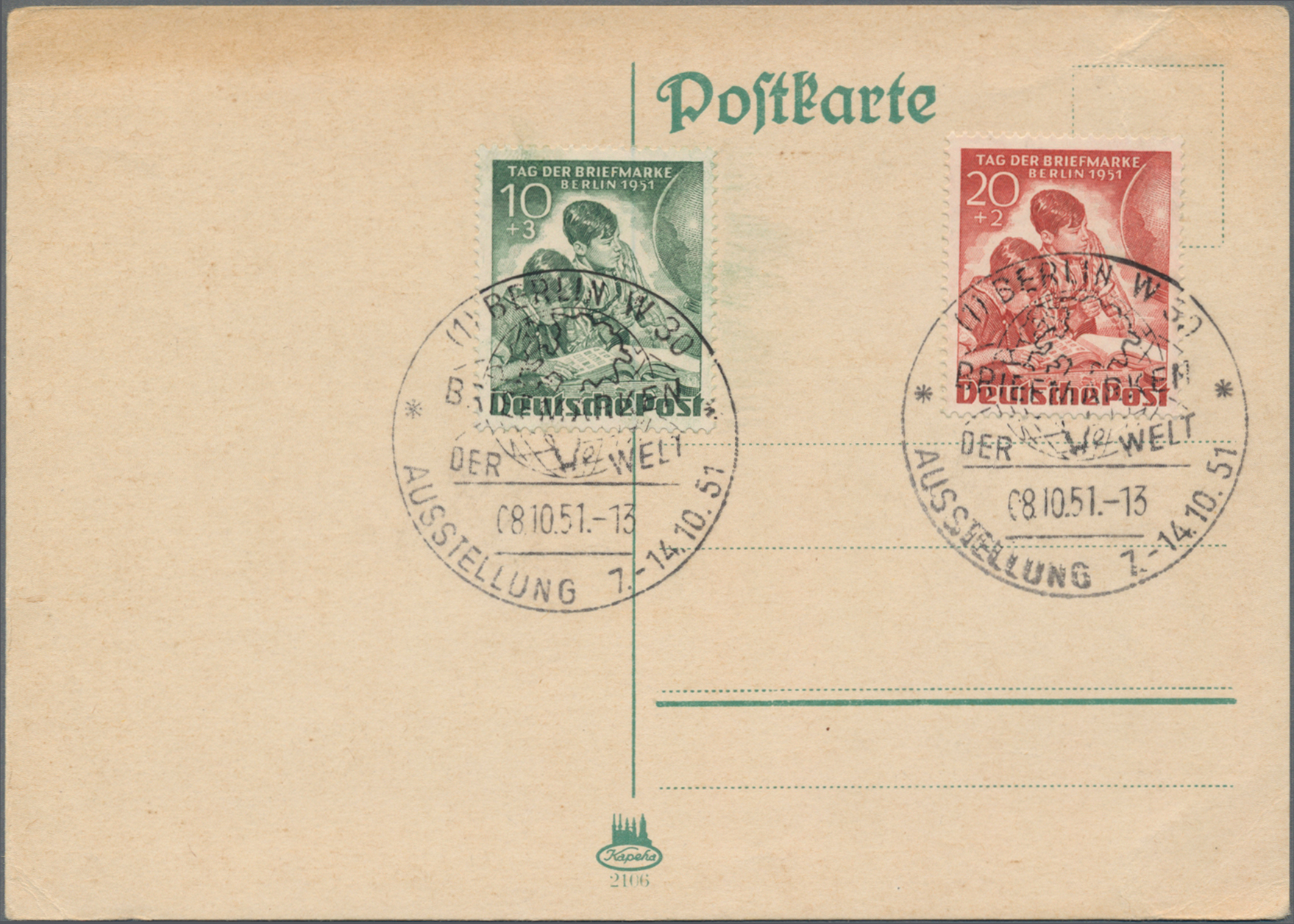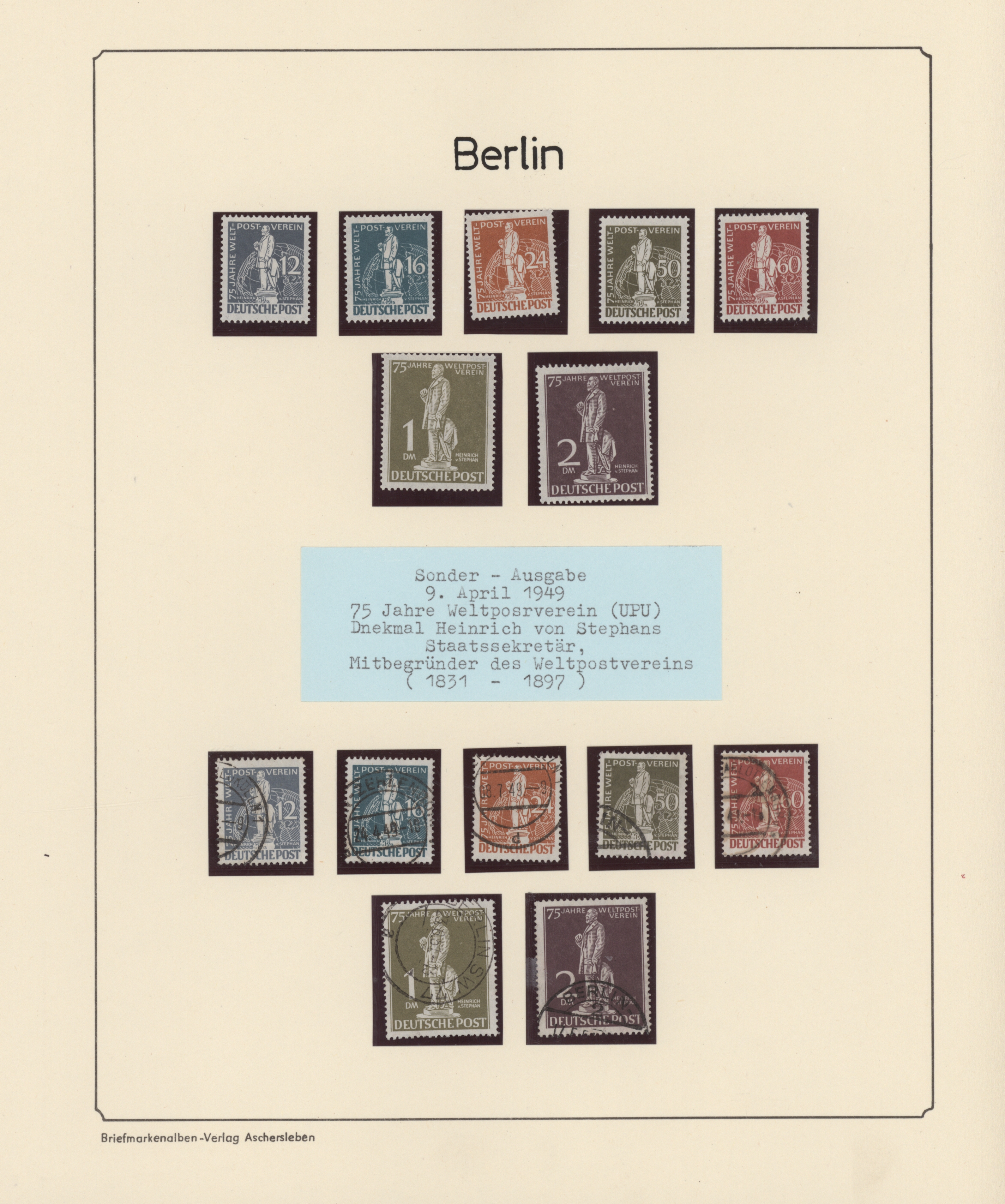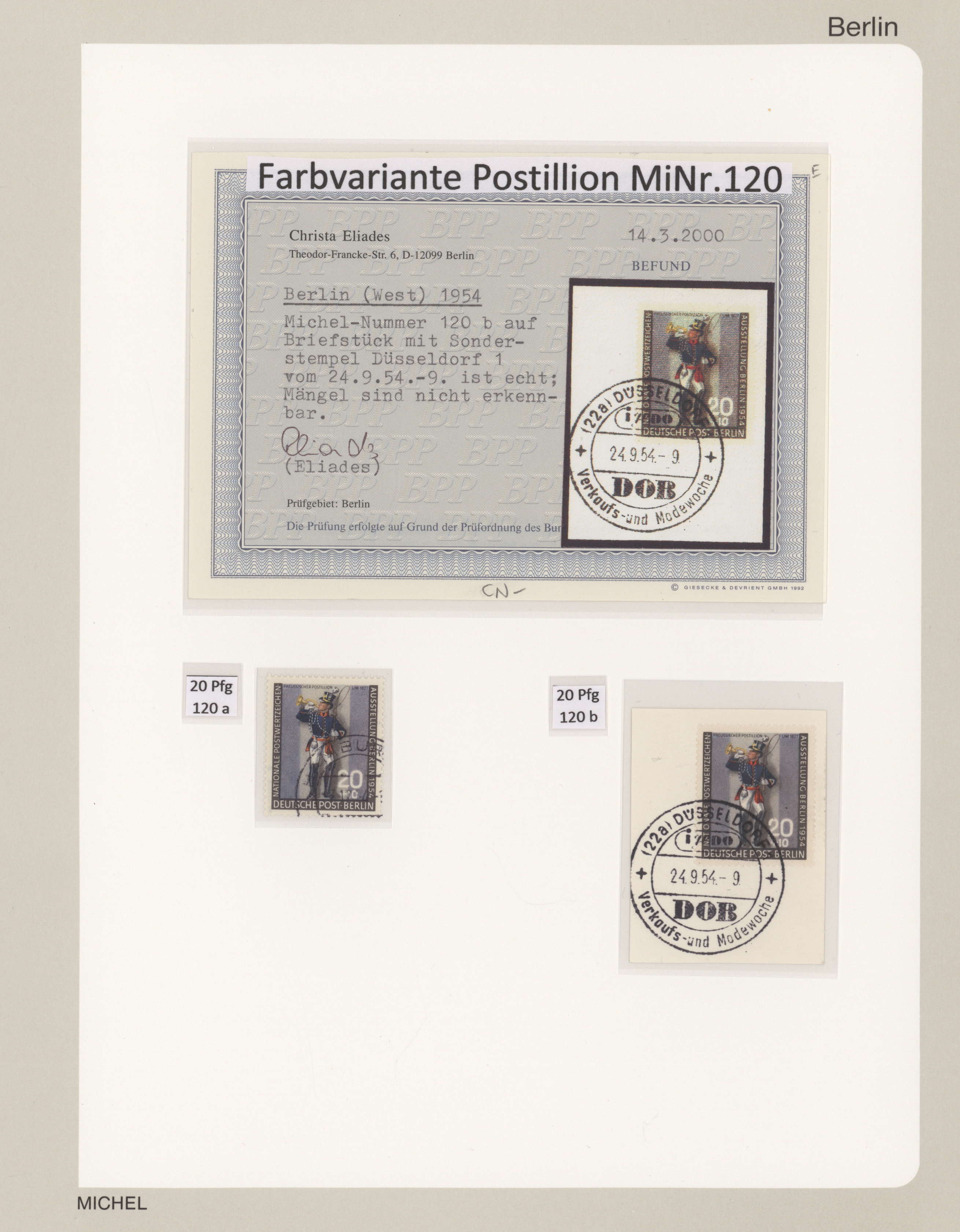 signierten, herrlichen Satzbriefen, Bl. 1 ebenfalls zweimal, dabei einmal auf Sonderpostkarte mit PF II mit aktuellem Attest H.-D. Schlegel, Stephan-Satz einheitlich entwertet "BERLIN-CHARLOTTENBURG as 16.3.50"(mit Befund), insgesamt sind alle Werte