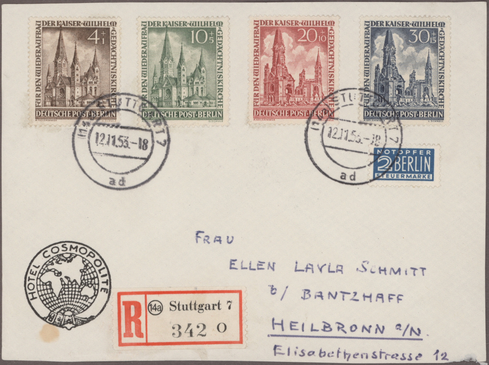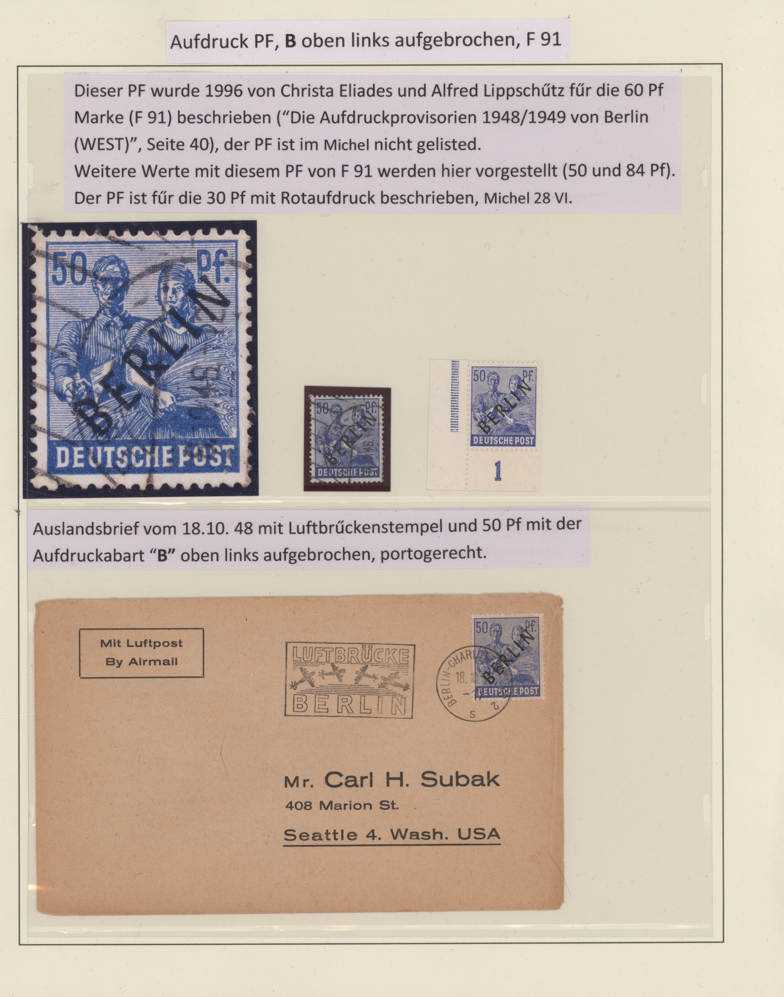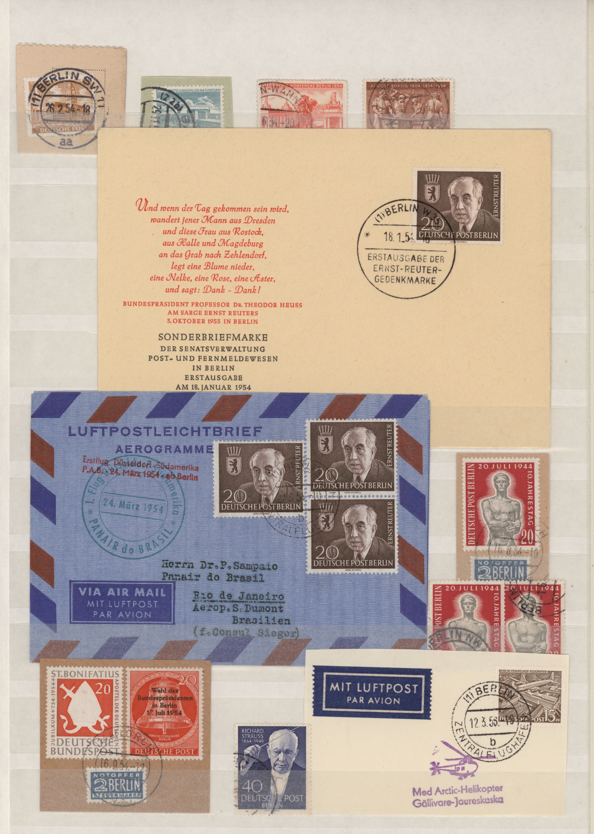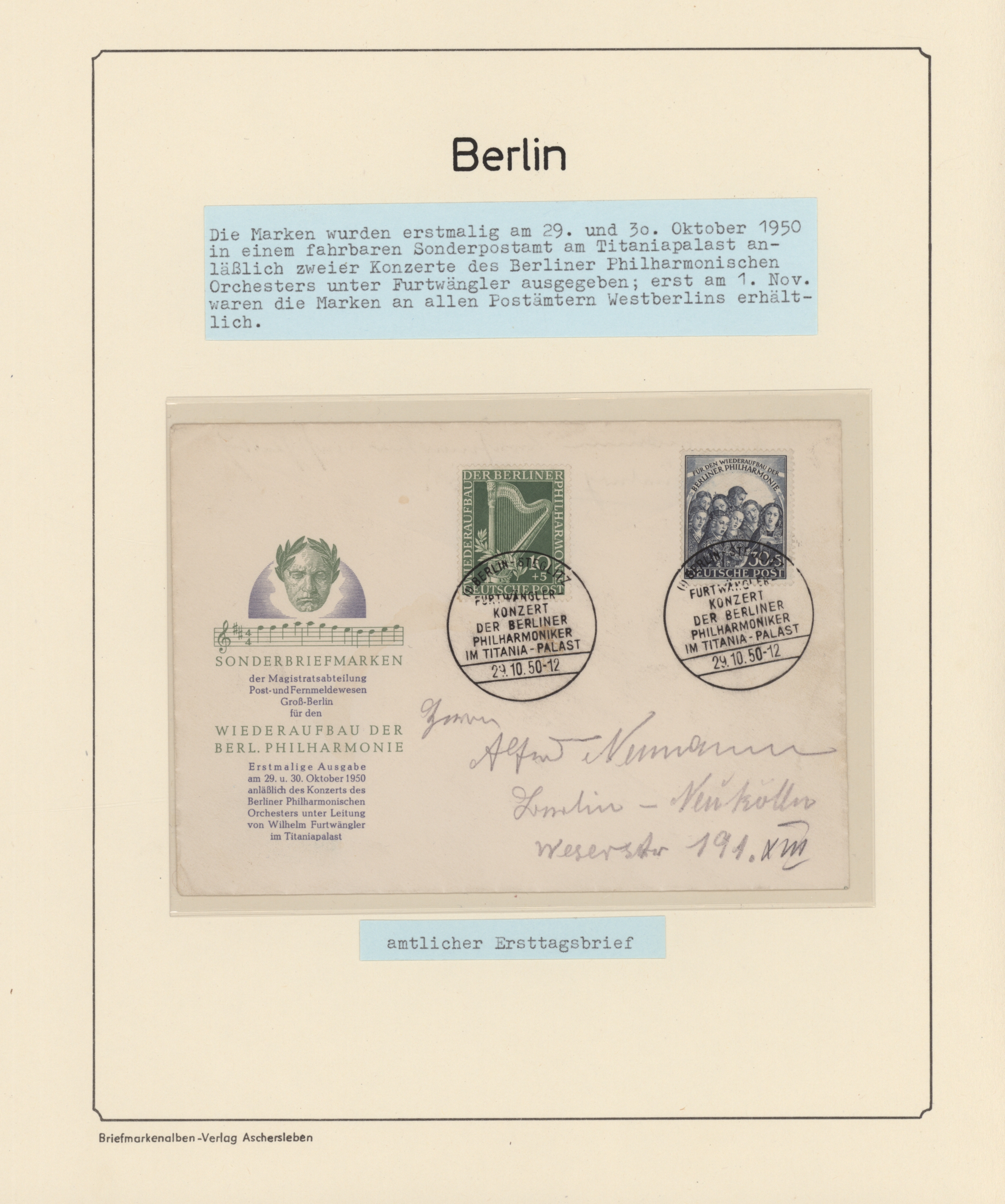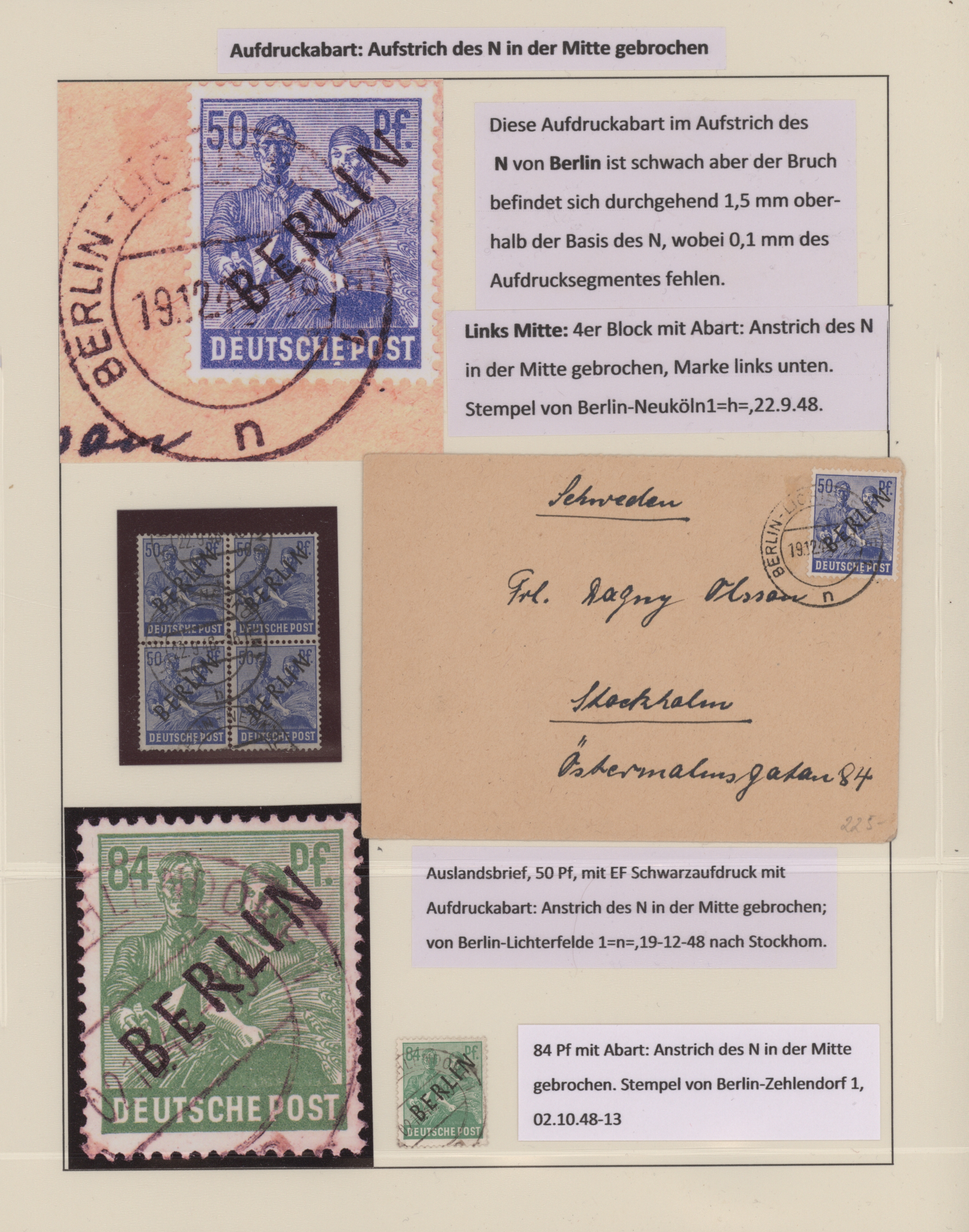 signierten, herrlichen Satzbriefen, Bl. 1 ebenfalls zweimal, dabei einmal auf Sonderpostkarte mit PF II mit aktuellem Attest H.-D. Schlegel, Stephan-Satz einheitlich entwertet "BERLIN-CHARLOTTENBURG as 16.3.50"(mit Befund), insgesamt sind alle Werte