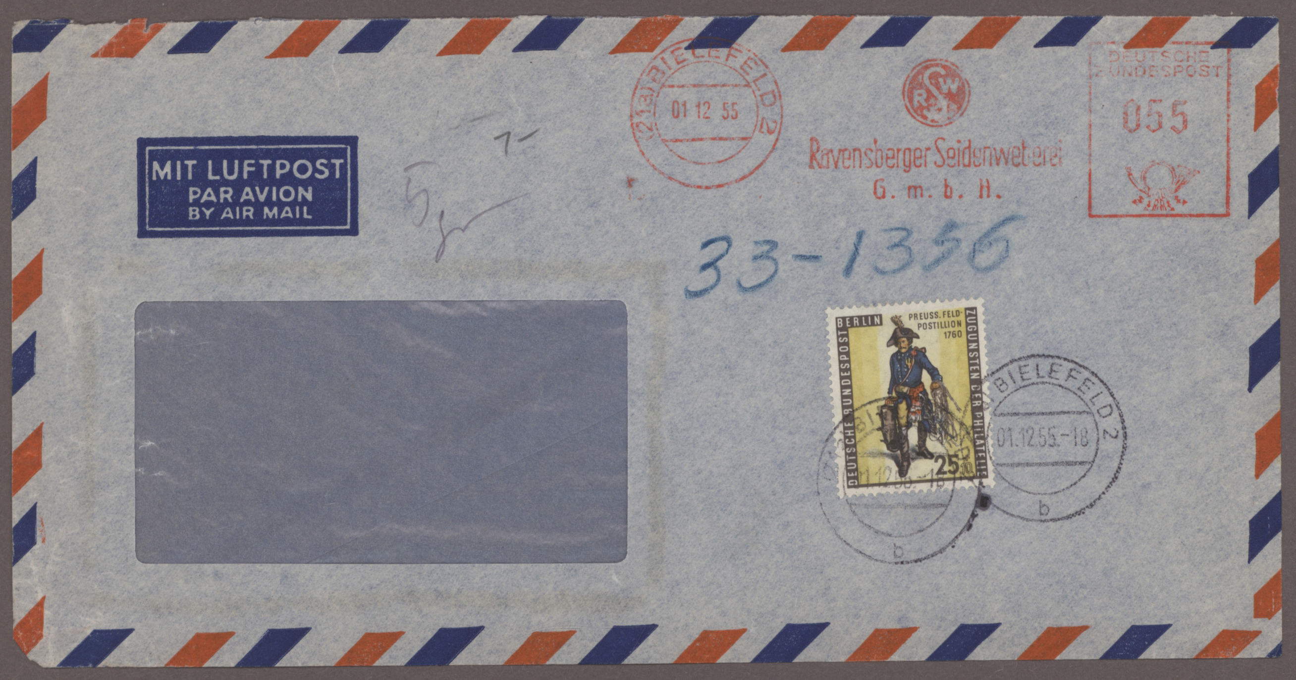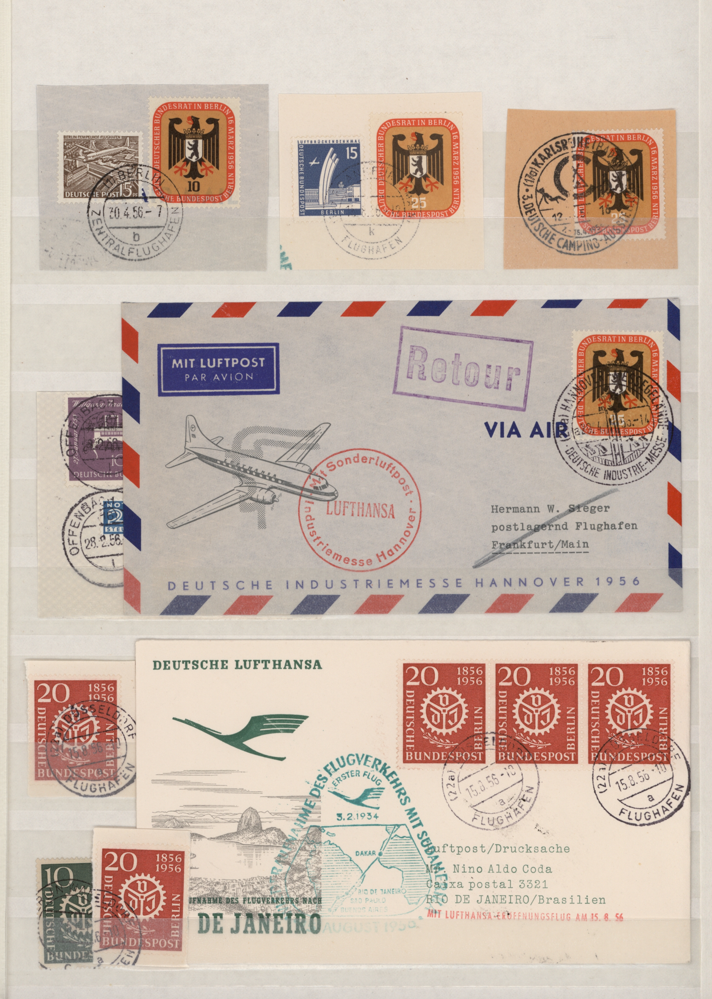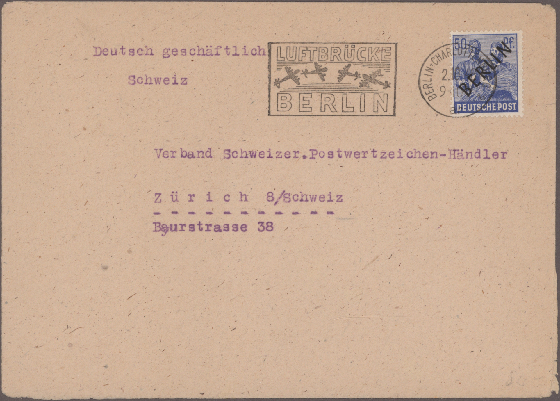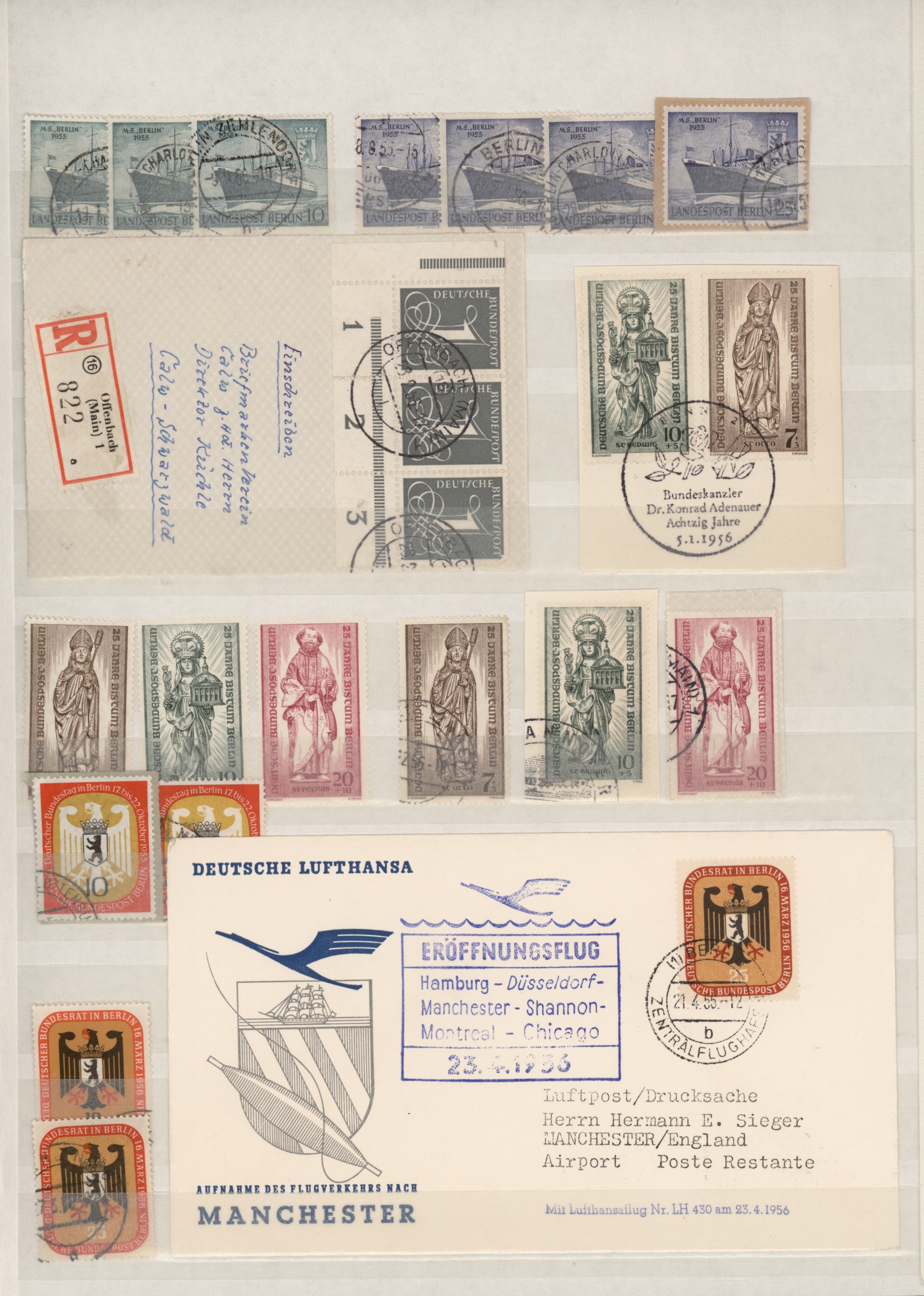 die Schweiz adressiert), einige Luftpostfaltbriefe ungebraucht, 15 Pfg. Bauten I als EF auf Einlieferungsschein, Britische Feldpost-Drucksache per deutscher Post befördert, usw.