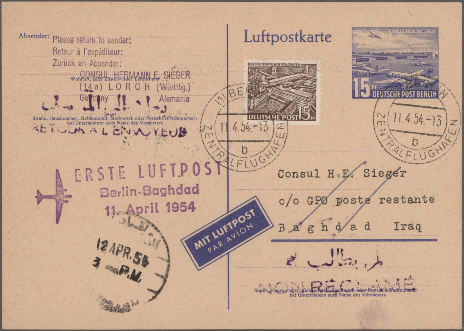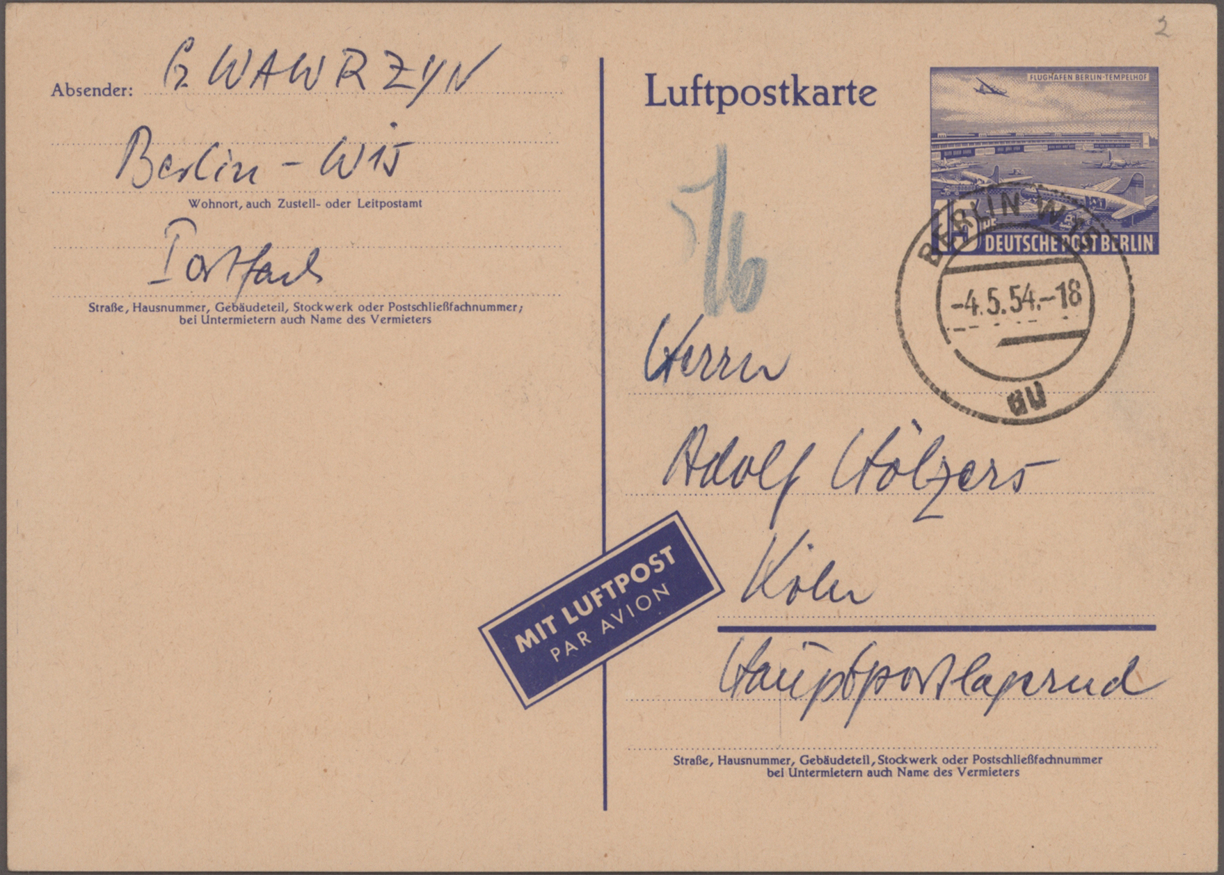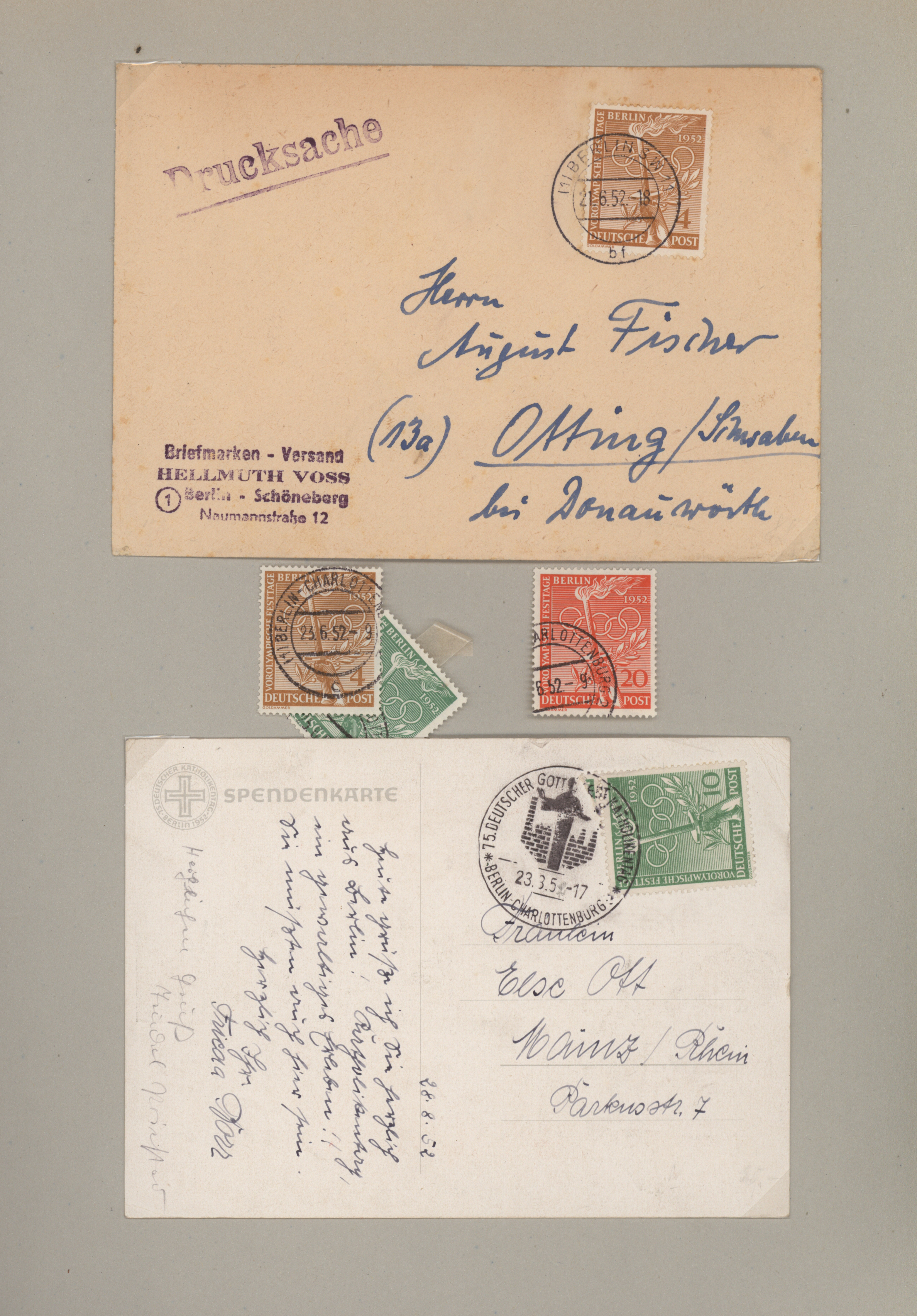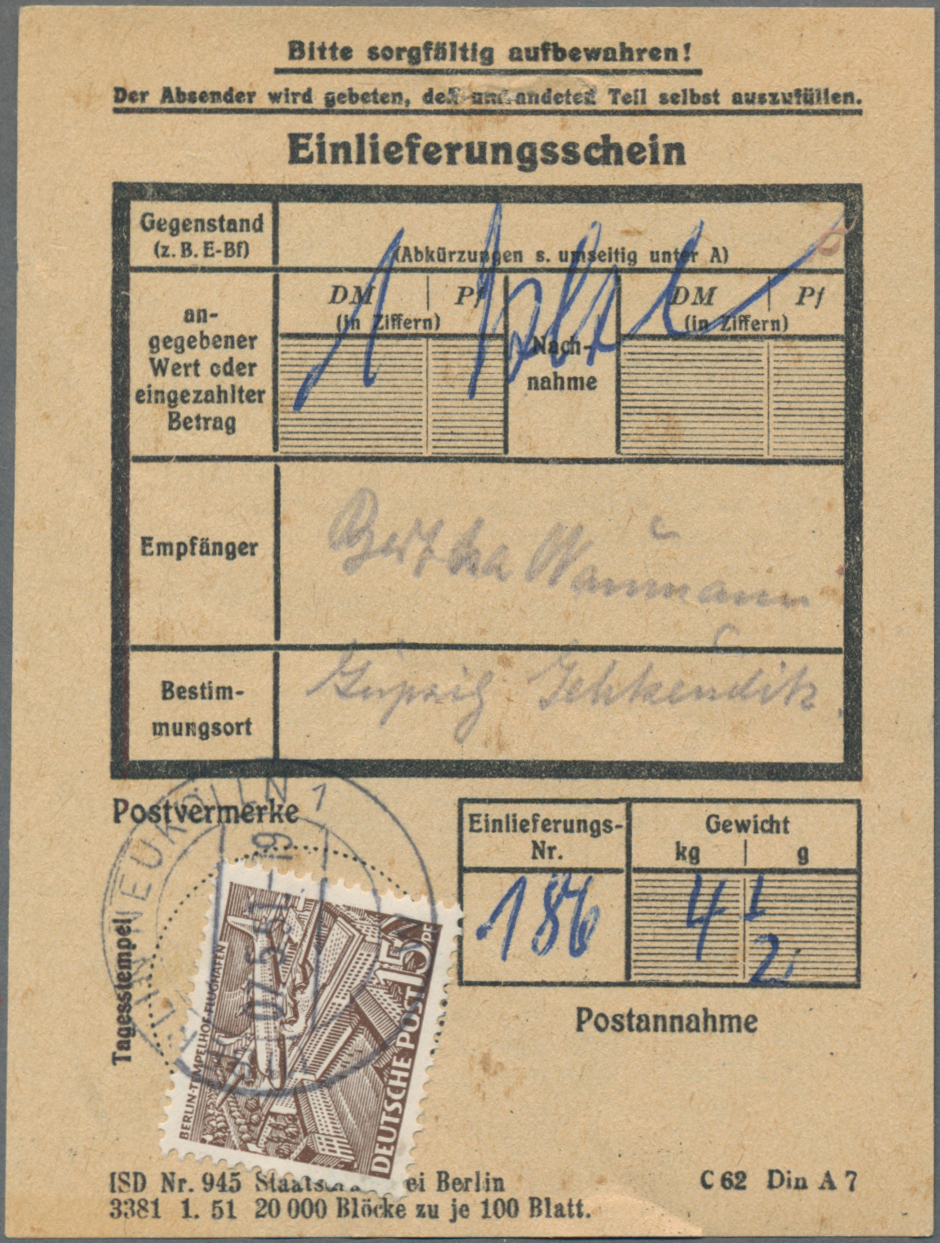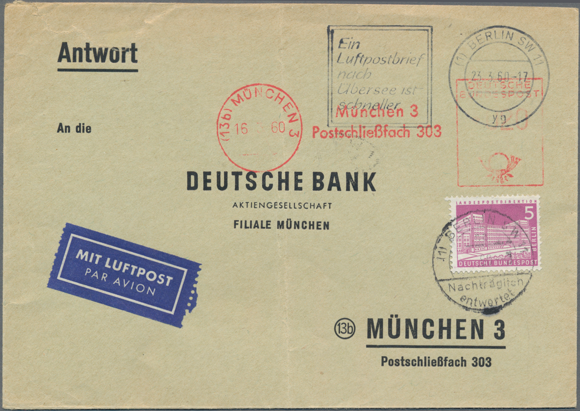 die Schweiz adressiert), einige Luftpostfaltbriefe ungebraucht, 15 Pfg. Bauten I als EF auf Einlieferungsschein, Britische Feldpost-Drucksache per deutscher Post befördert, usw.