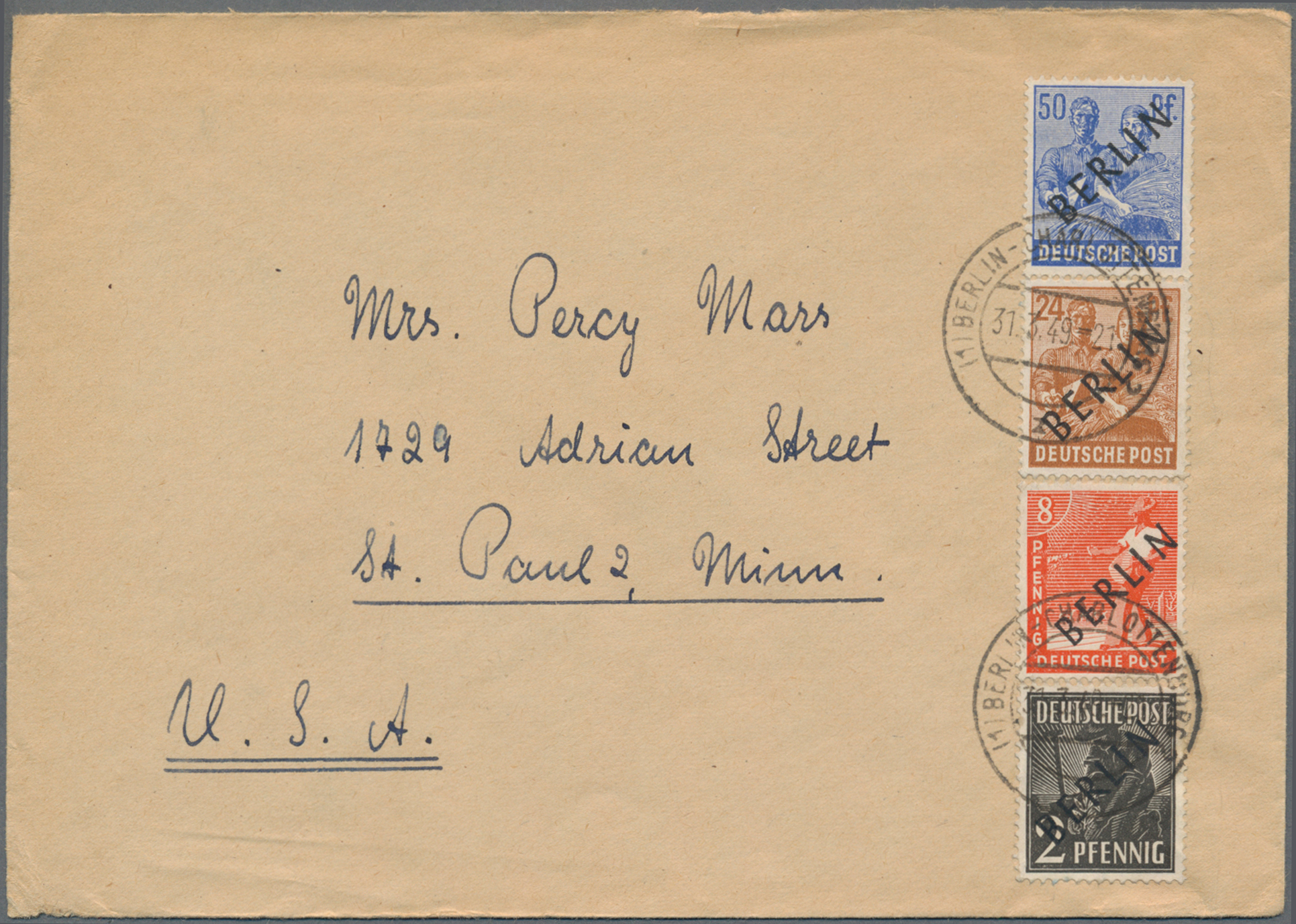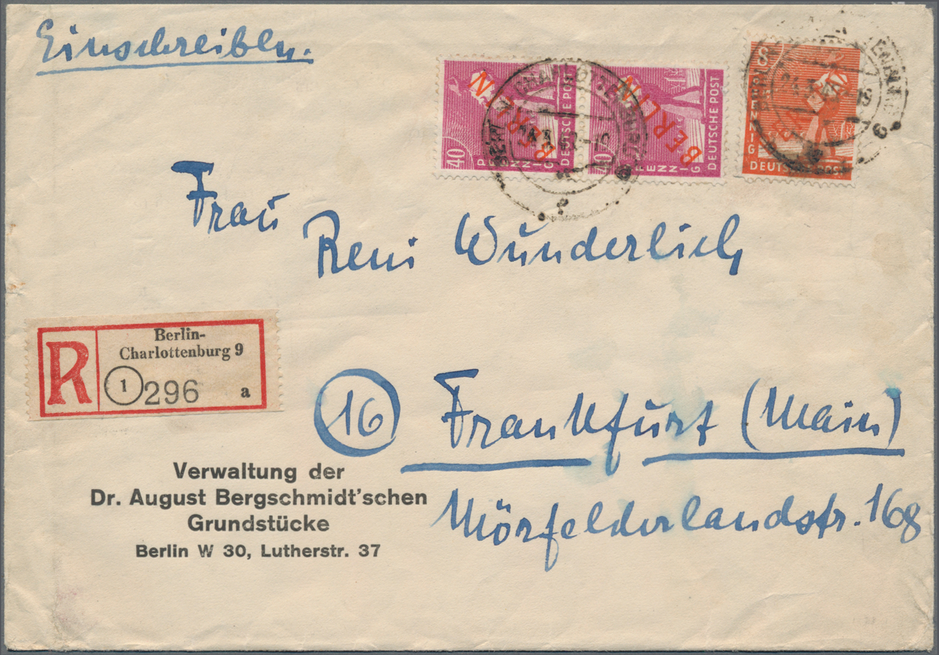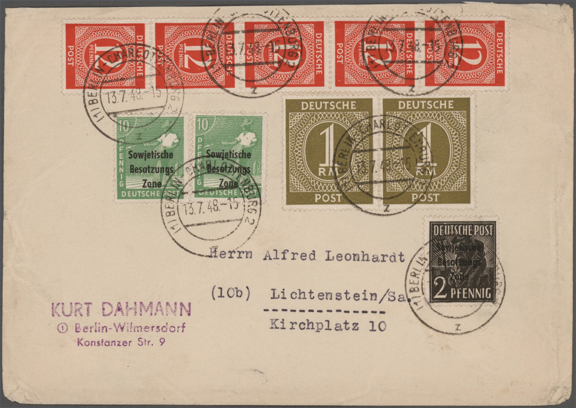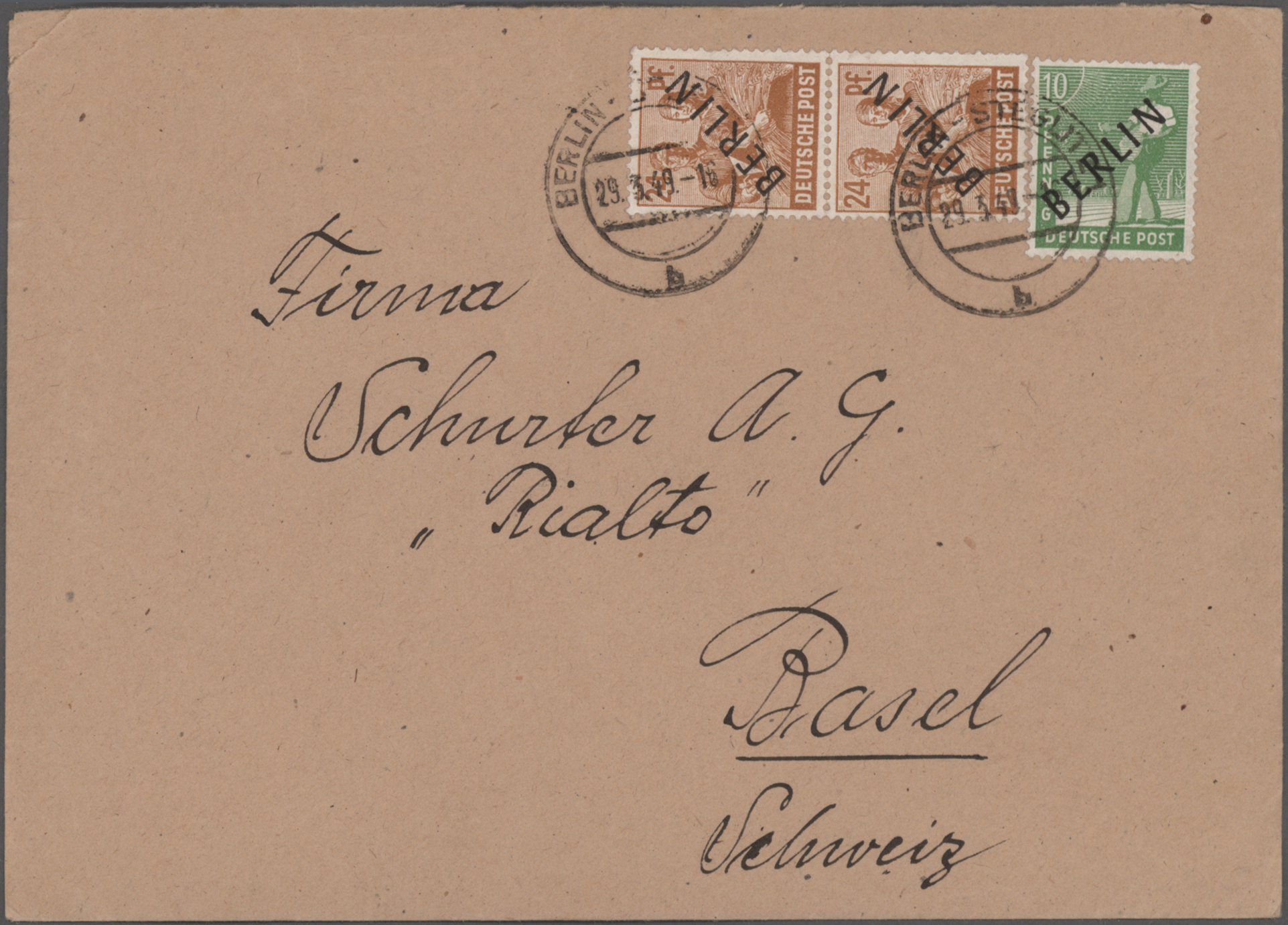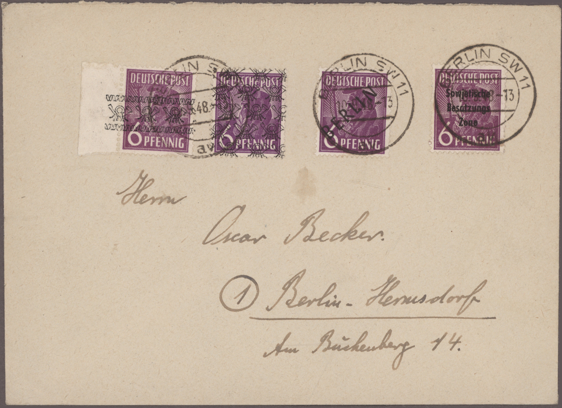 1948, Berlin West und Ost, Partie von 13 Belegen, dabei West-Berlin-Vorläufer mit interessanten Mischfrankaturen, Letzttagsfrankatur Bizone AM-Post