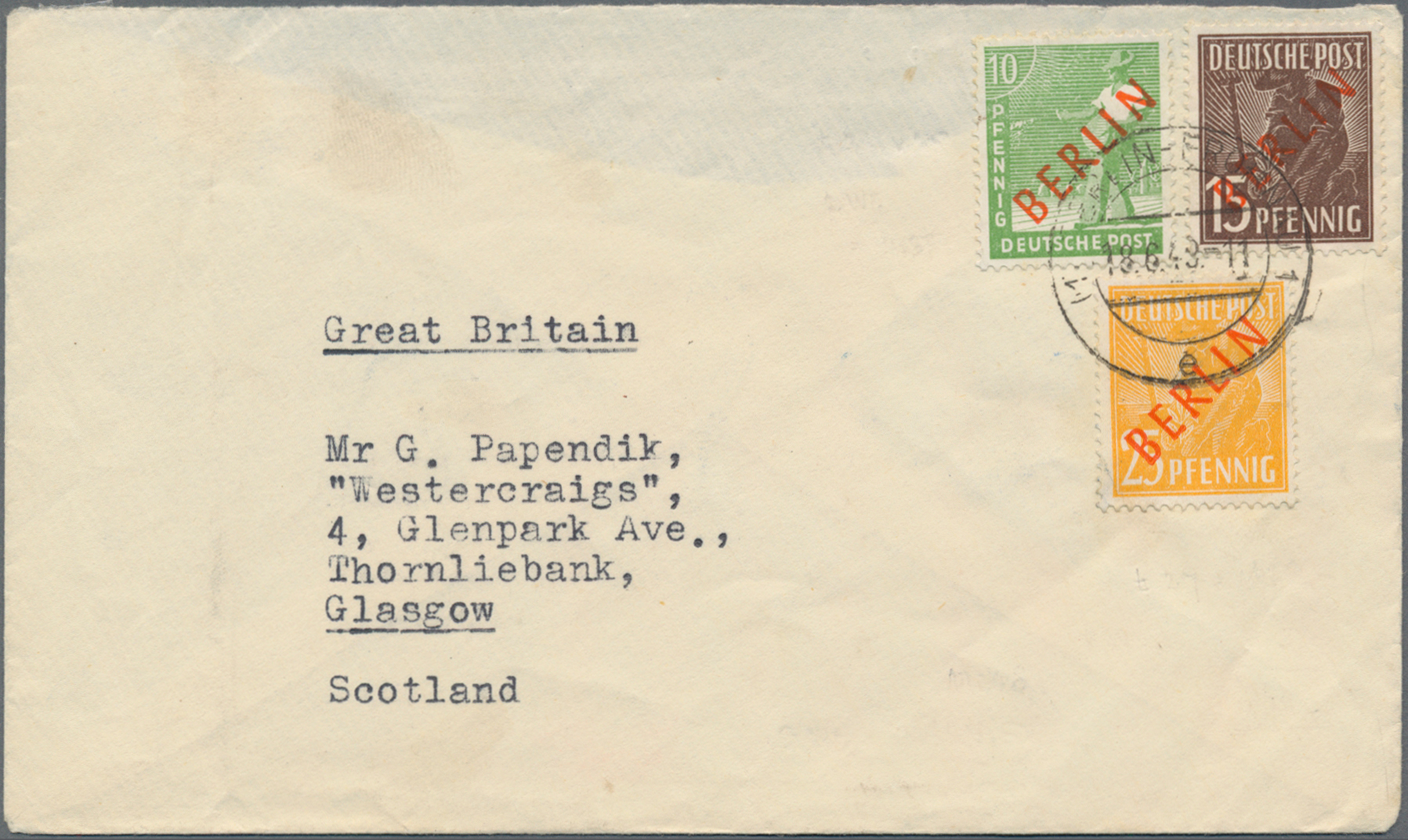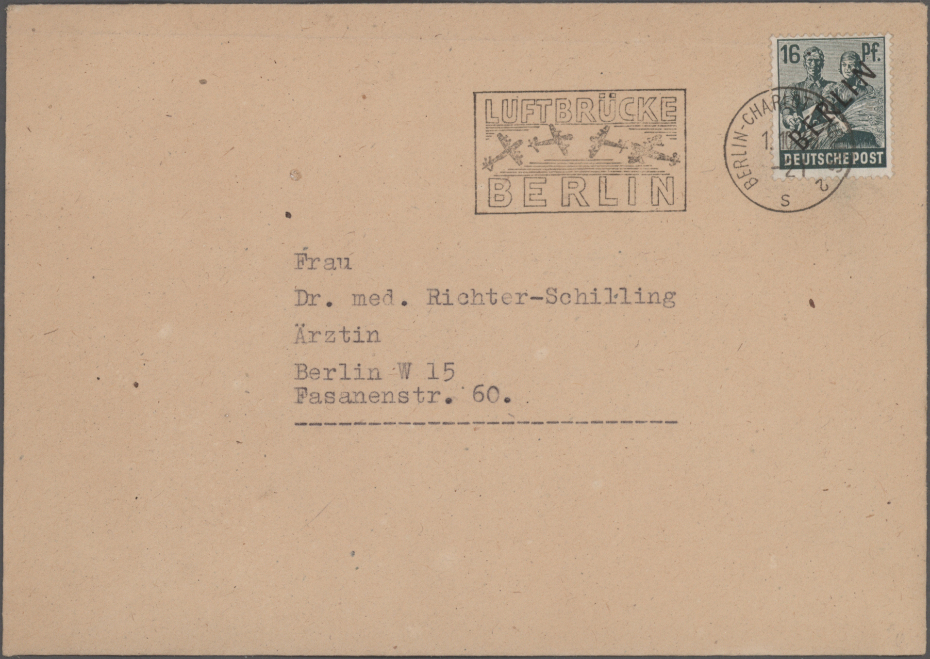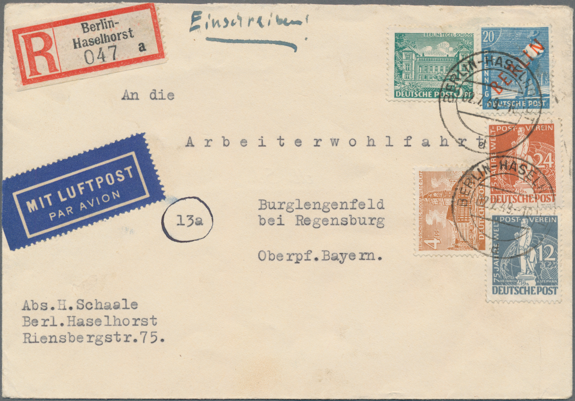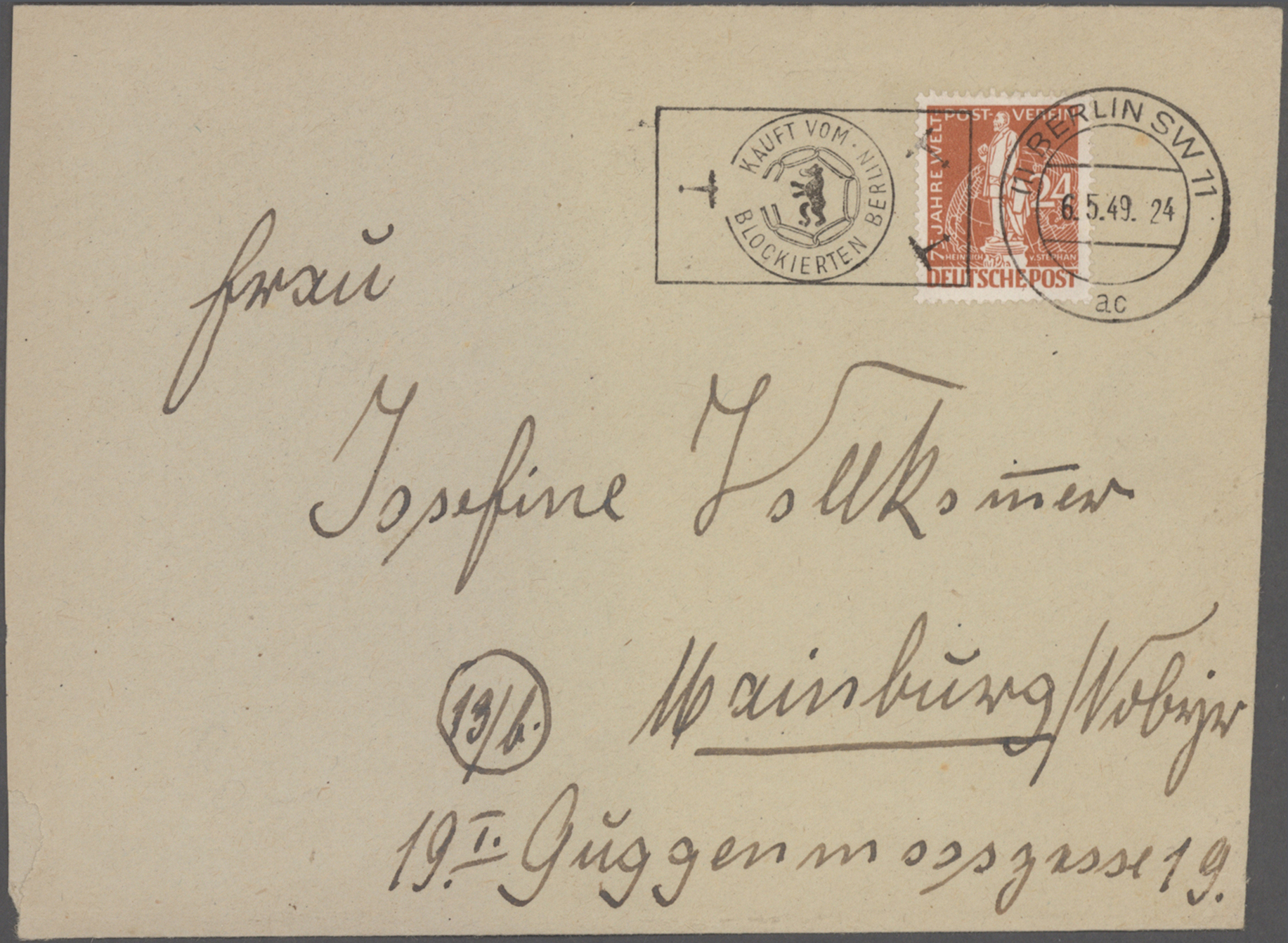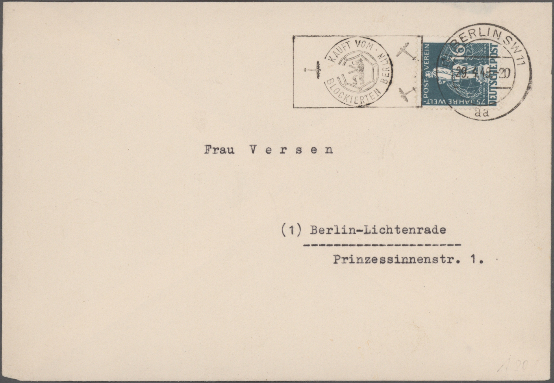 1948, Berlin West und Ost, Partie von 13 Belegen, dabei West-Berlin-Vorläufer mit interessanten Mischfrankaturen, Letzttagsfrankatur Bizone AM-Post