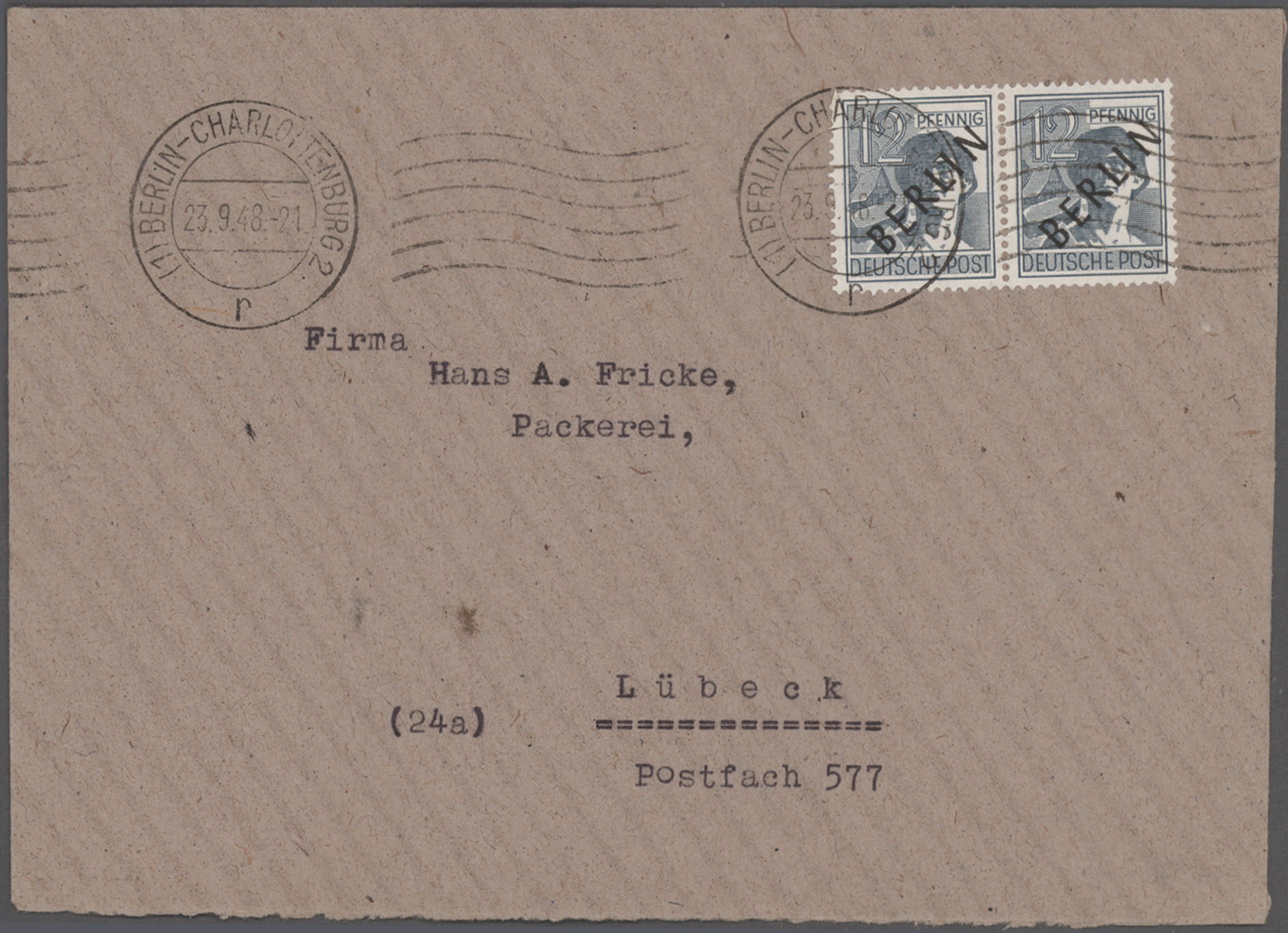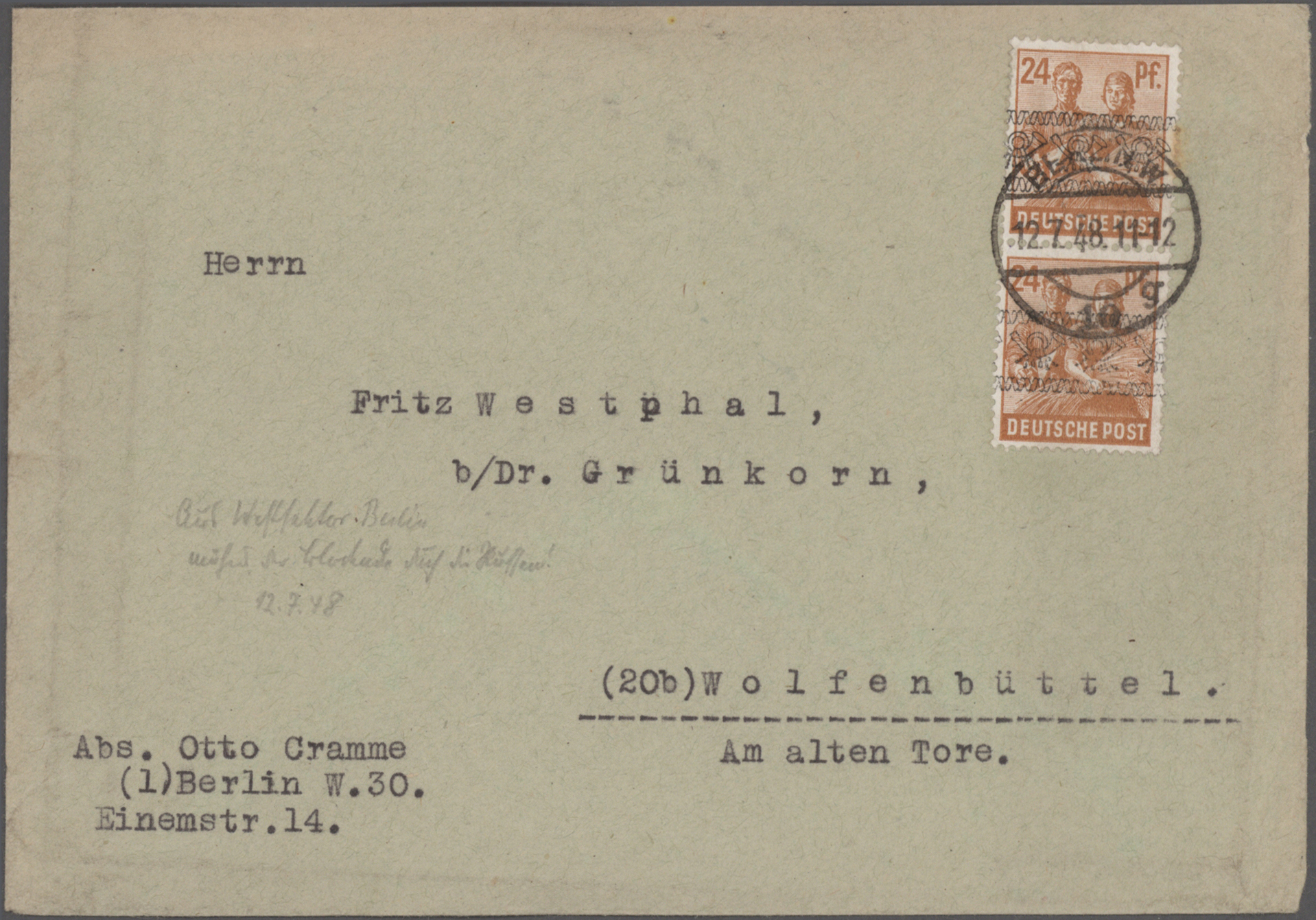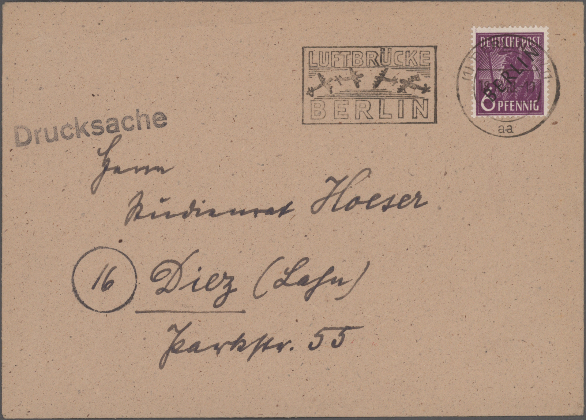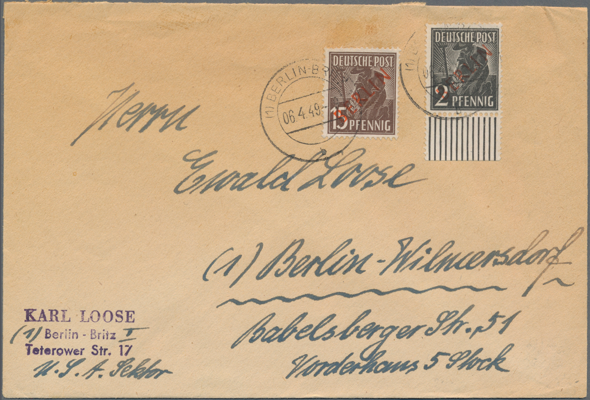 1948, Berlin West und Ost, Partie von 13 Belegen, dabei West-Berlin-Vorläufer mit interessanten Mischfrankaturen, Letzttagsfrankatur Bizone AM-Post