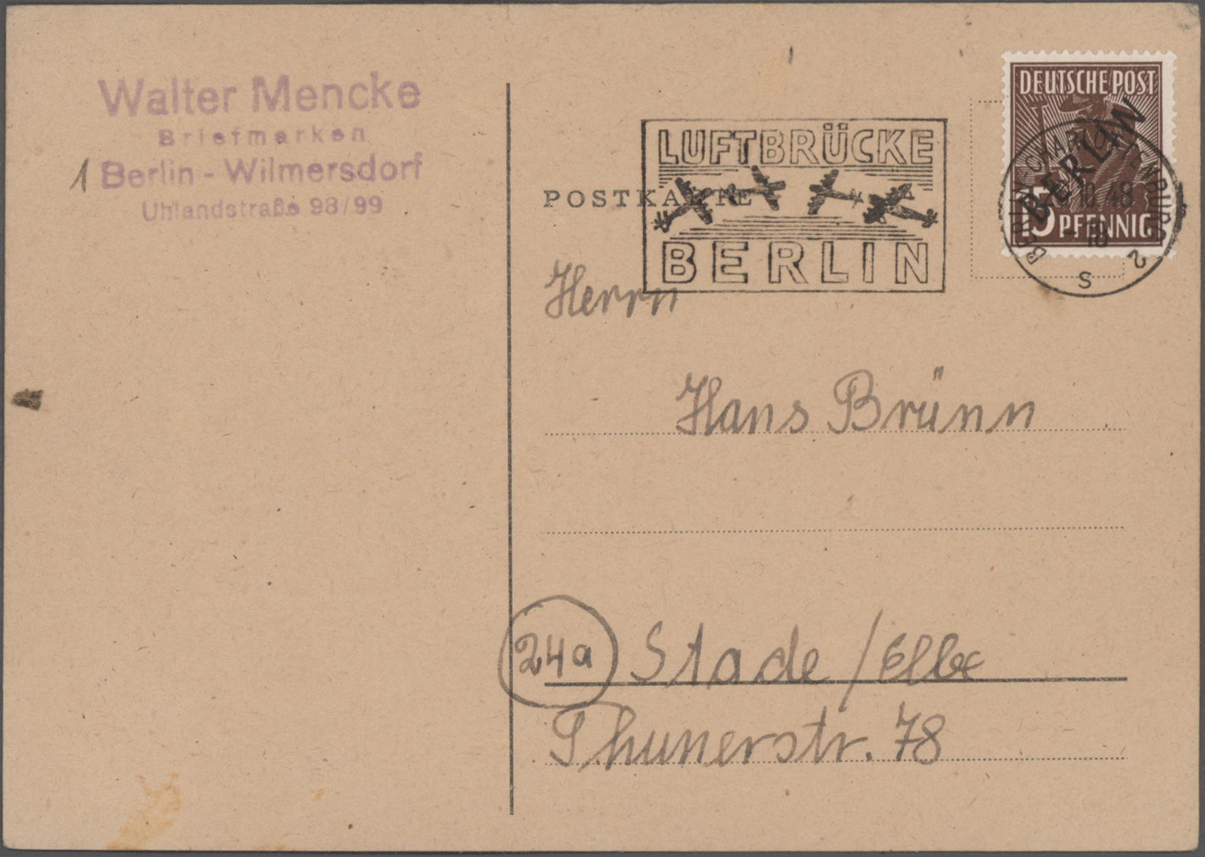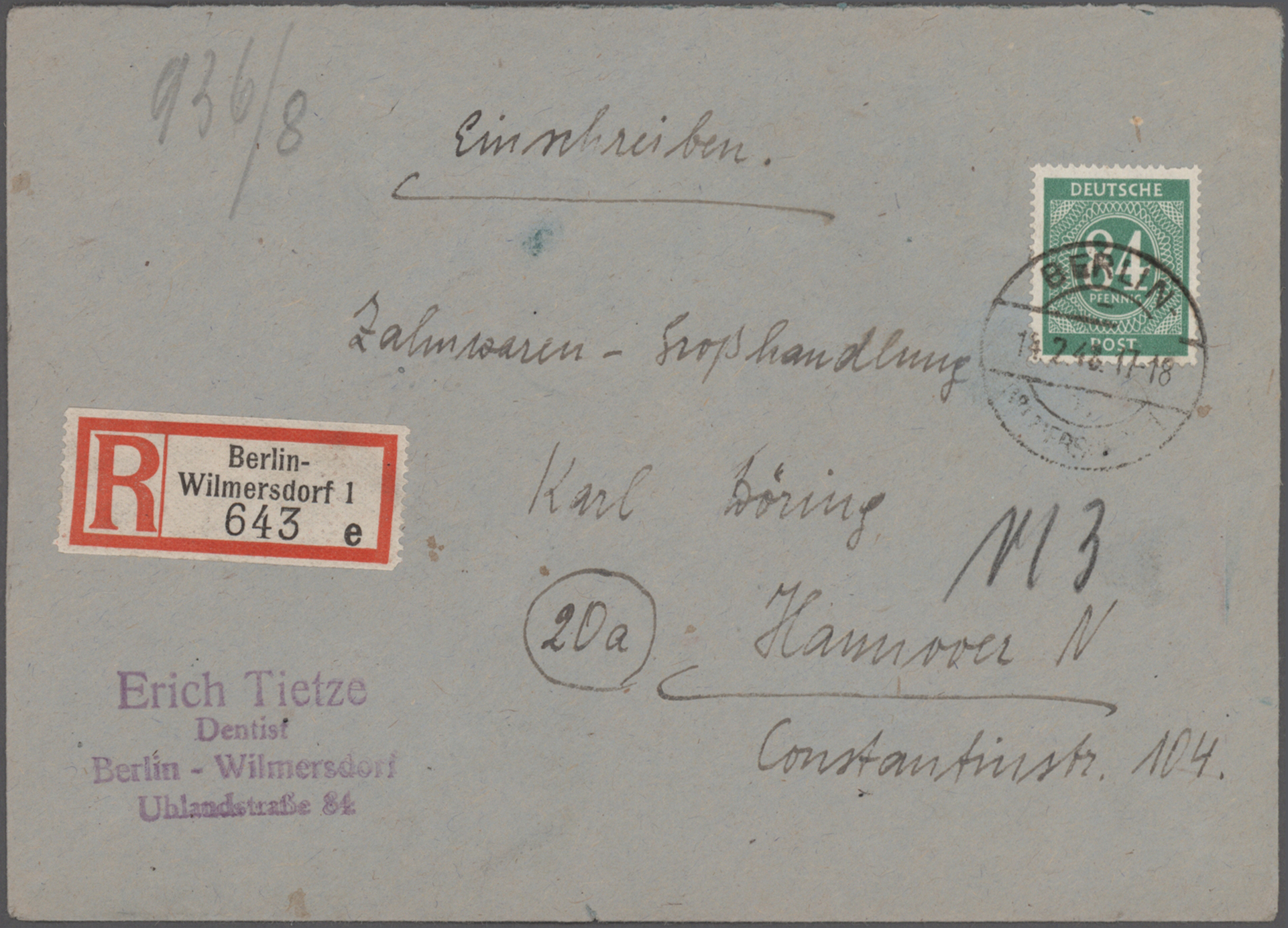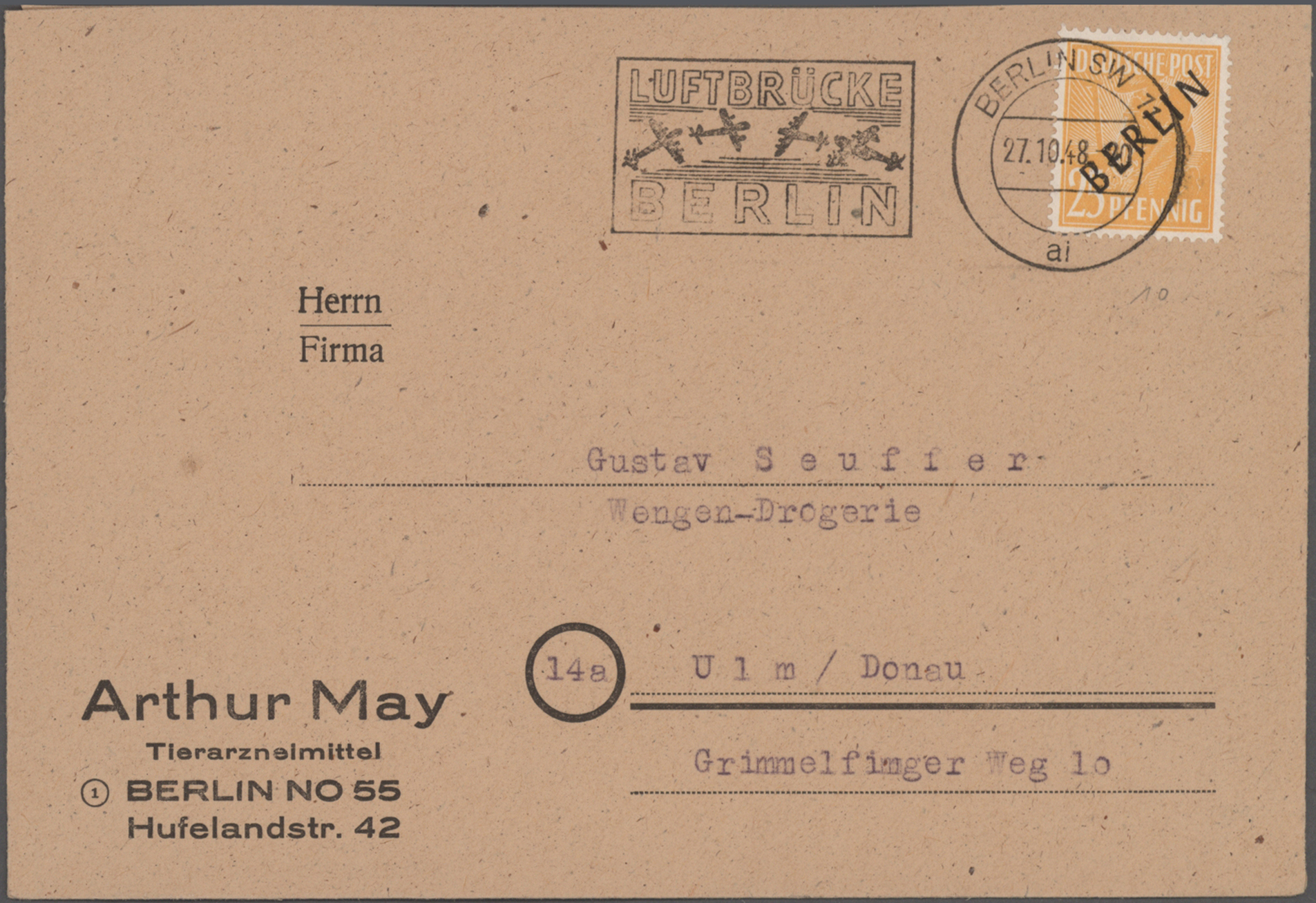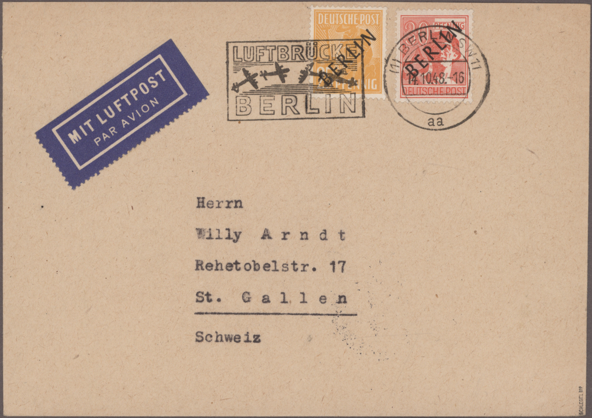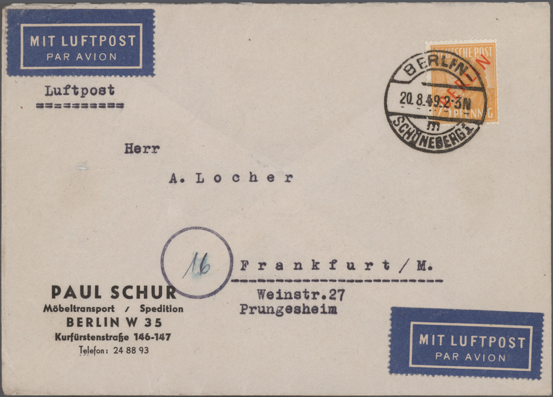 1948, Berlin West und Ost, Partie von 13 Belegen, dabei West-Berlin-Vorläufer mit interessanten Mischfrankaturen, Letzttagsfrankatur Bizone AM-Post