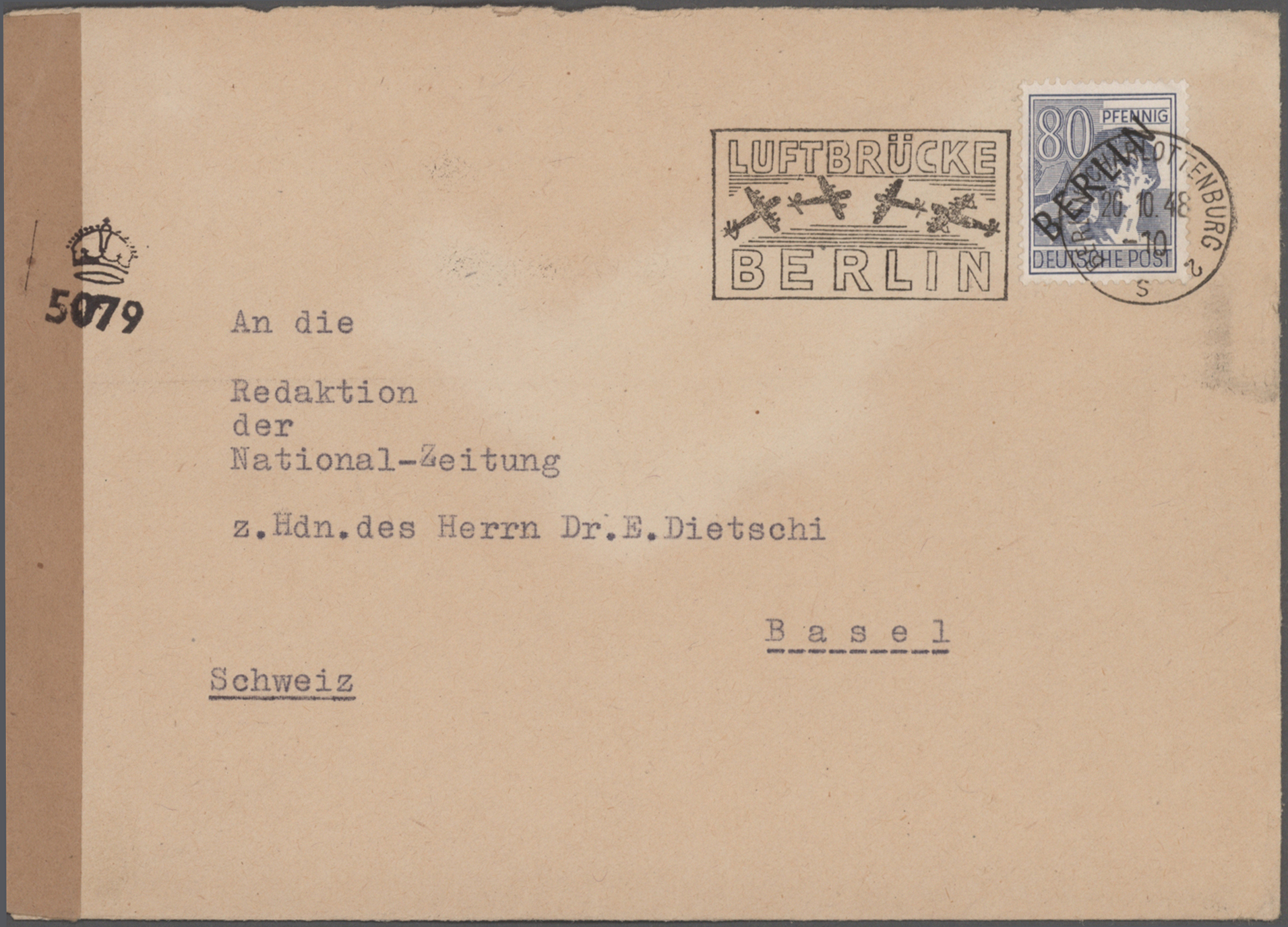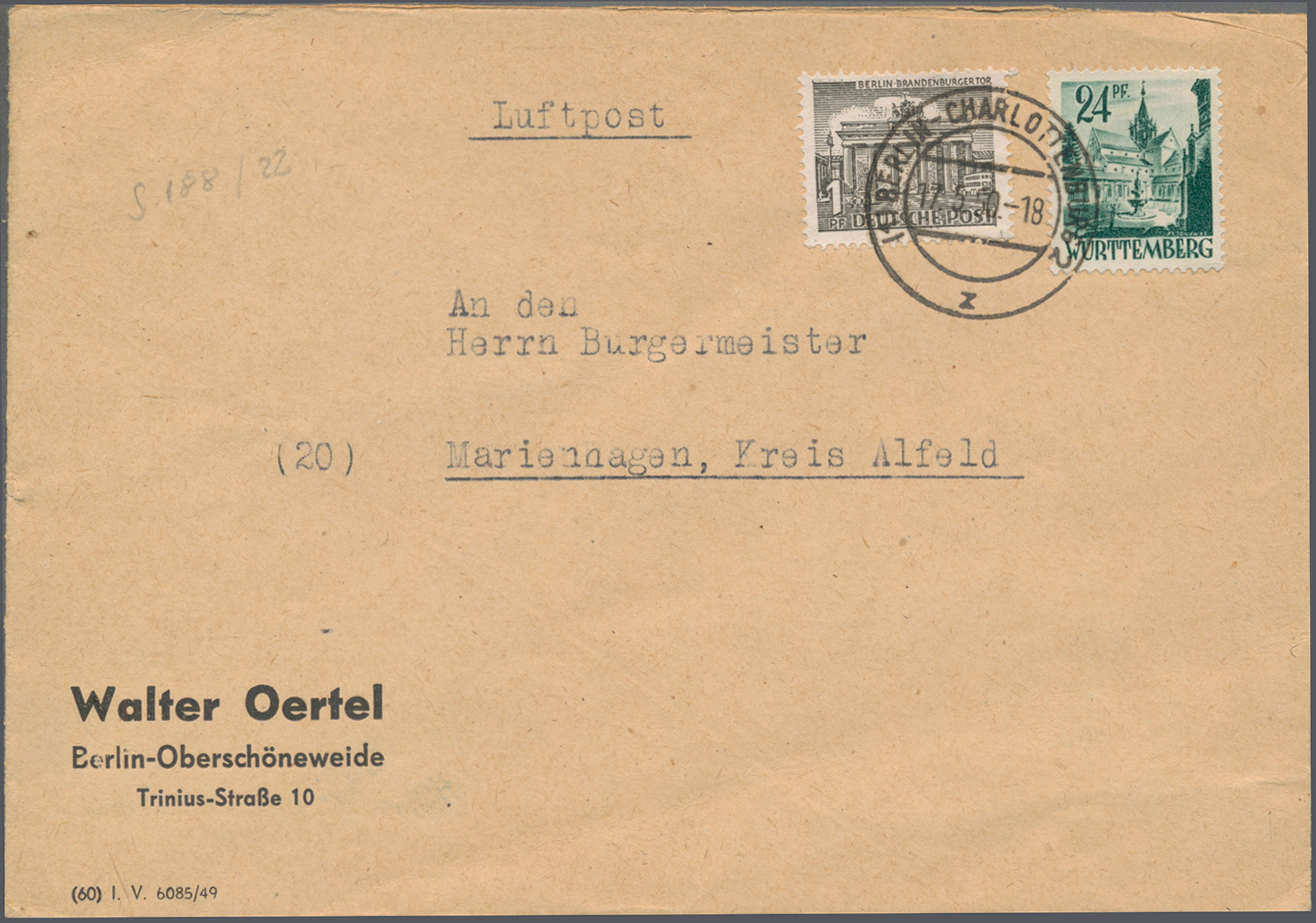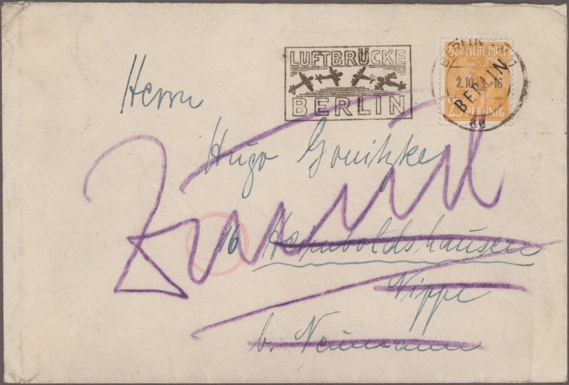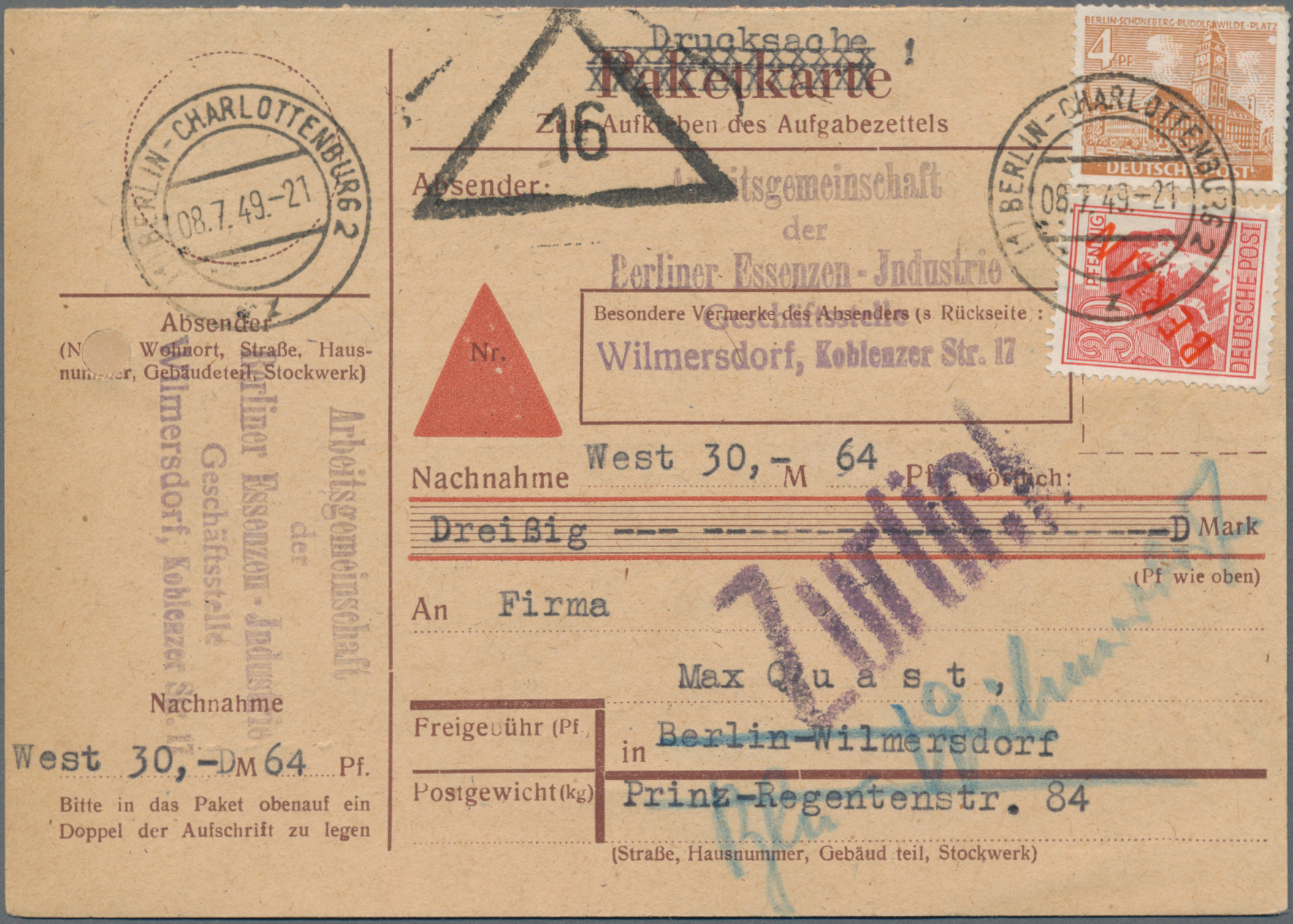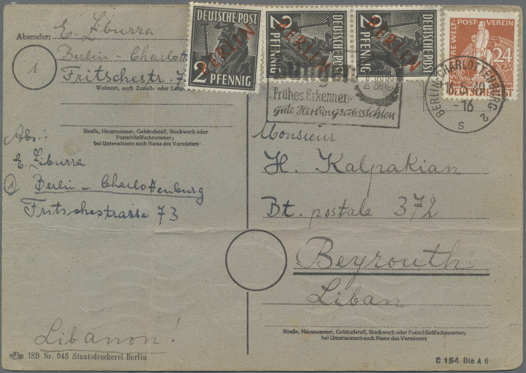 1948, Berlin West und Ost, Partie von 13 Belegen, dabei West-Berlin-Vorläufer mit interessanten Mischfrankaturen, Letzttagsfrankatur Bizone AM-Post