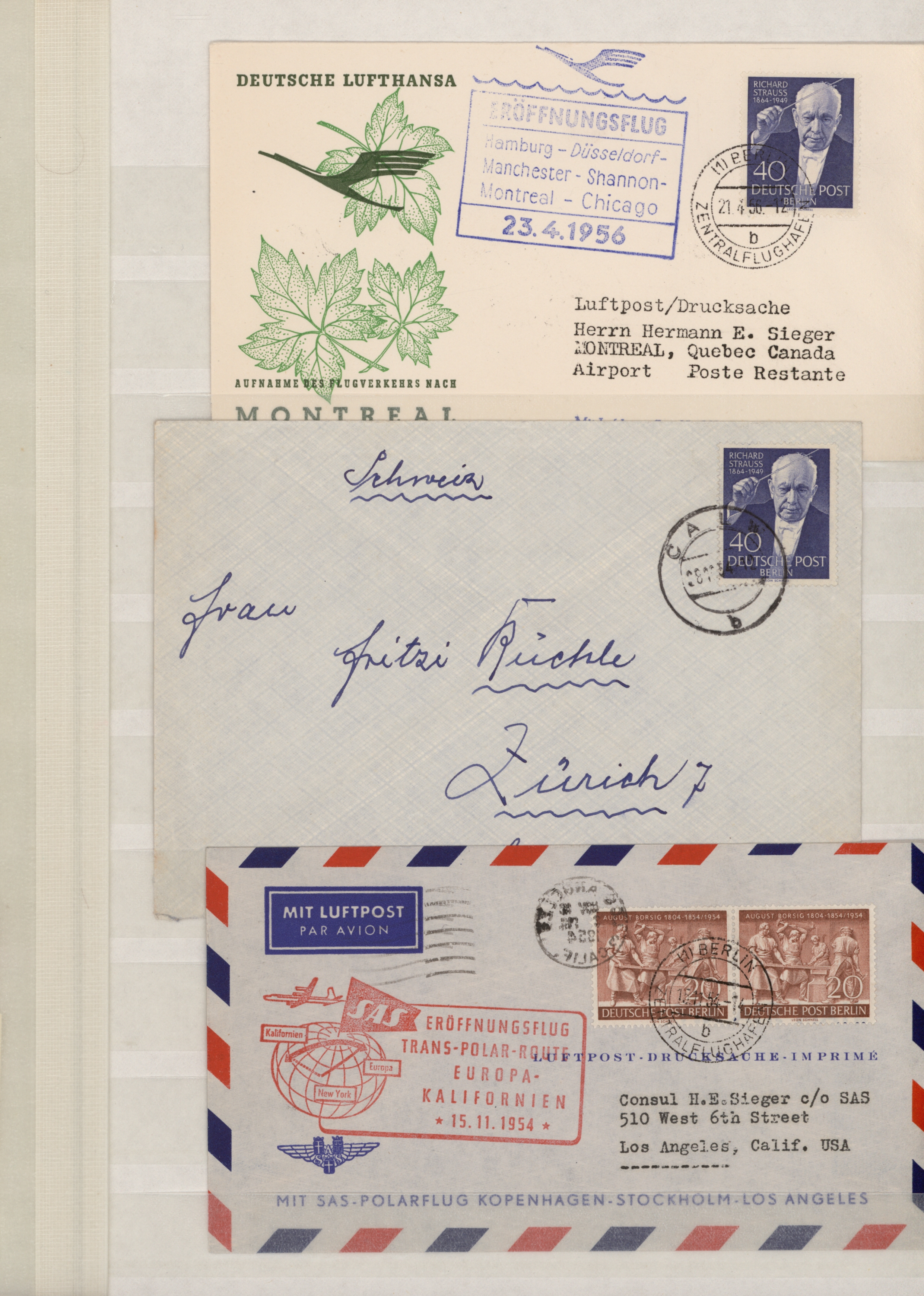 1948/1990, umfangreicher Sammlungsbestand in drei Alben, dabei netter Teil Anfangsausgaben, Briefe mit u.a. MiNr. 73 EF, 78 EF, 85 MeF, zahlreiche Flugpostbelege,