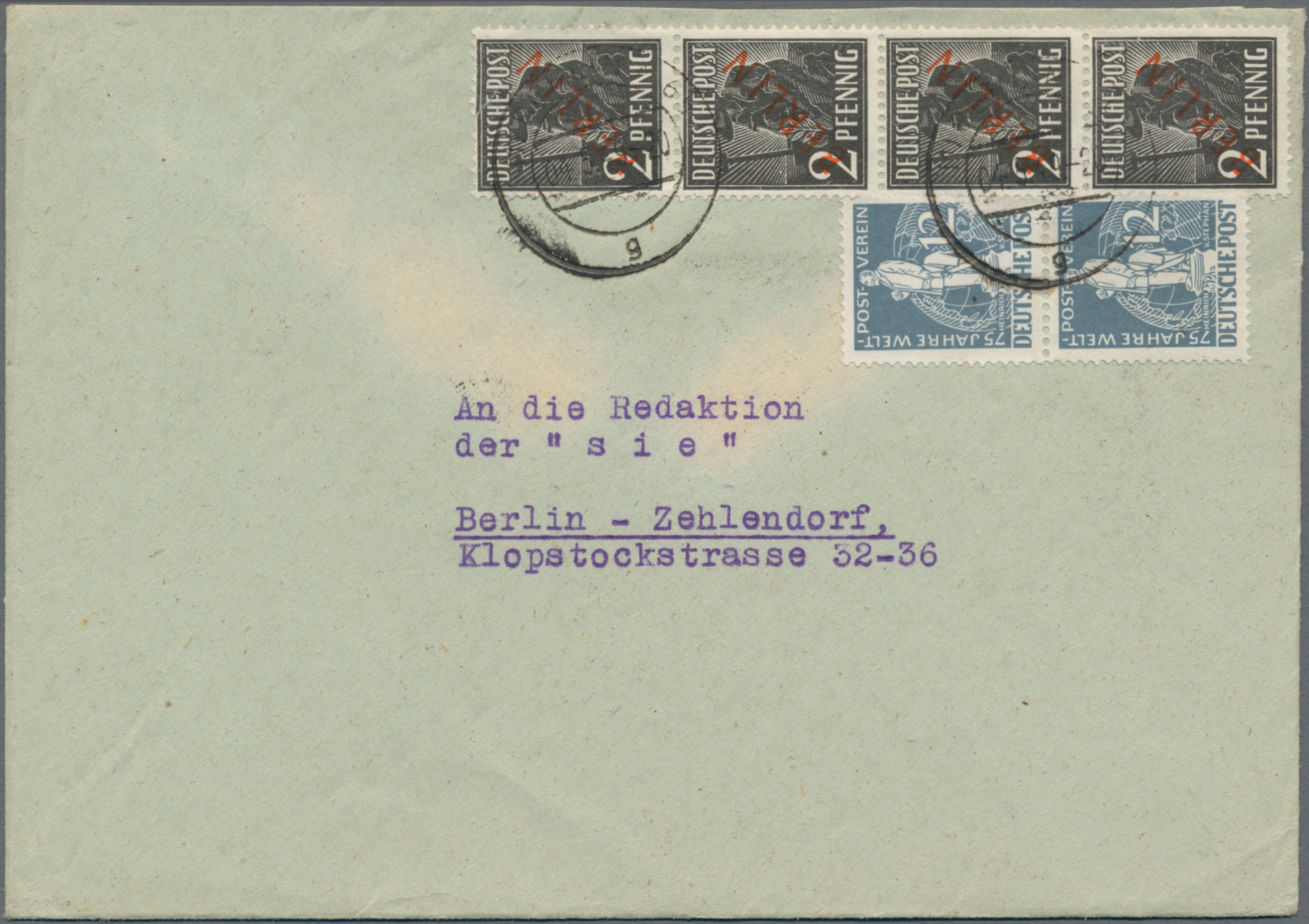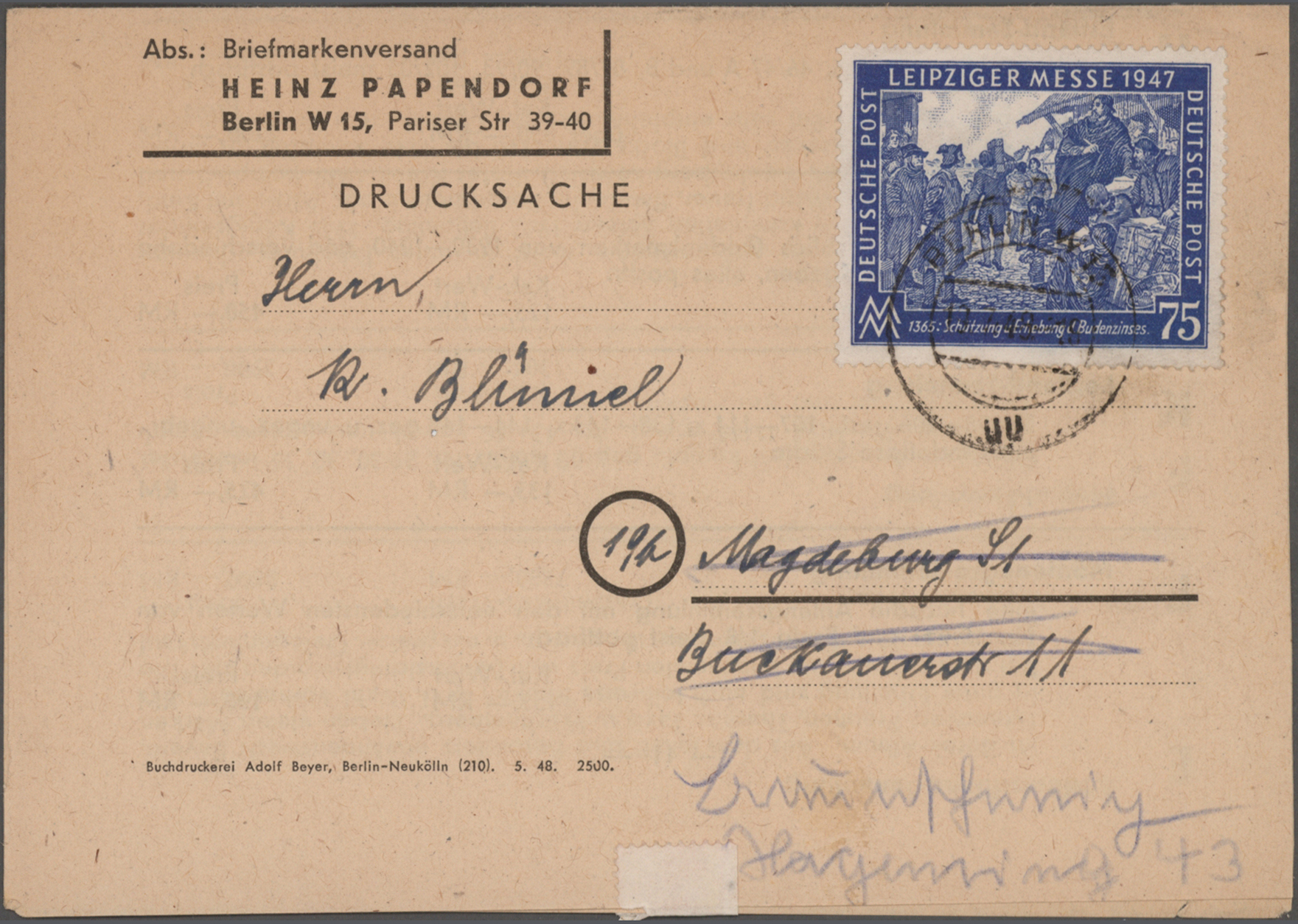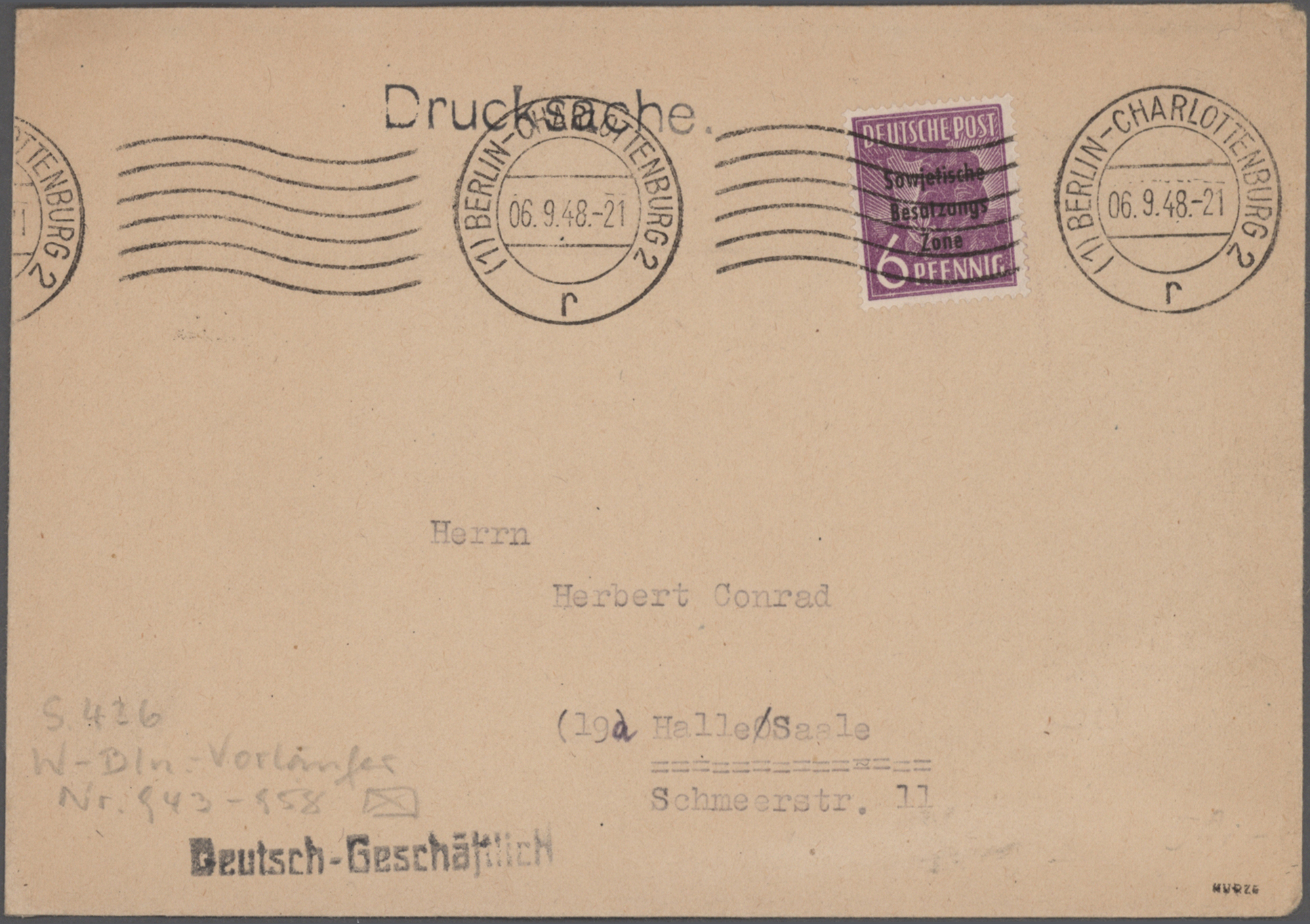 Amerikanischer Druck, SBZ Bezirkshandstempel sowie auch sechs Postkriegsbelege (eingehende Drucksachen aus der SBZ mit nicht anerkanntem Porto). Eine interessante und vielseitige Partie!