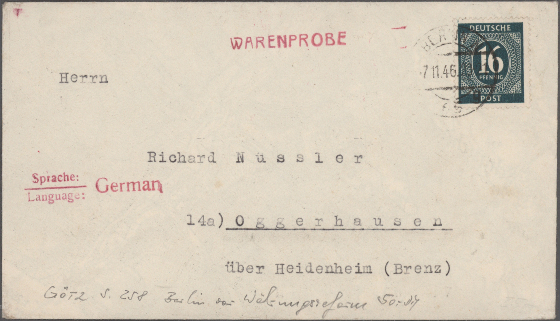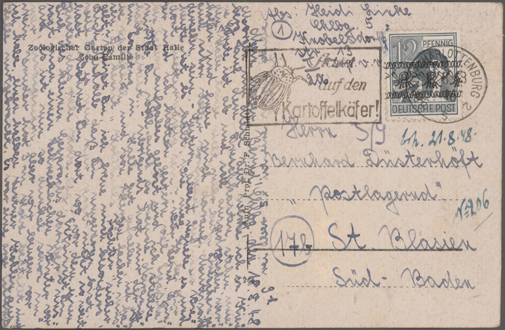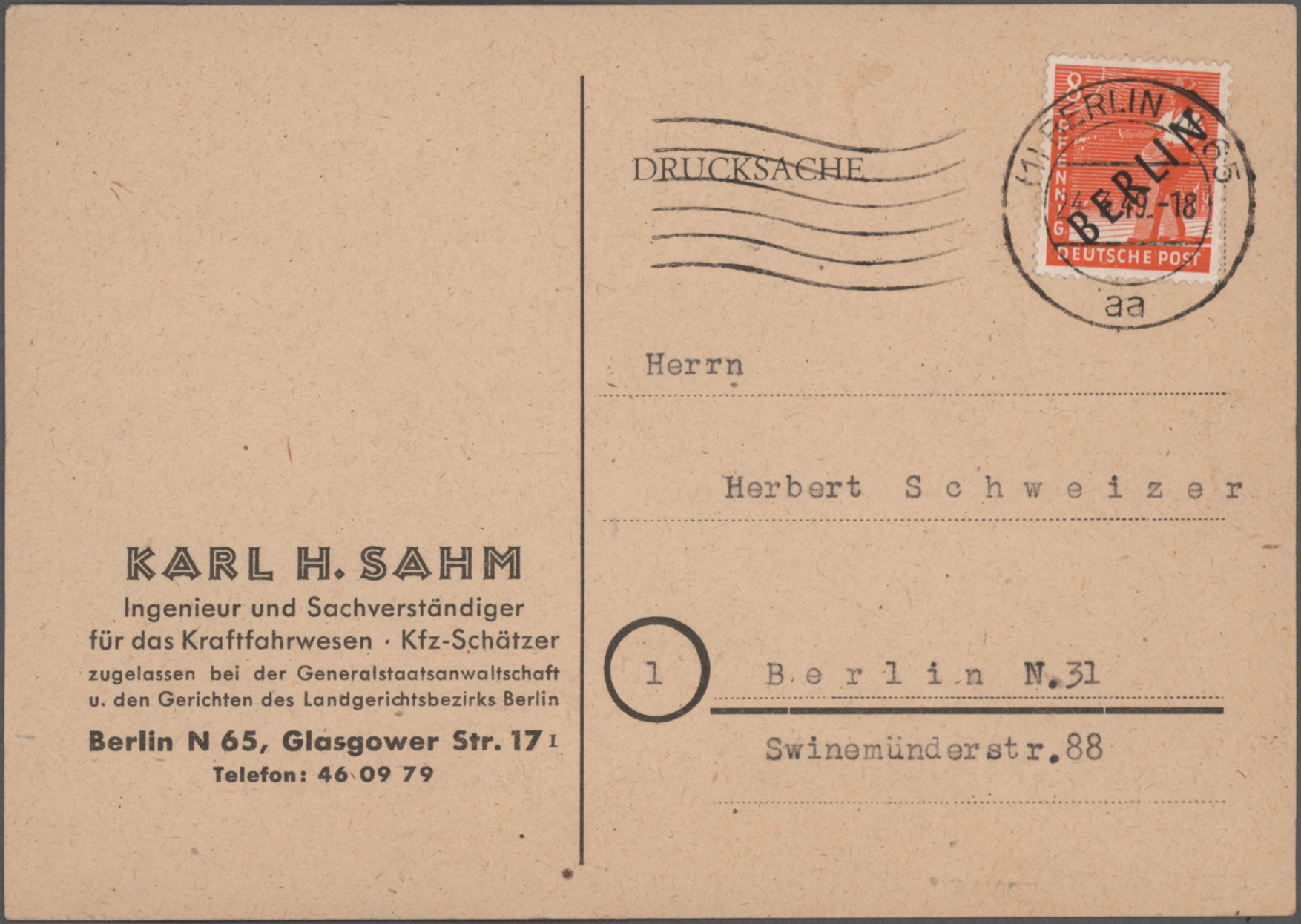 Amerikanischer Druck, SBZ Bezirkshandstempel sowie auch sechs Postkriegsbelege (eingehende Drucksachen aus der SBZ mit nicht anerkanntem Porto). Eine interessante und vielseitige Partie!