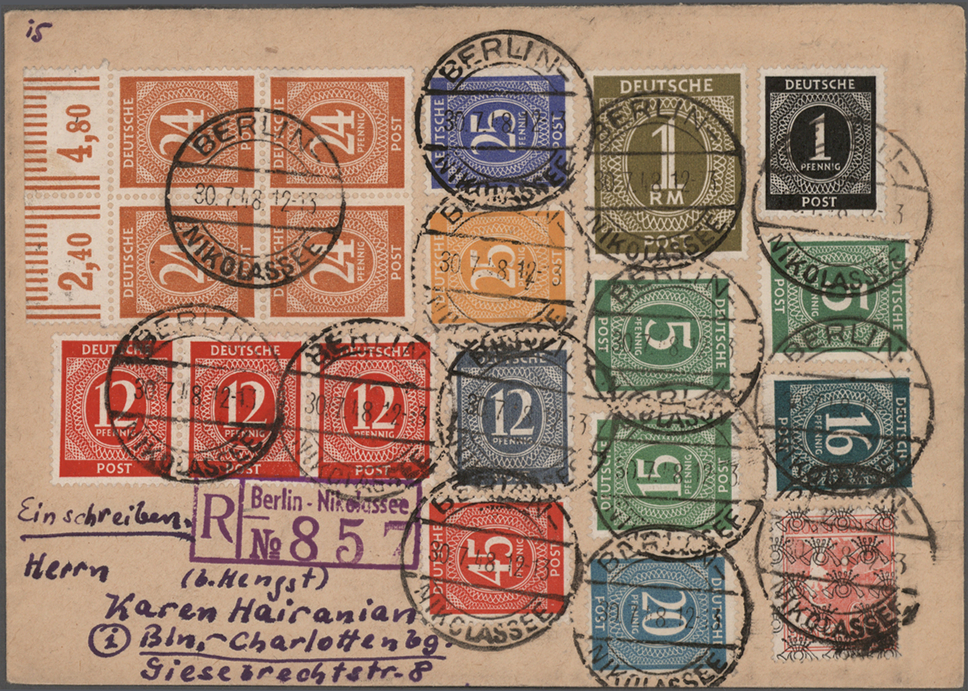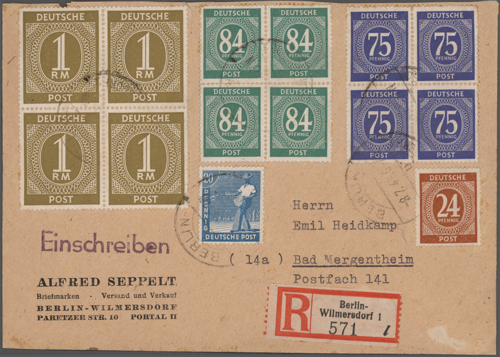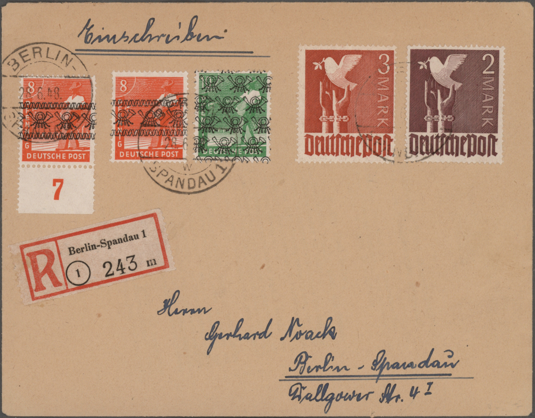 207/211, 228 je gestempelt "BERLIN-CHARLOTTENBURG 2 5. bzw. 6.11.48". Mi. 974,- €+.