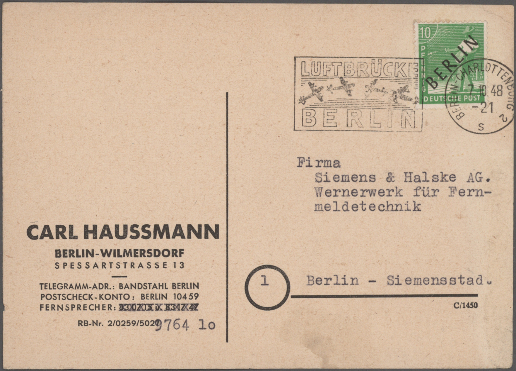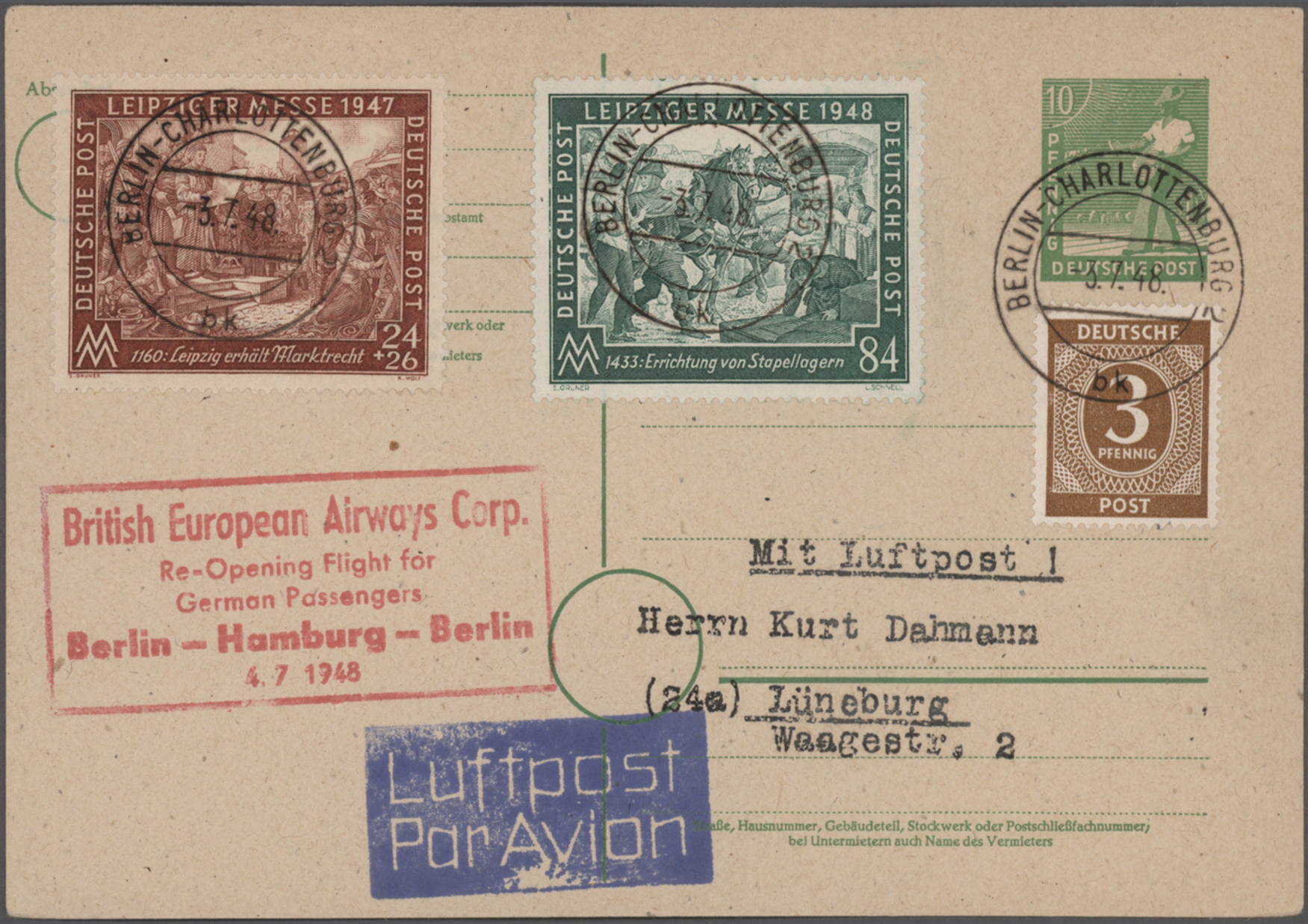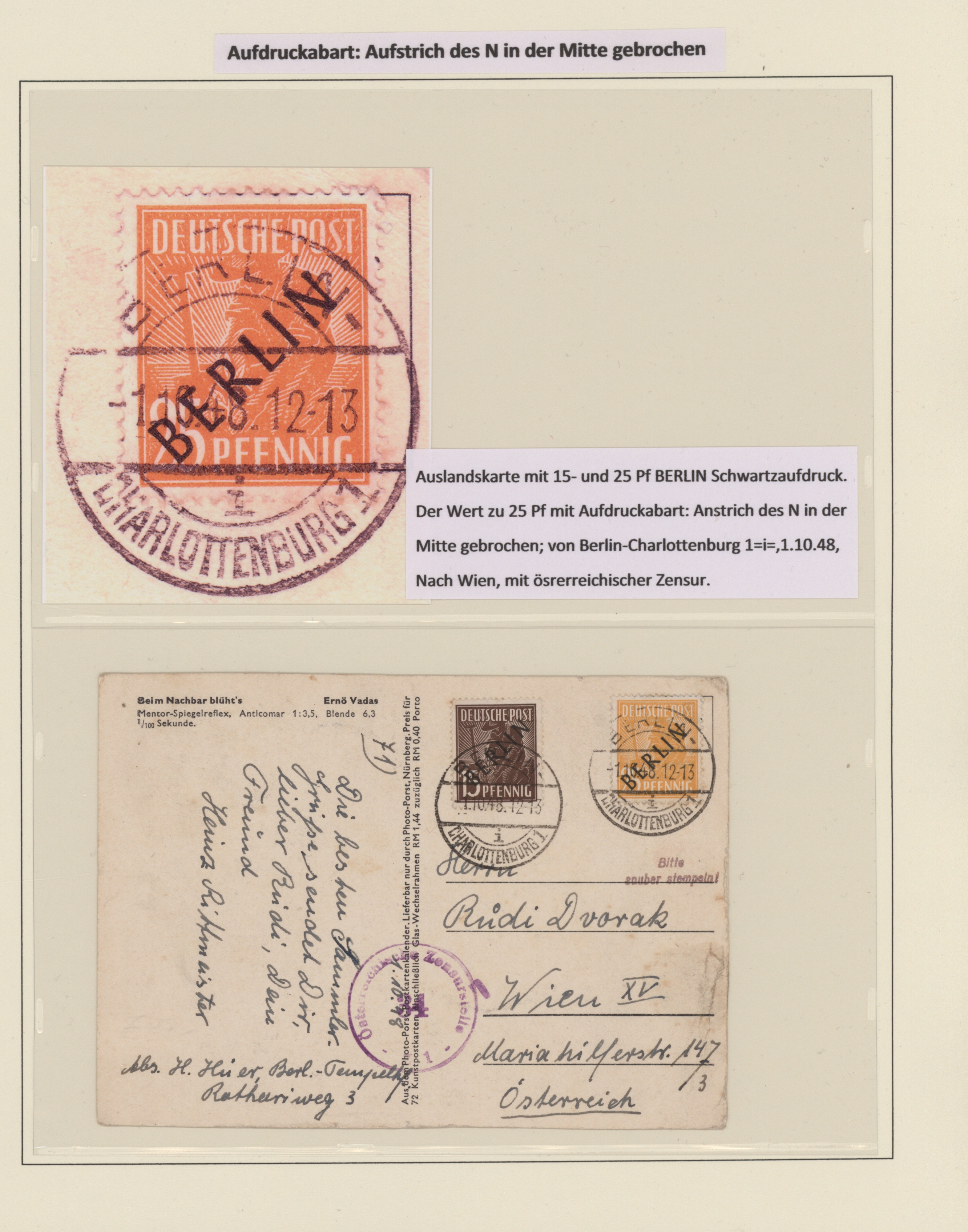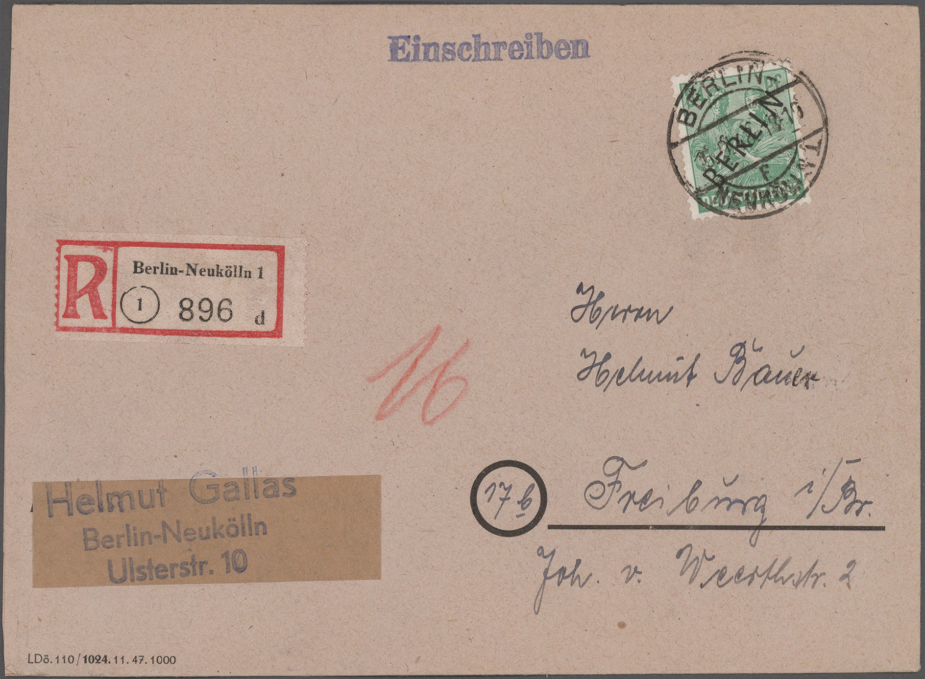 207/211, 228 je gestempelt "BERLIN-CHARLOTTENBURG 2 5. bzw. 6.11.48". Mi. 974,- €+.