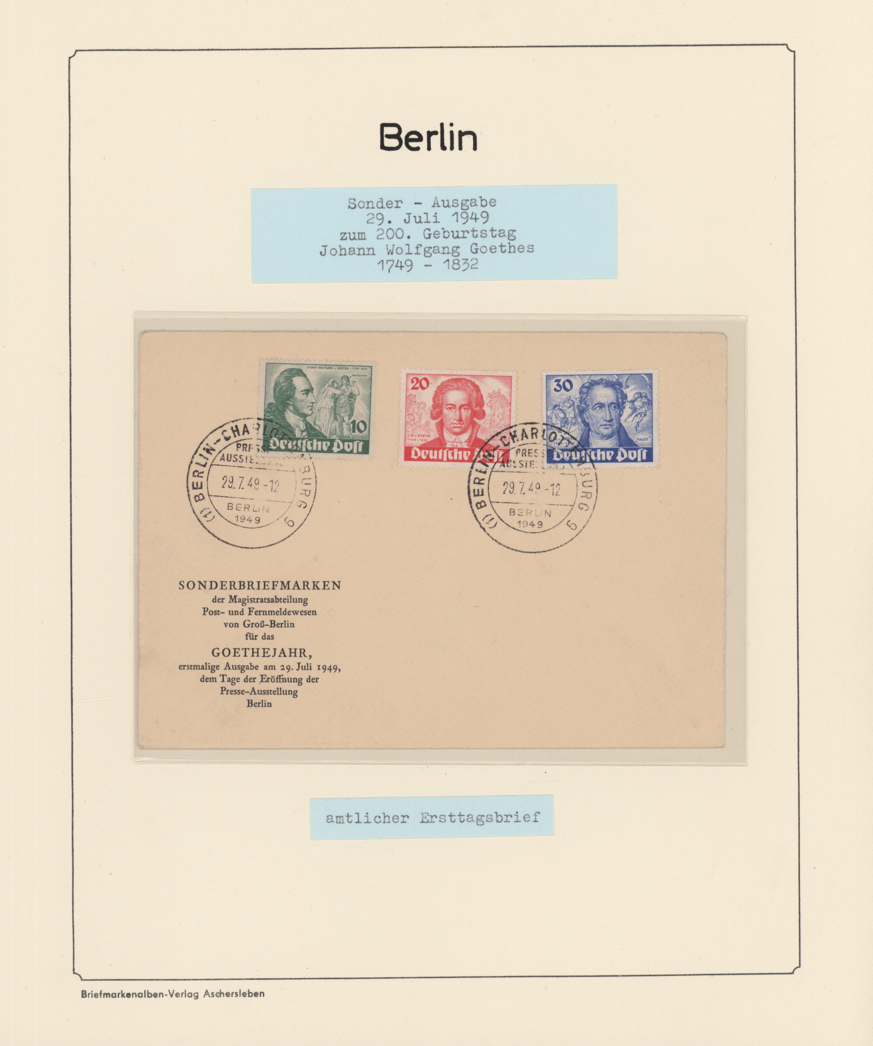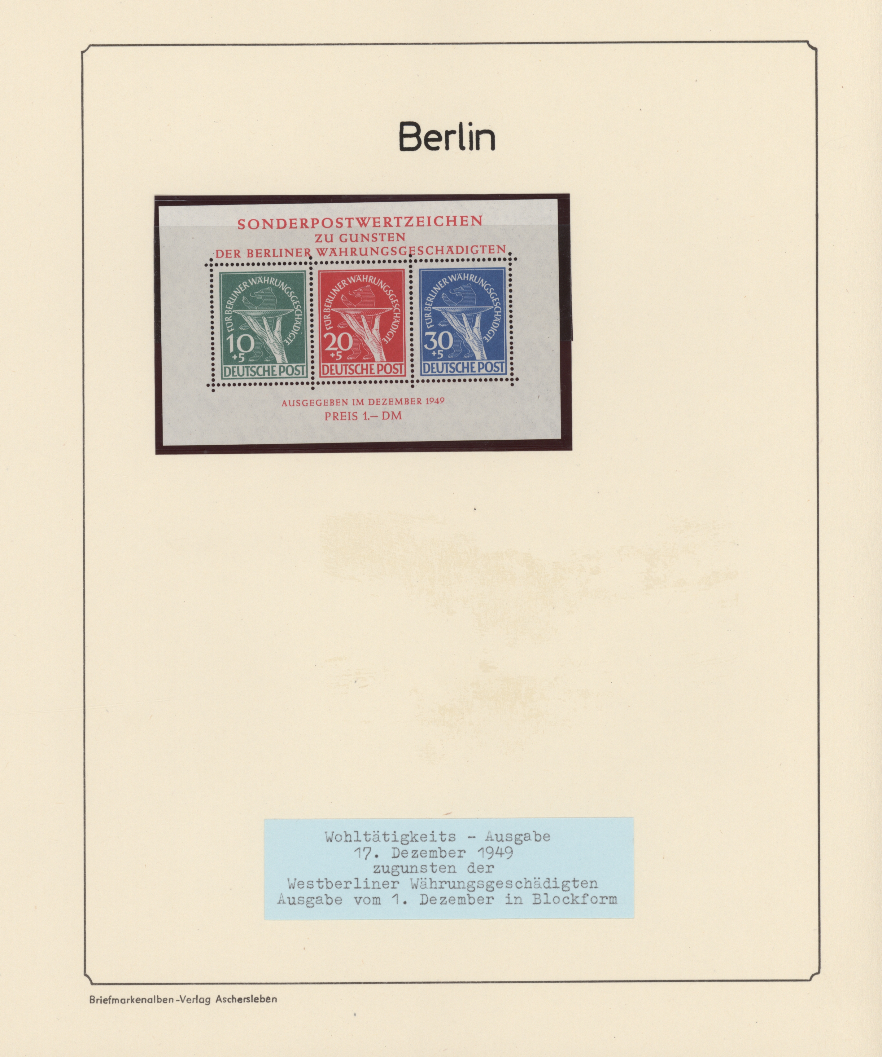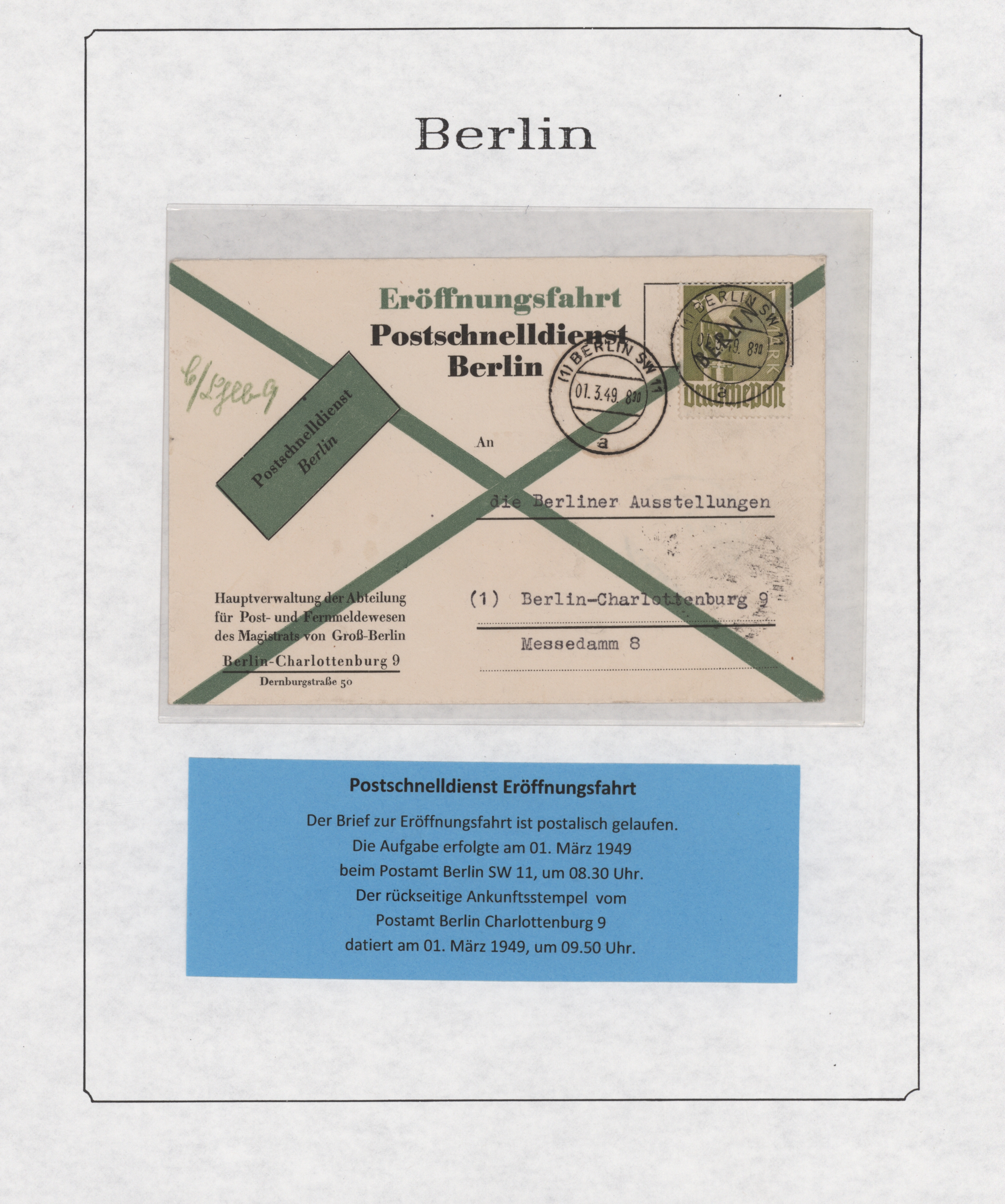 1945/1953, spezialisierte Sammlung auf Albumblättern im Klemmbinder ab SBZ Berliner Bär/Vorläufer, augenscheinlich alle gute Anfangsausgaben (einige Aufdruckmarken