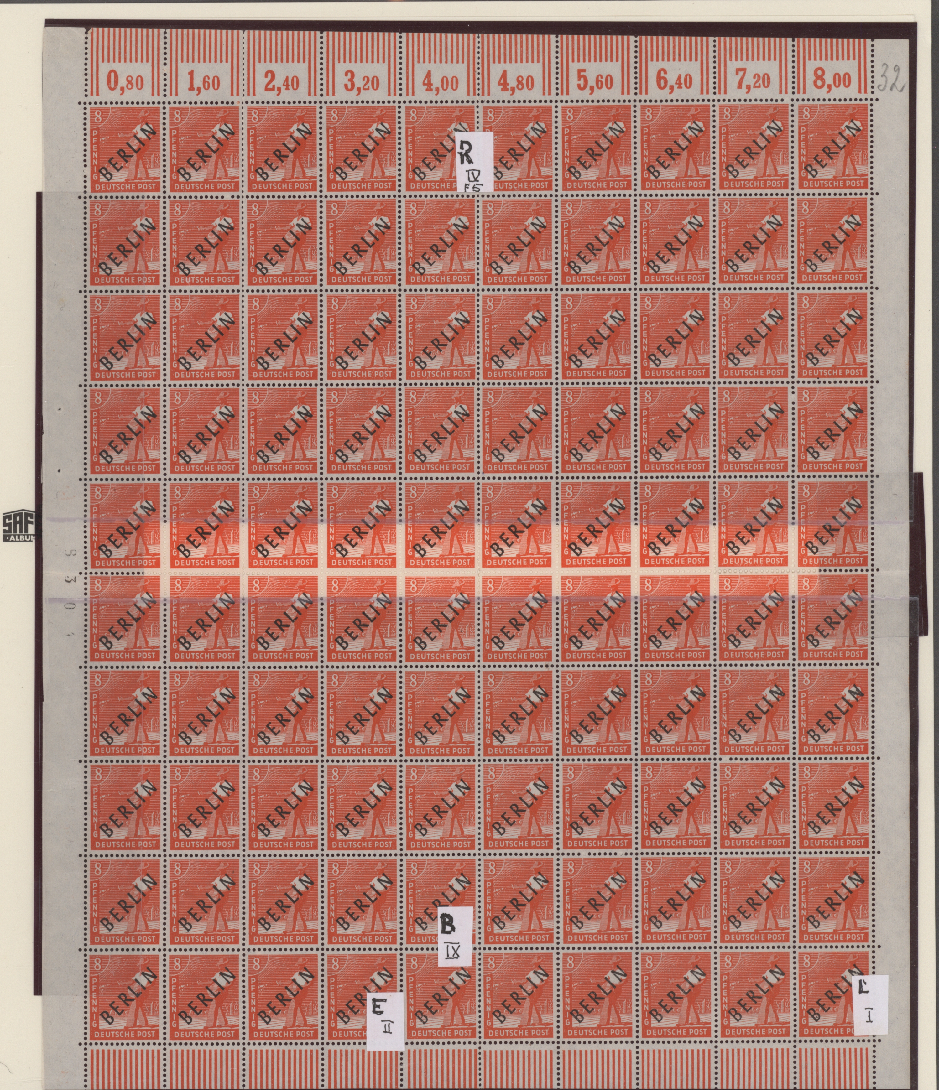 Randstücke, Viererblocks, Markwerte etc., überwiegend aus dem Bedarf. In dieser Reichhaltigkeit sind Vor- und Mitläufer von Berlin nicht häufig zu finden!