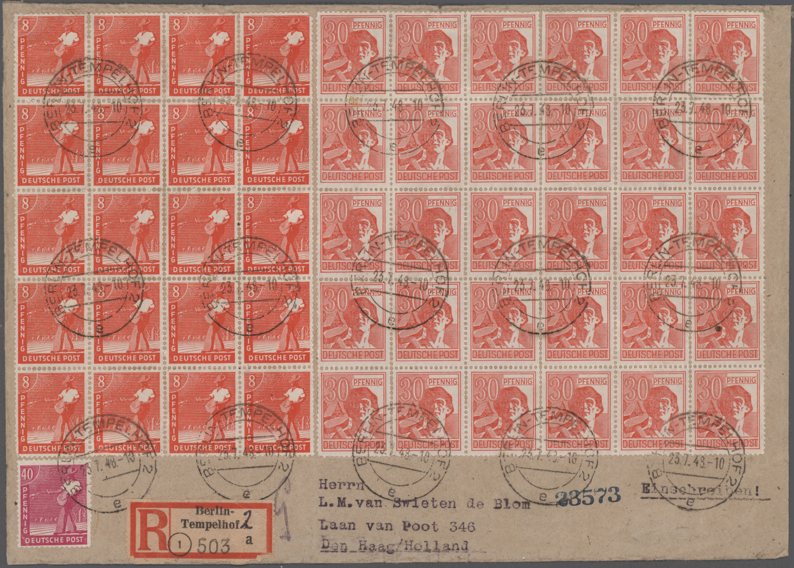 1948, ZEHNFACHFRANKATUREN: gute Sammlung von ca. 125 Belegen im Ringbinder, dabei auch Einfachfrankaturen vom 24. bzw. 25.6.48, Auslandspost, Ganzsachen mit ZuF,