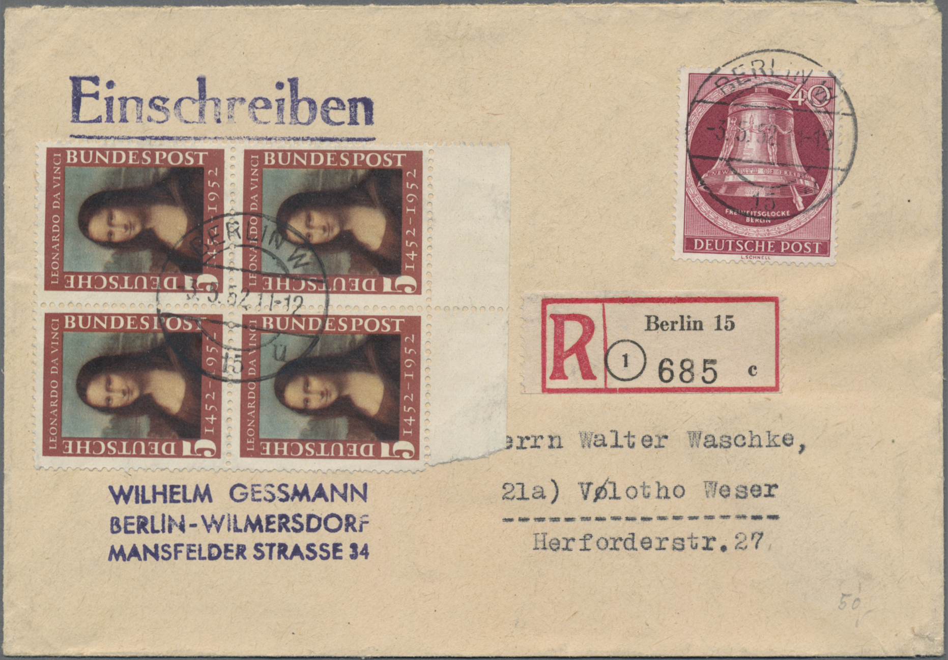 1948/1993, nette Sammlung von 63 Briefen und Karten, dabei Vorläufer, u.a. Bizone 30 Pfg. Netz+Kontrollrat als Zehnfach, sodann Zusammendrucke, gute Frankaturen wie 1 DM